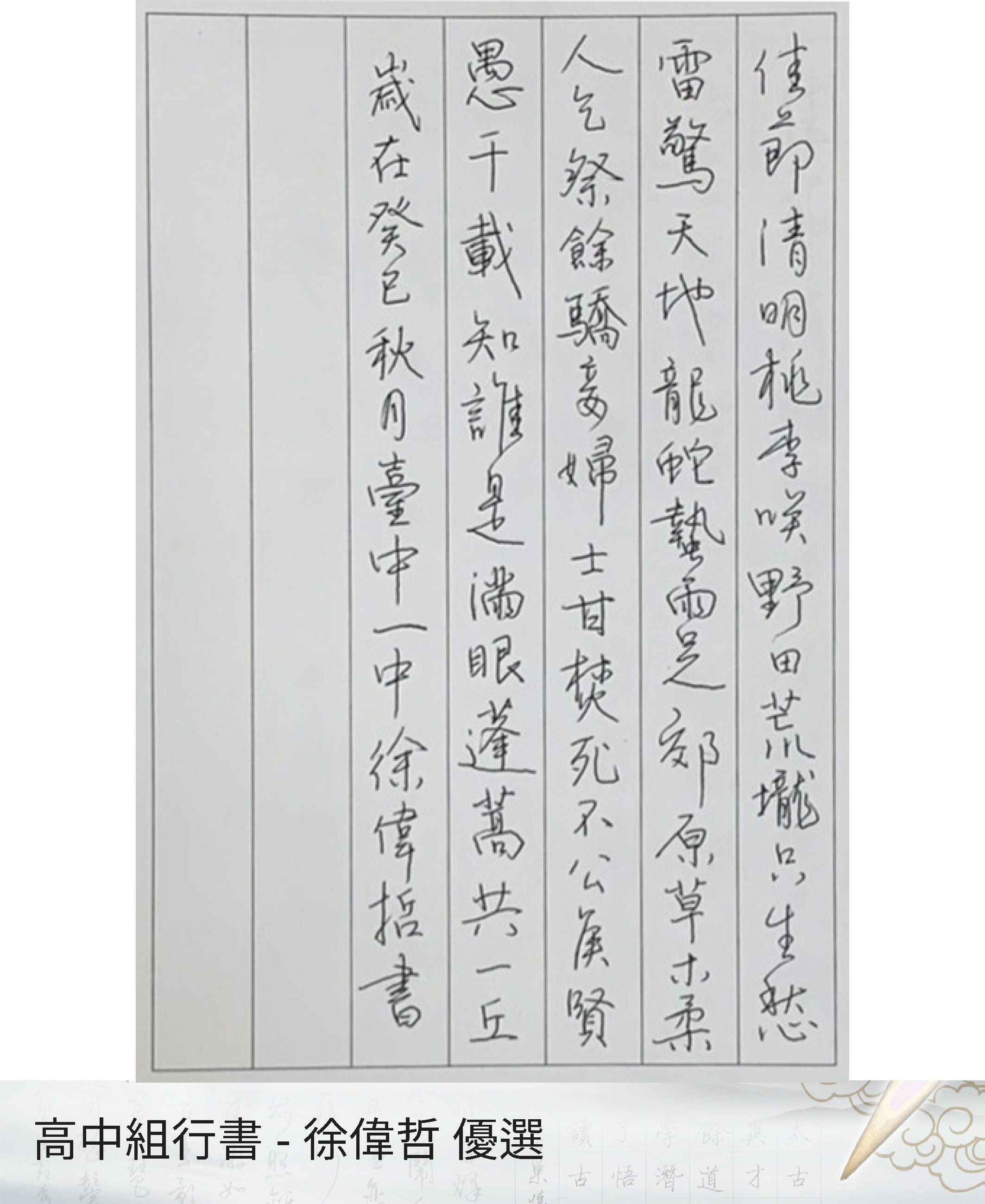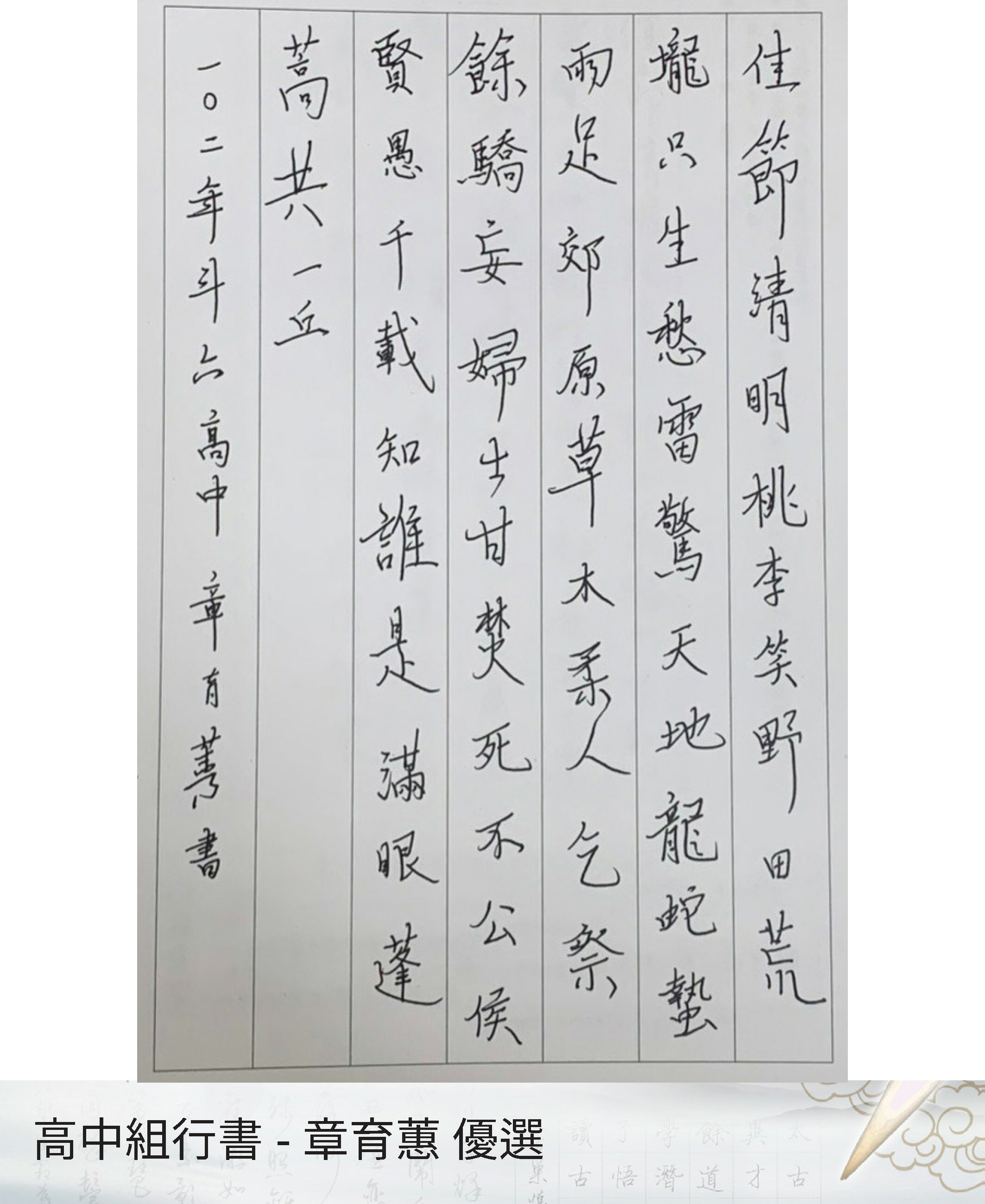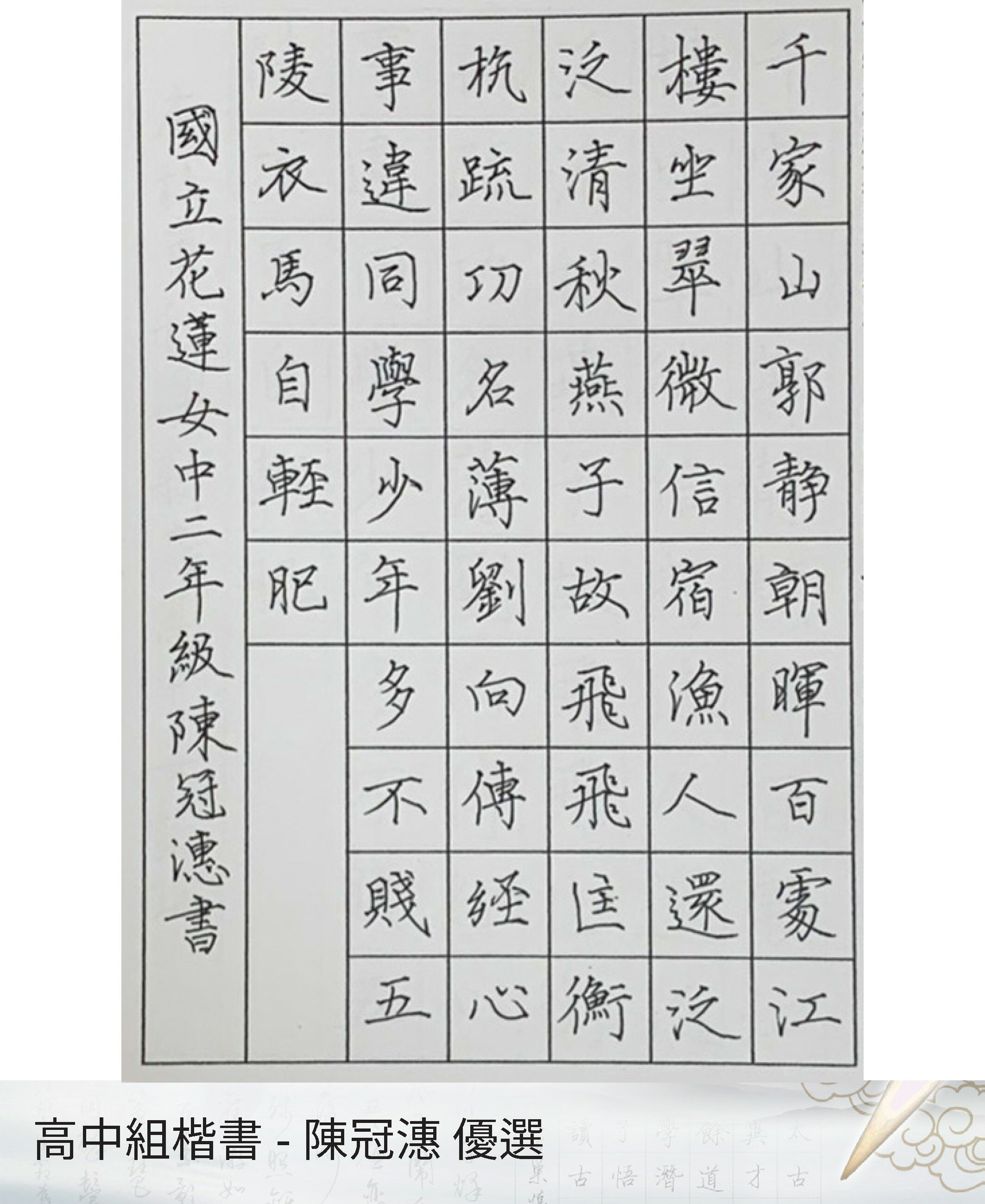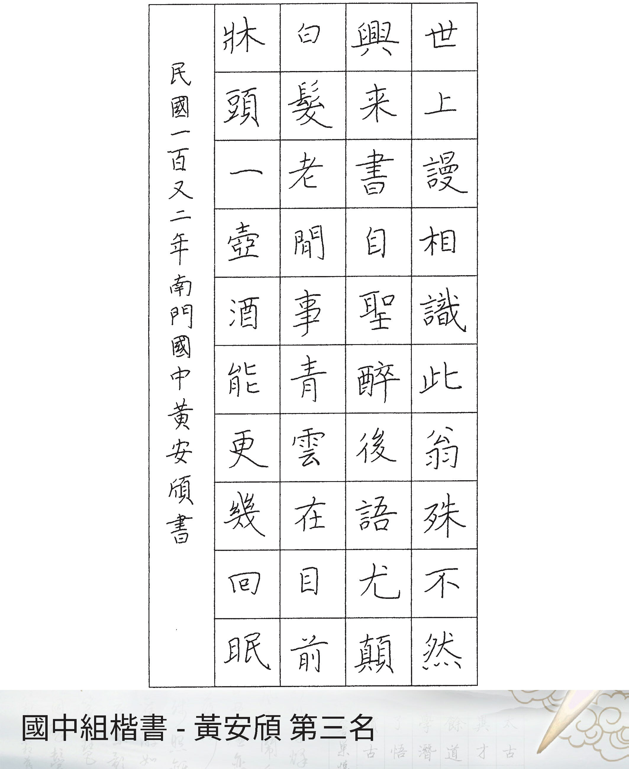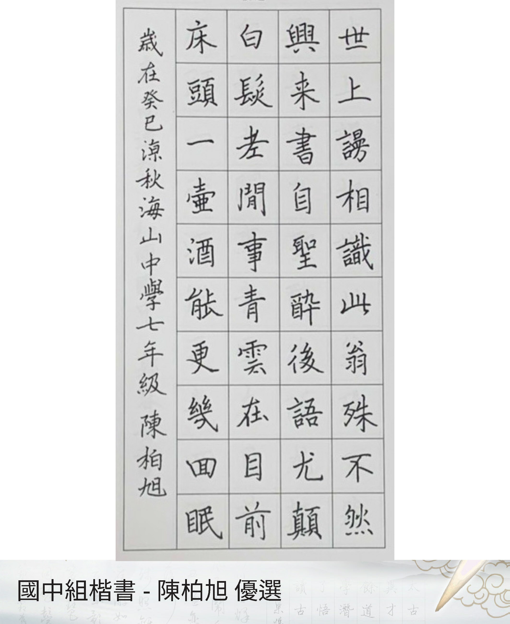 第12屆硬筆書法比賽得獎作品線上展出藝廊