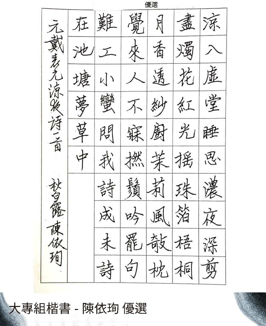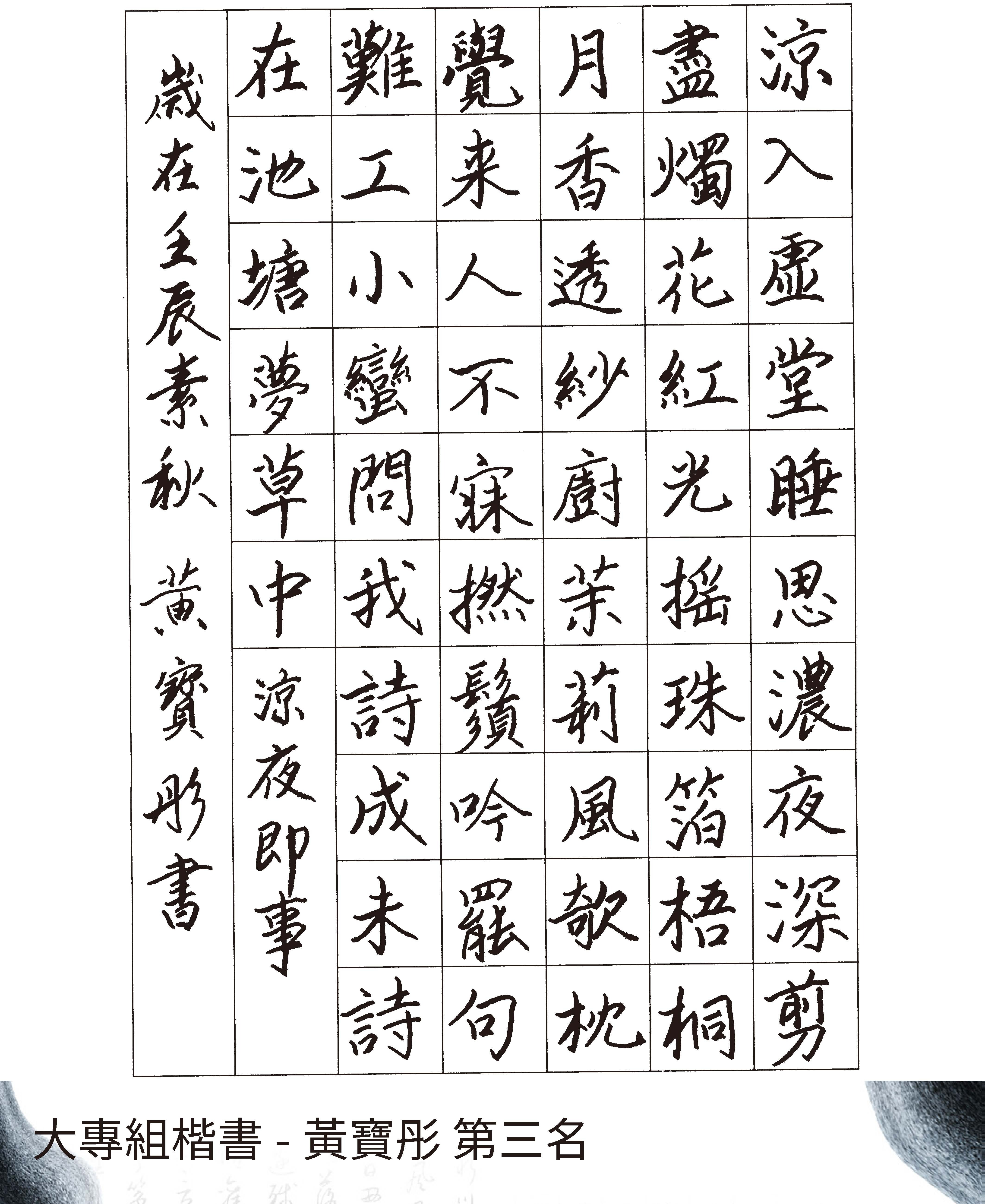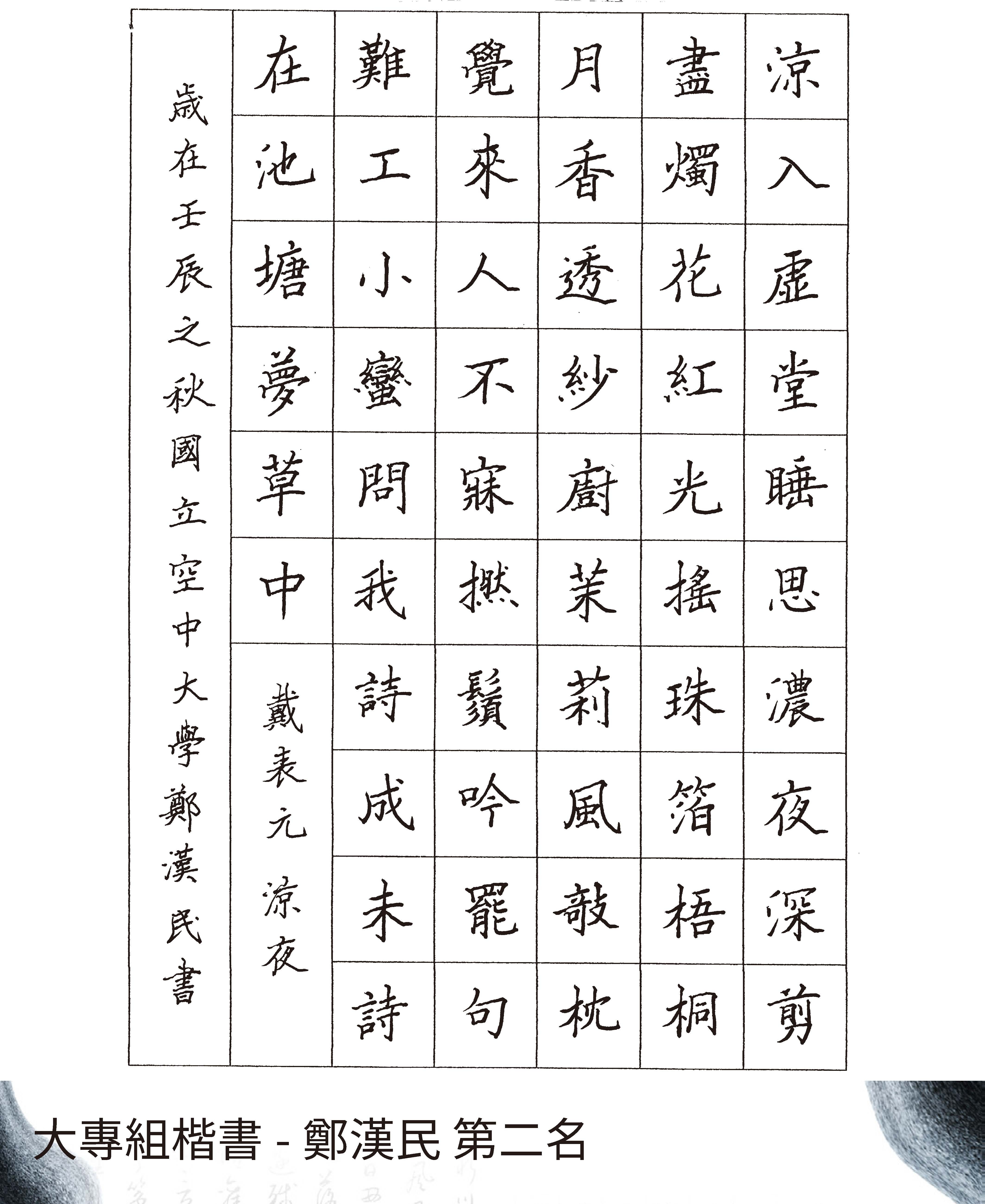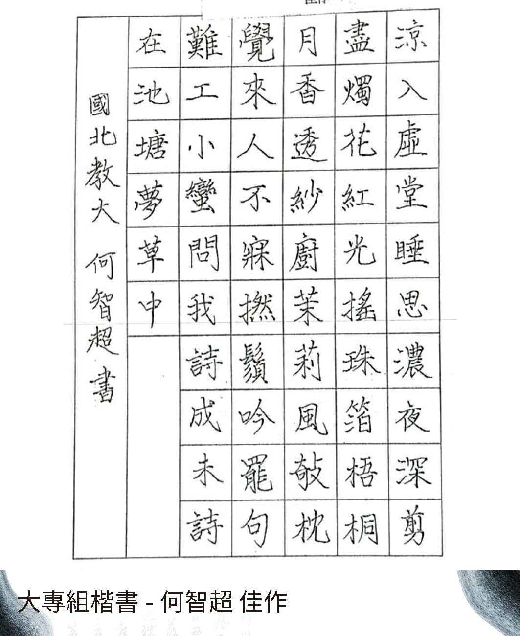 大專組楷書