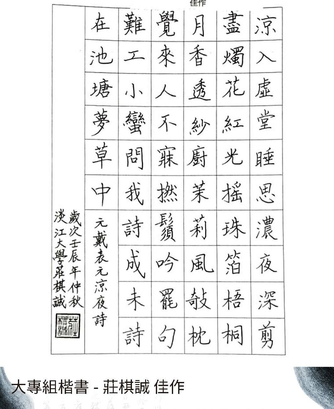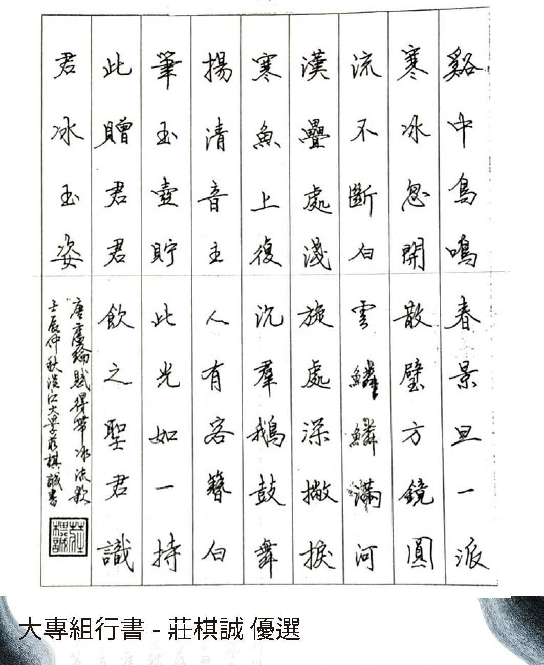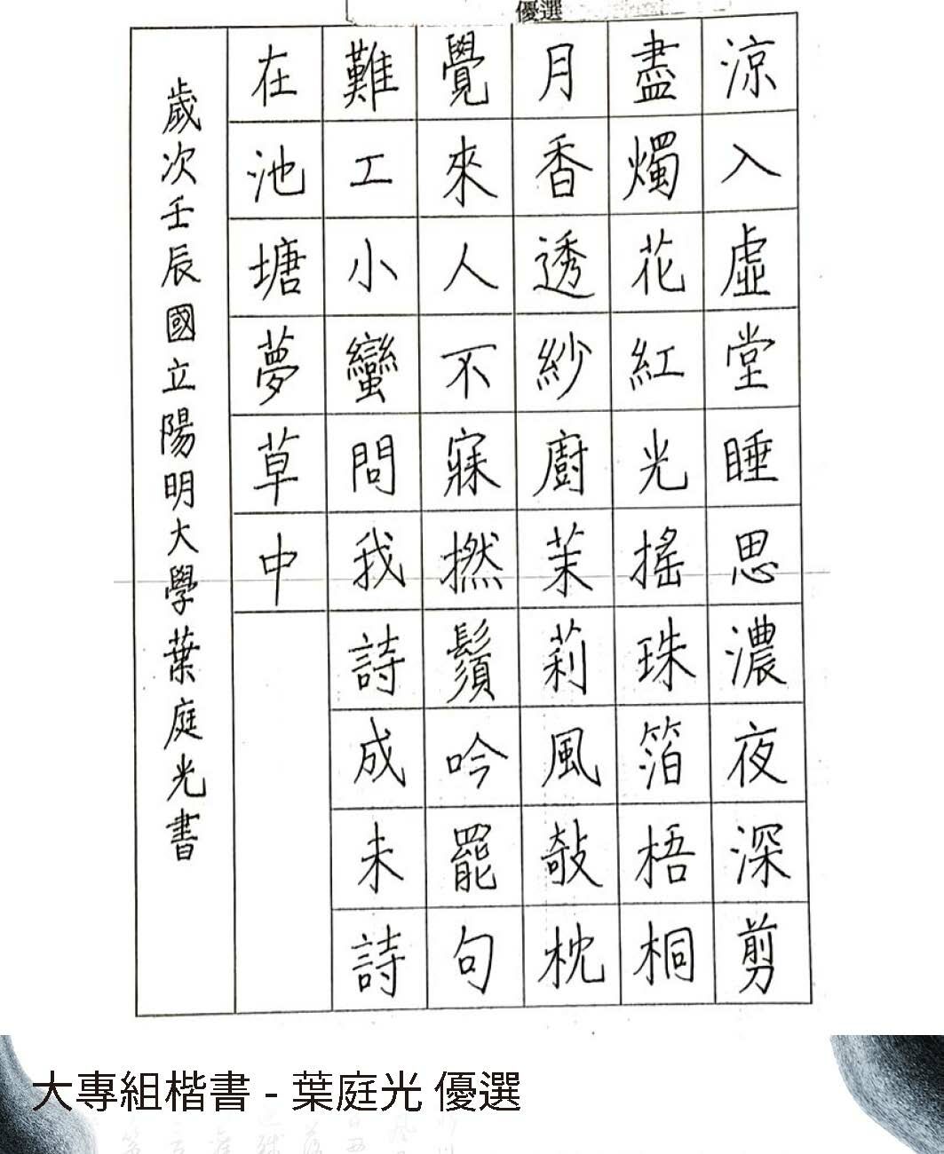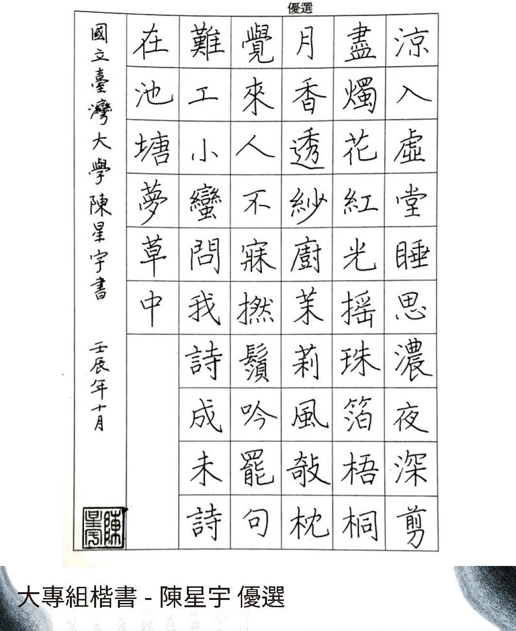 大專組楷書