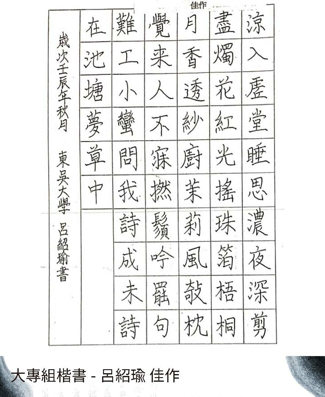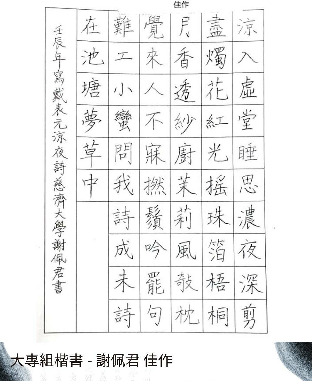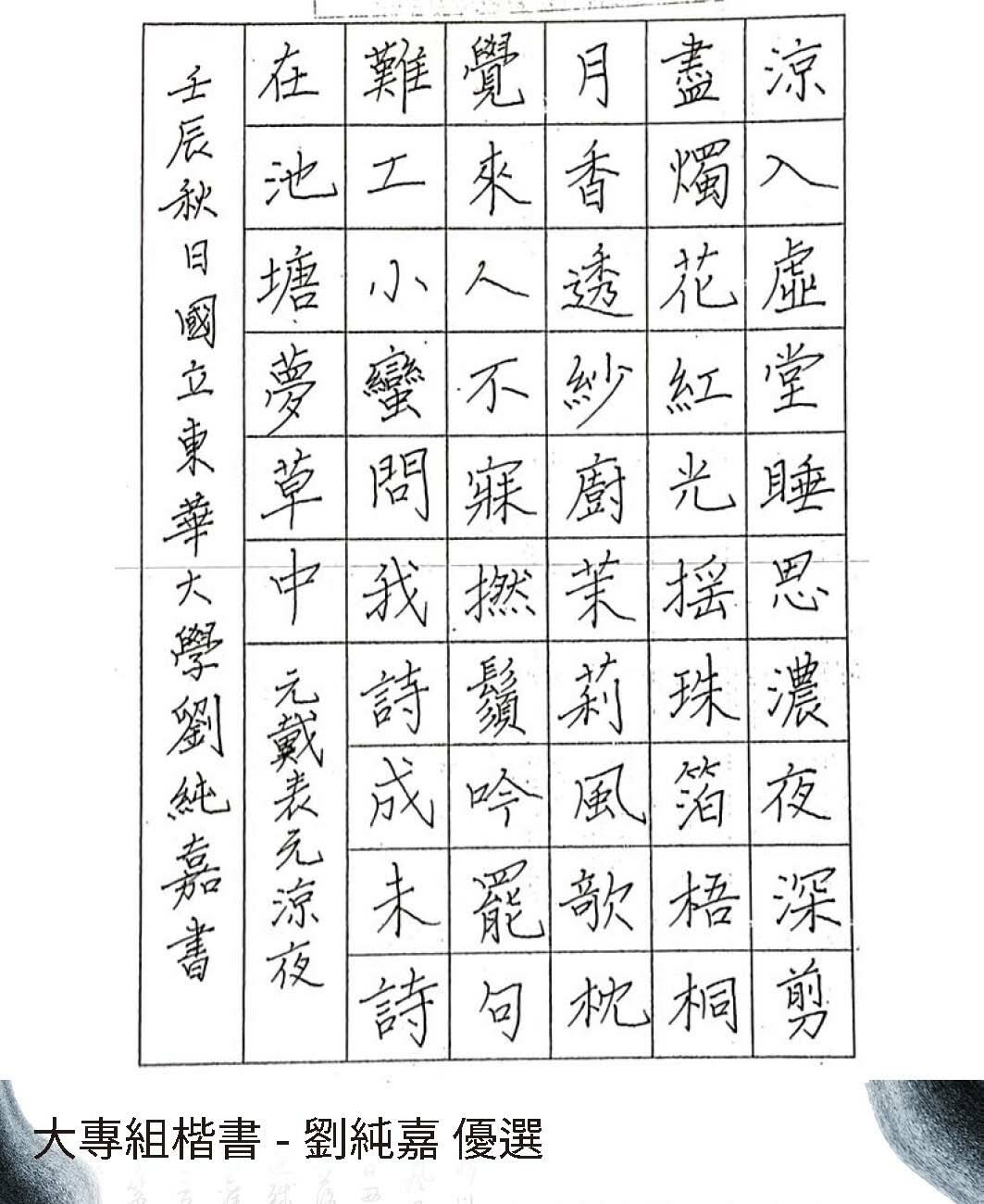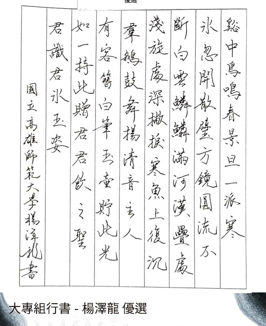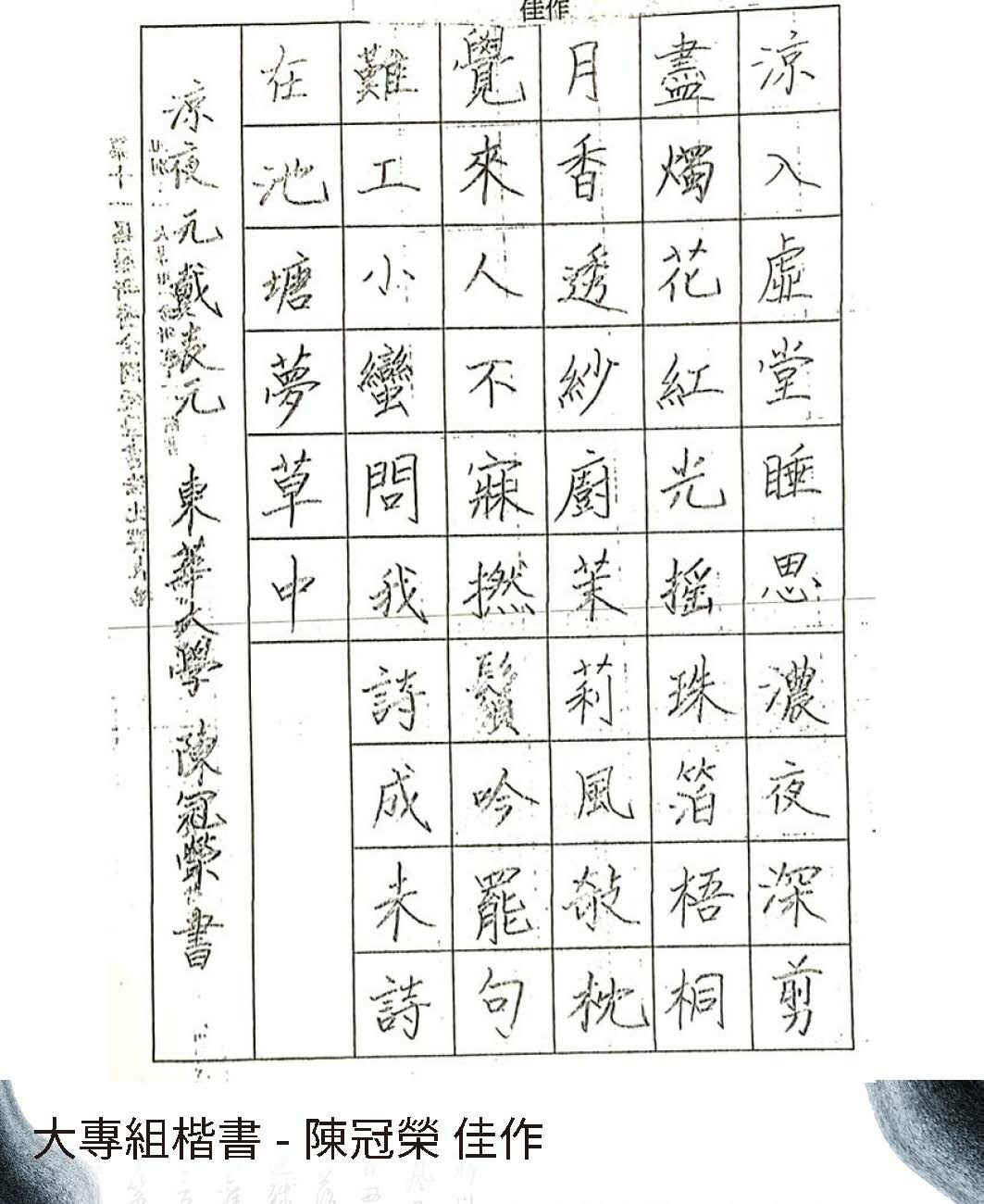 大專組楷書