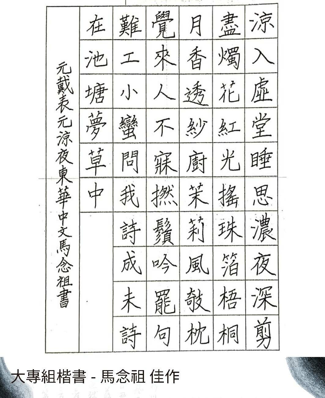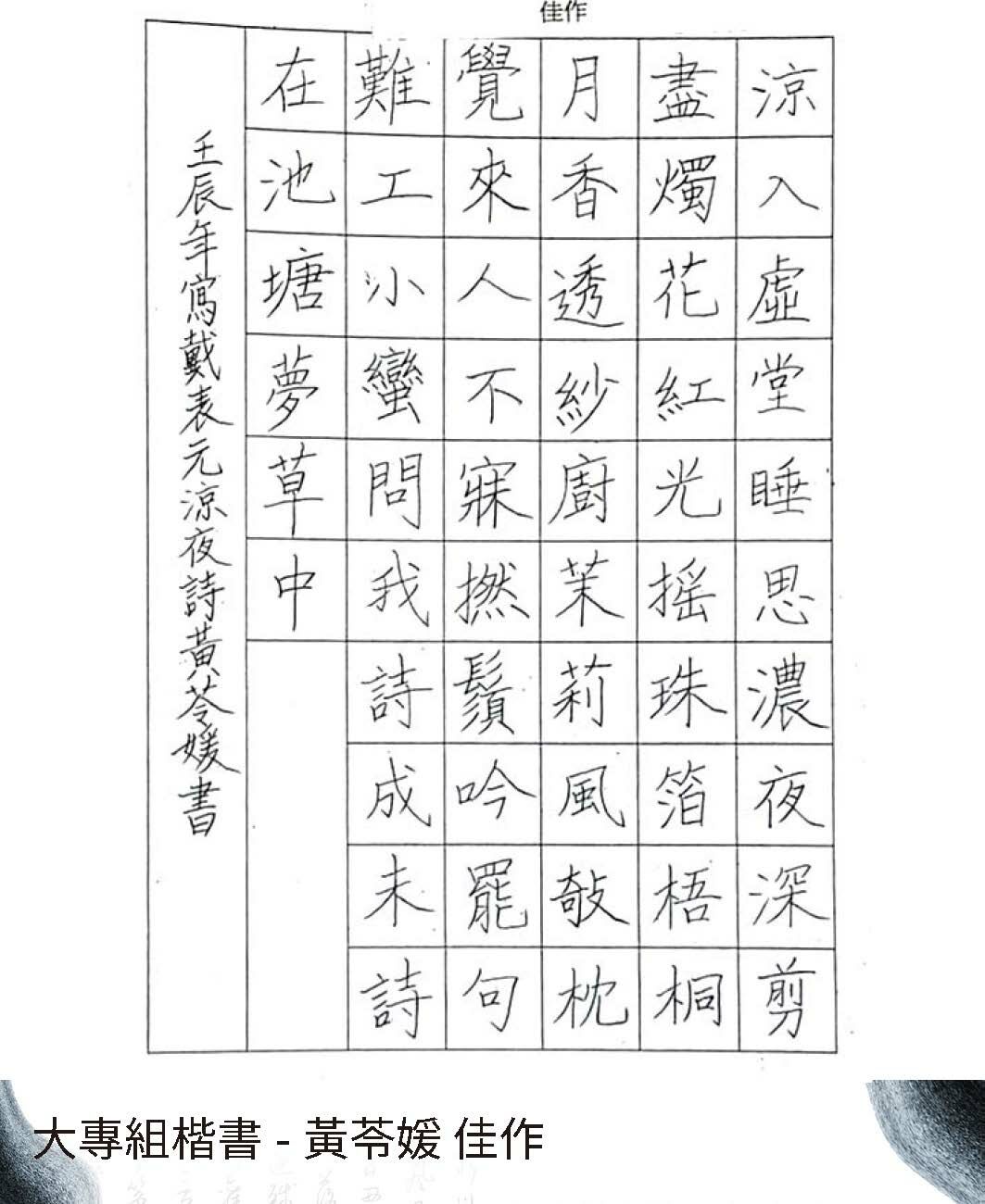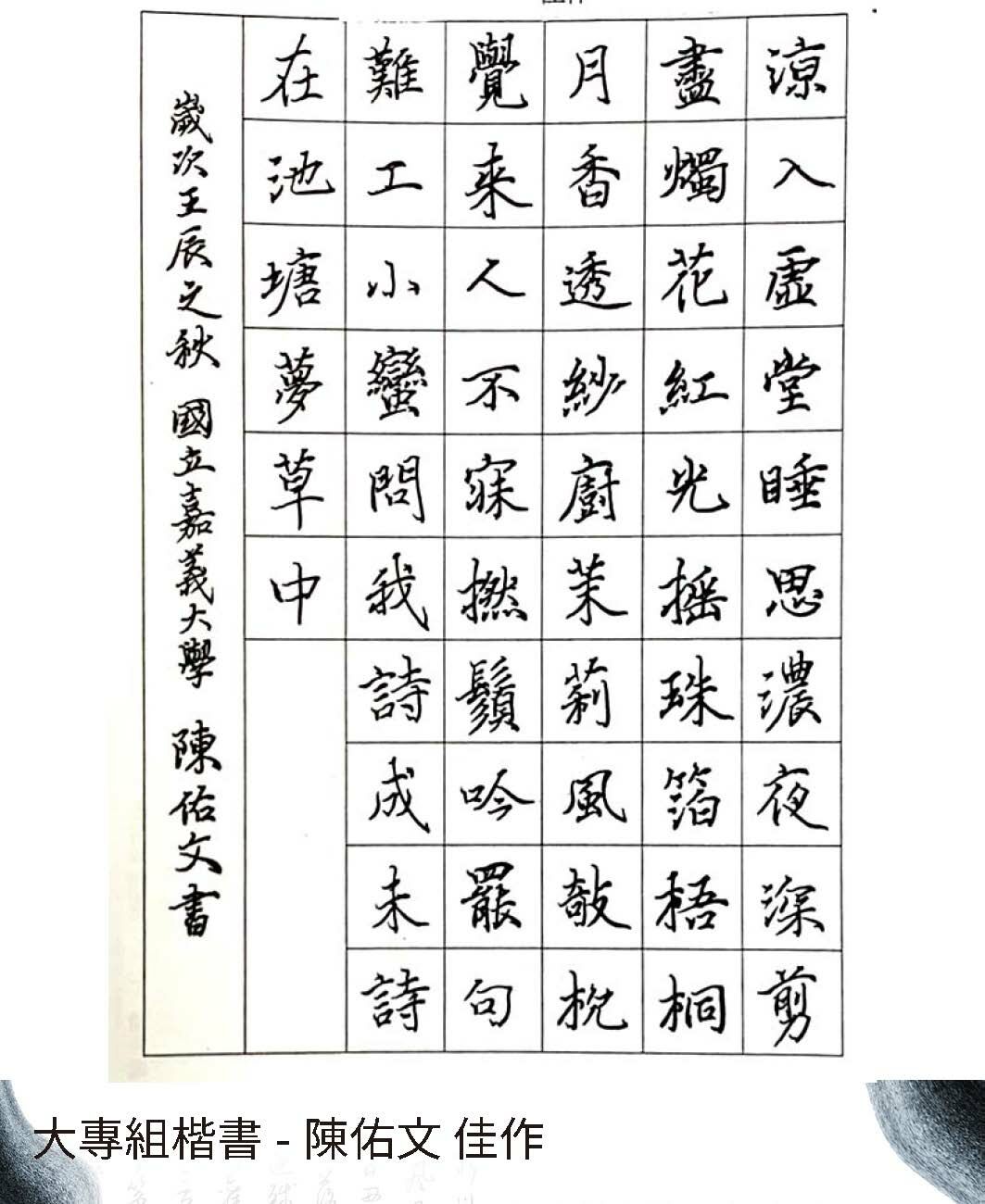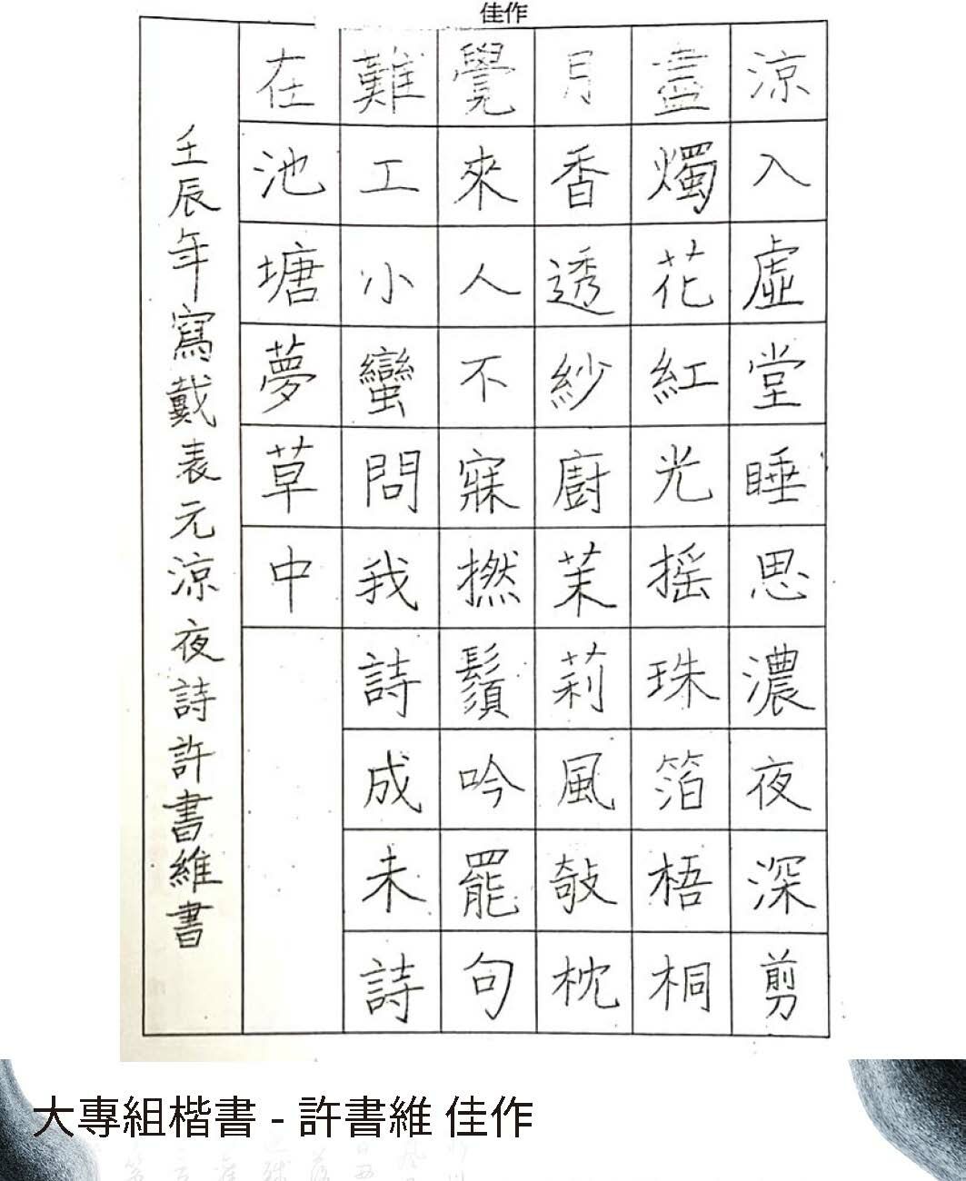 大專組楷書