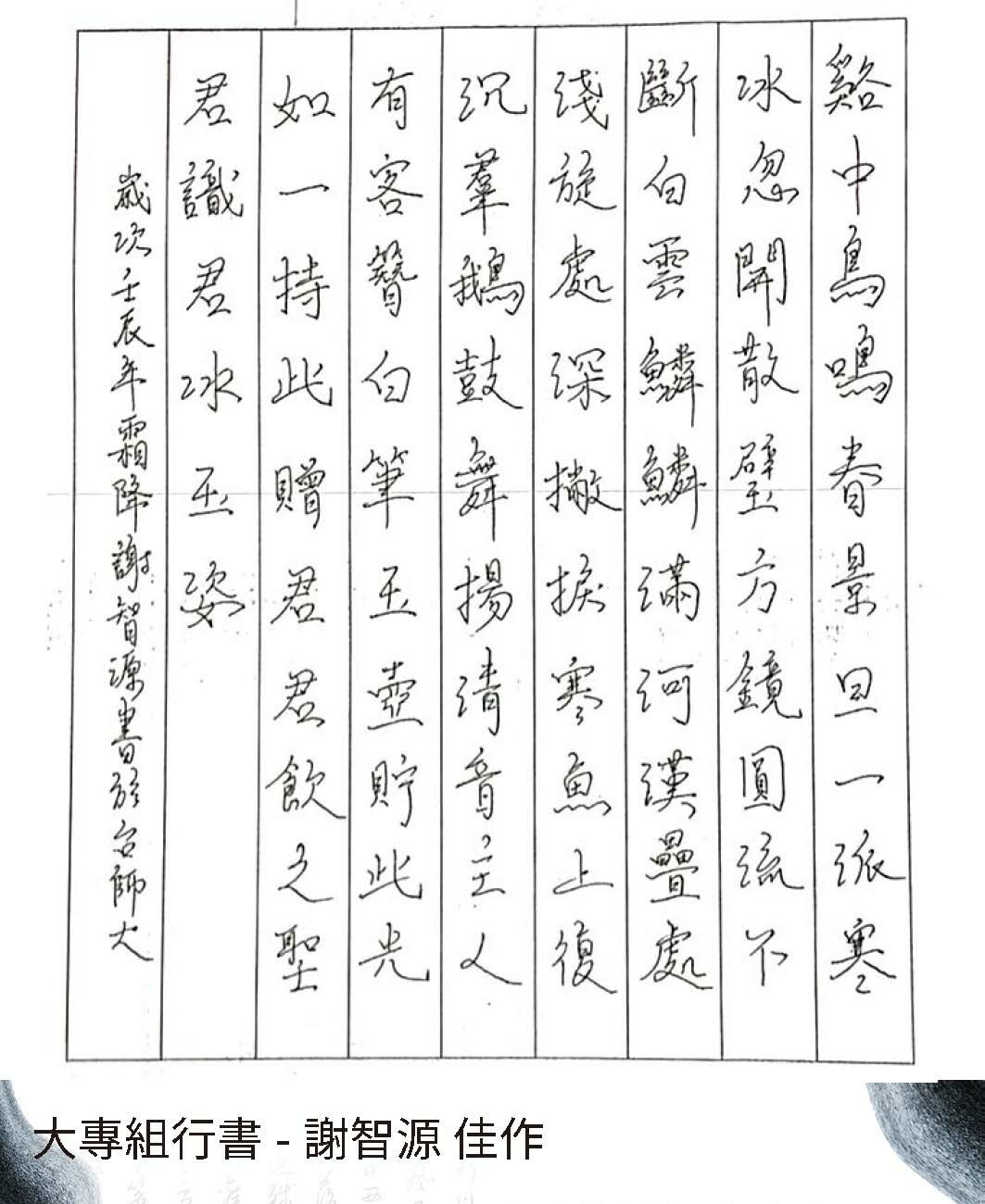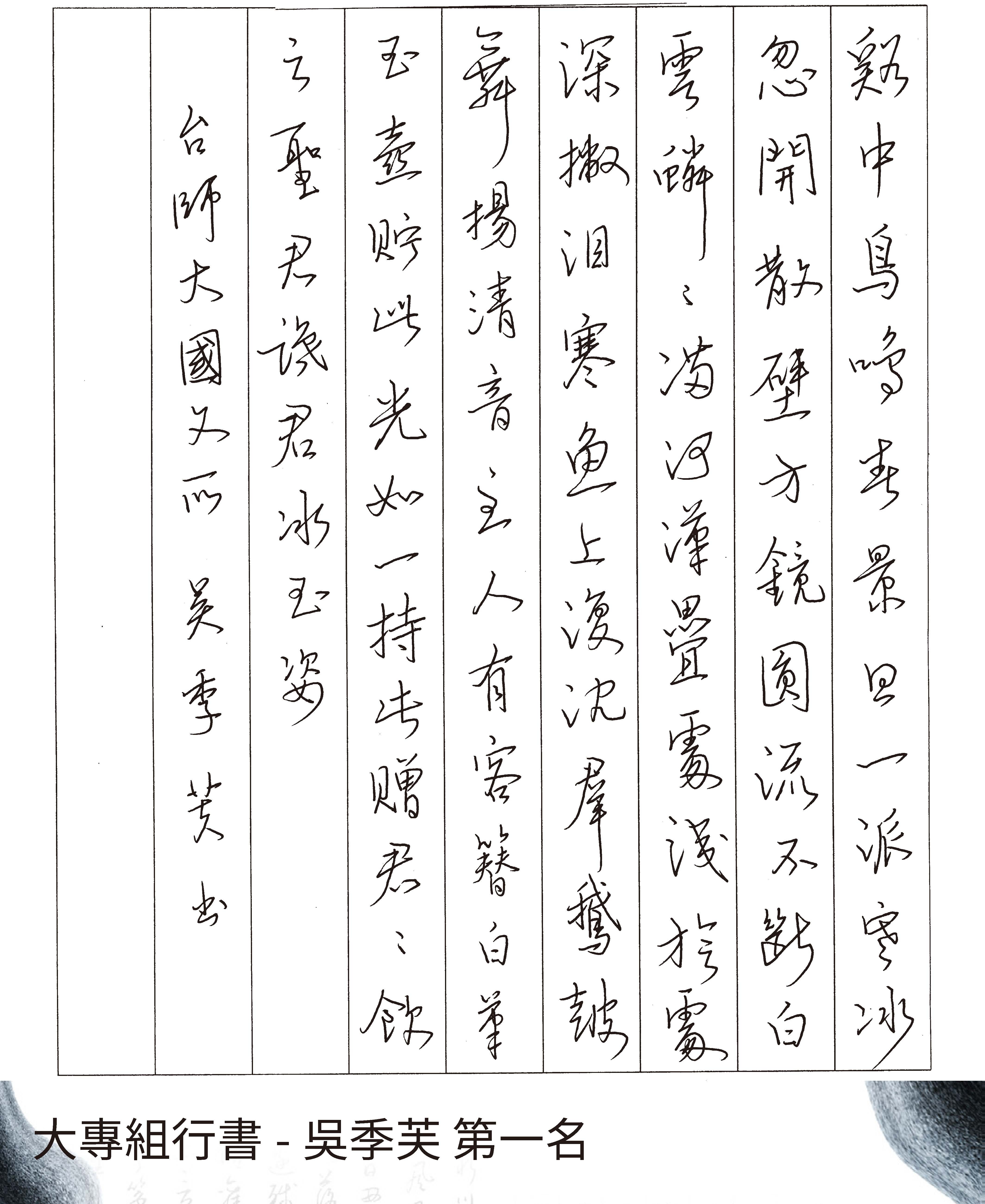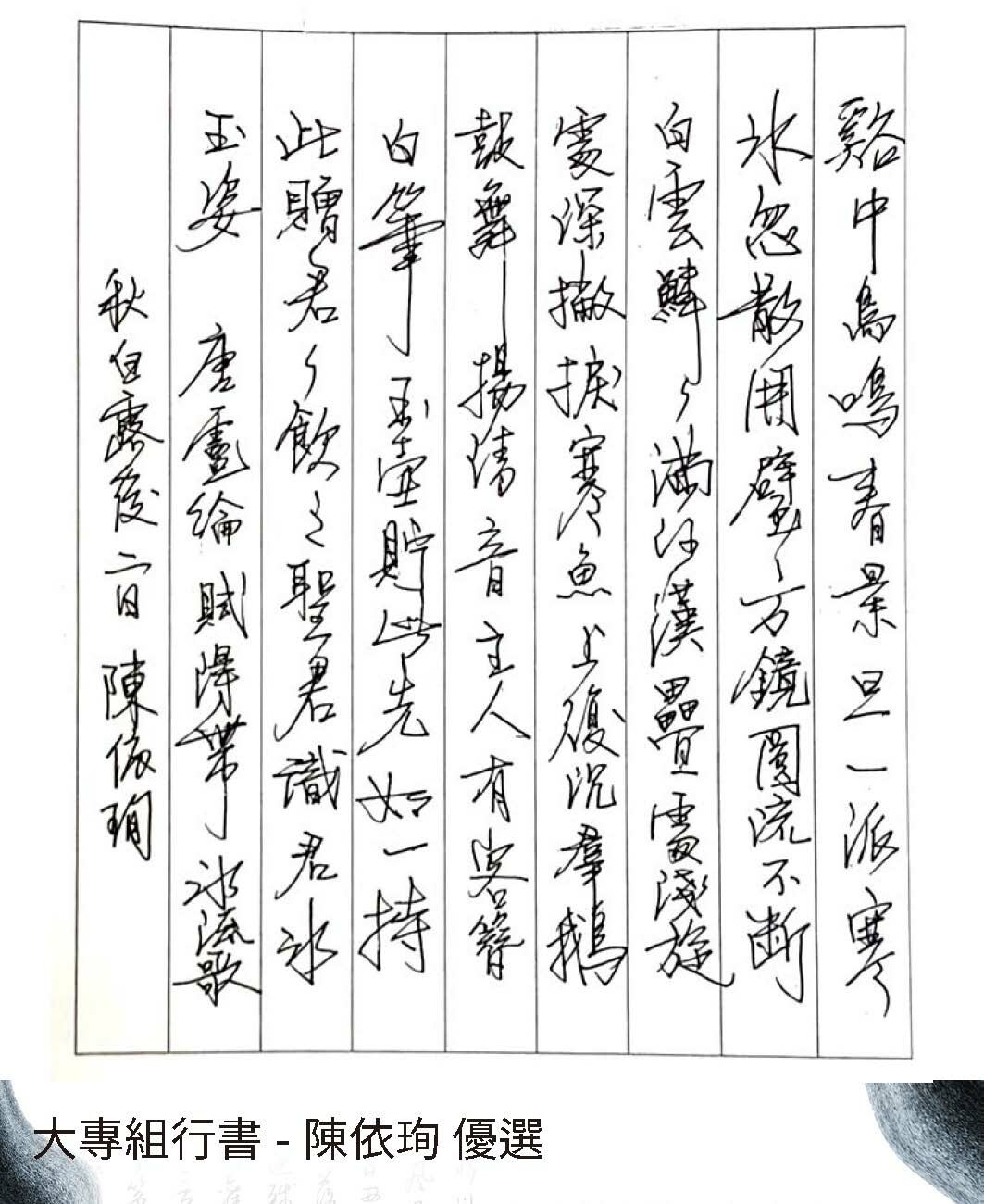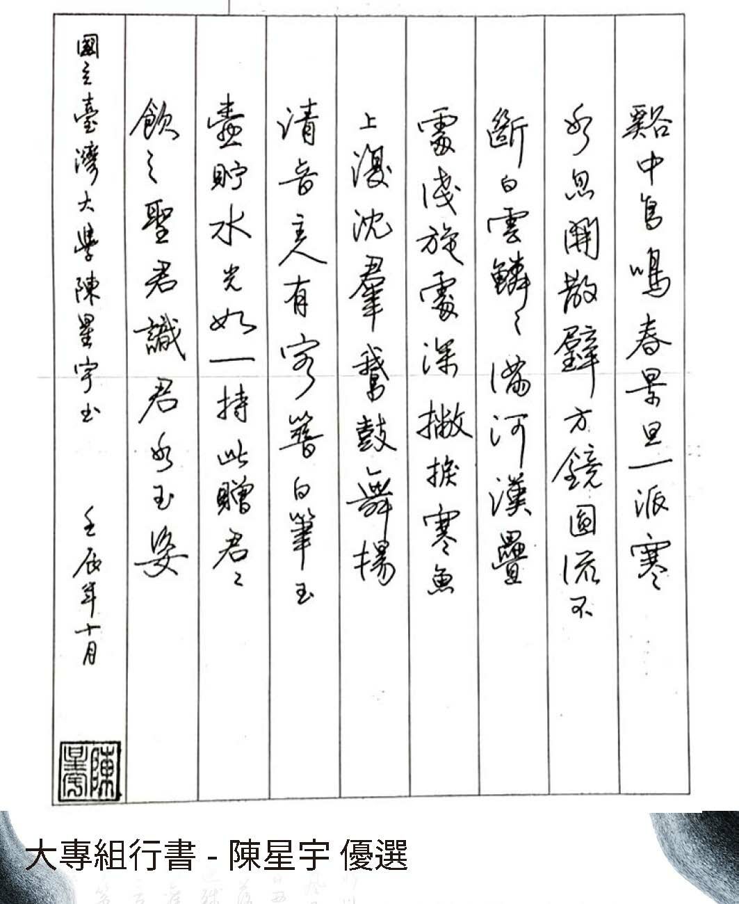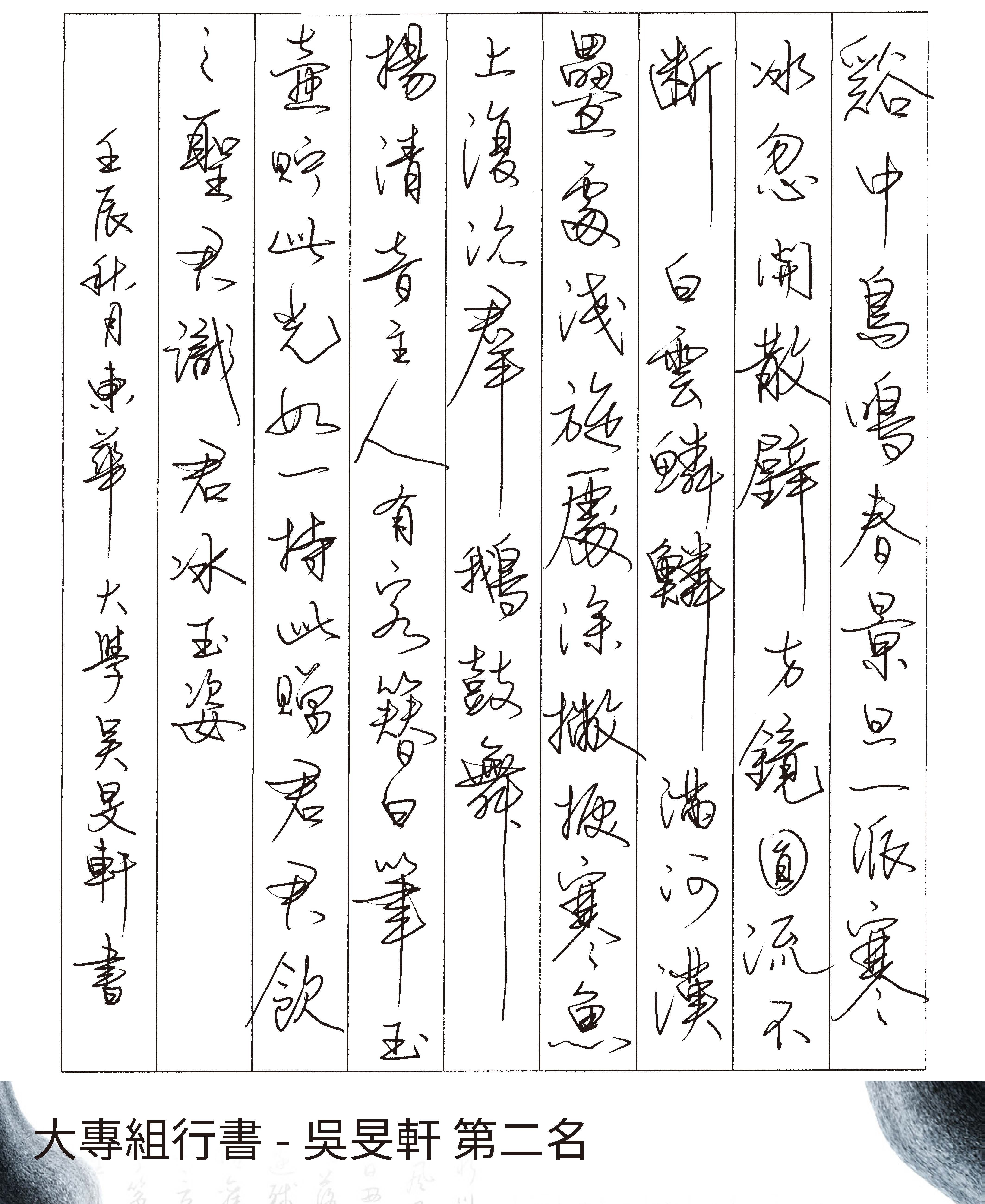 大專組行書
