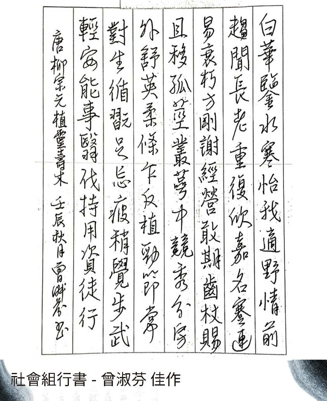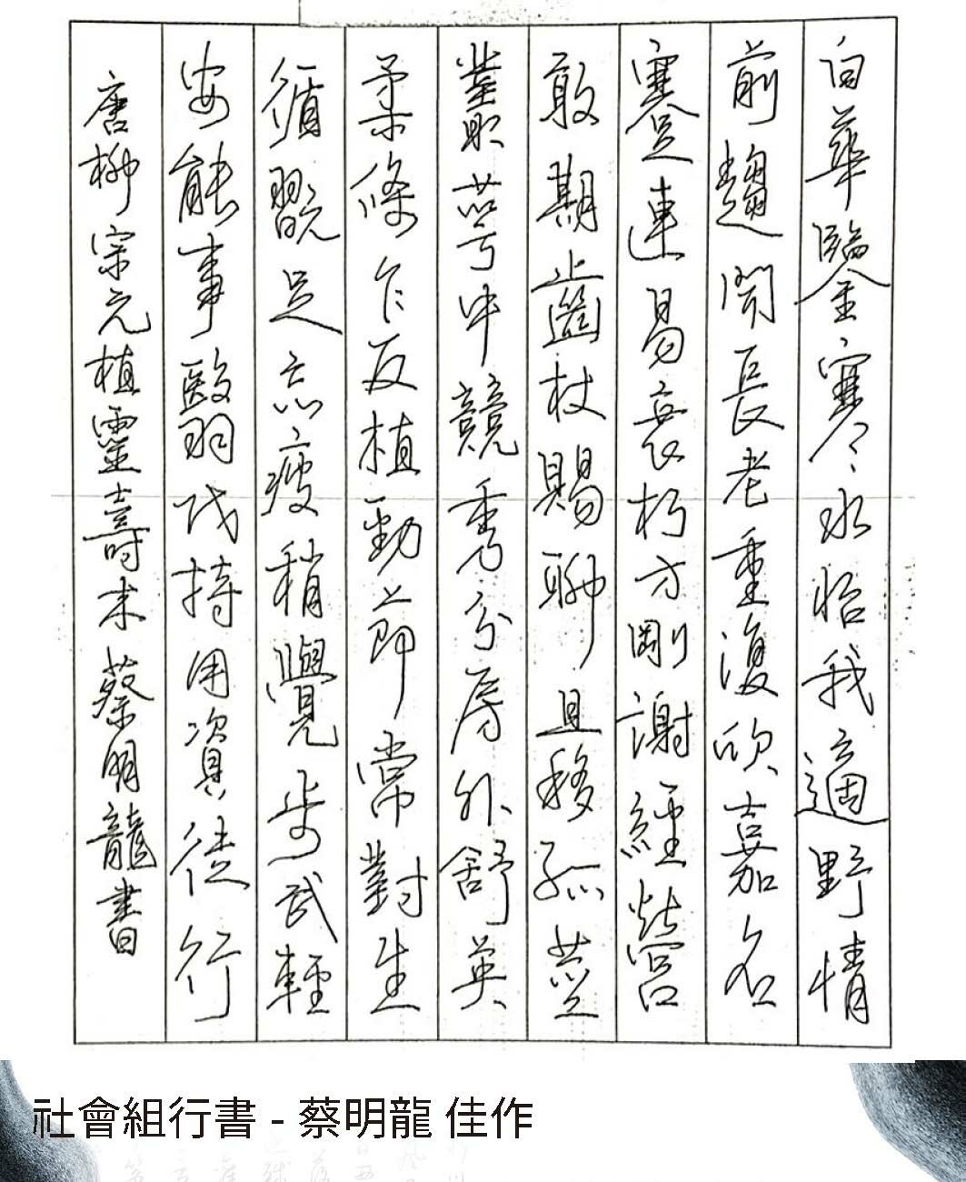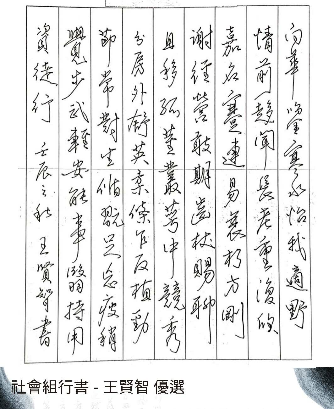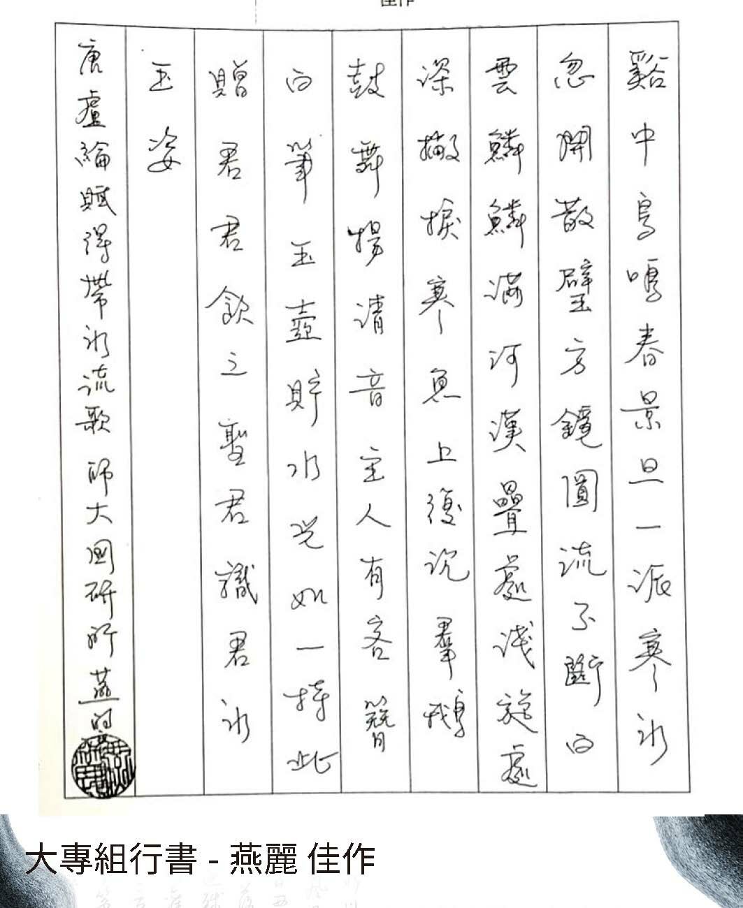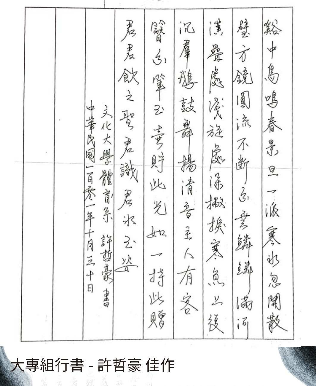 大專組行書