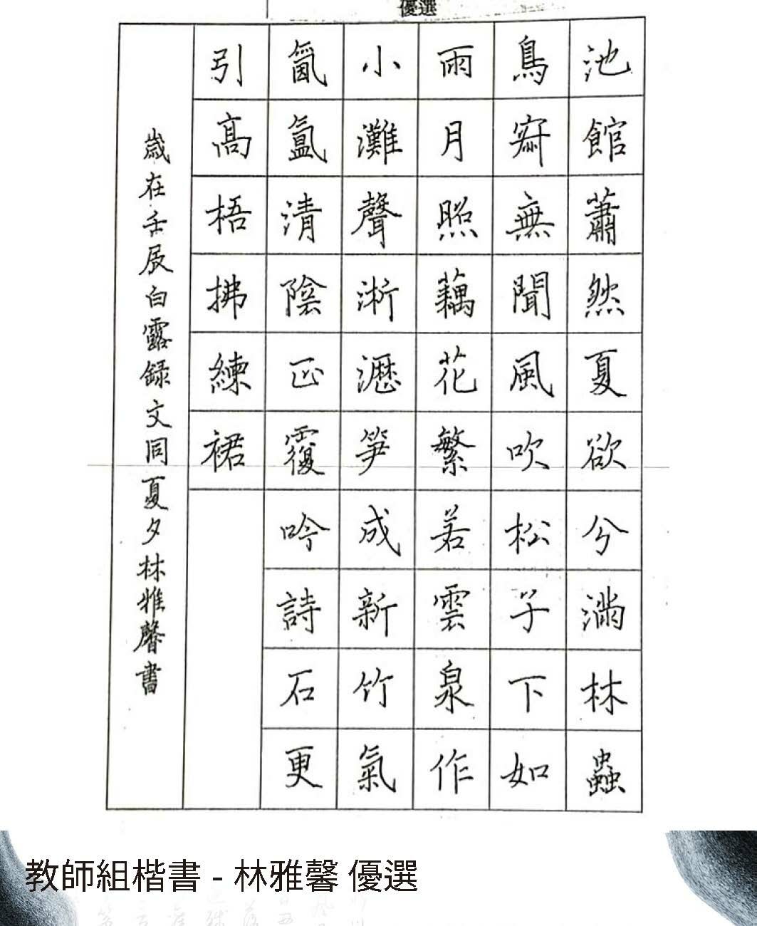 教師組楷書