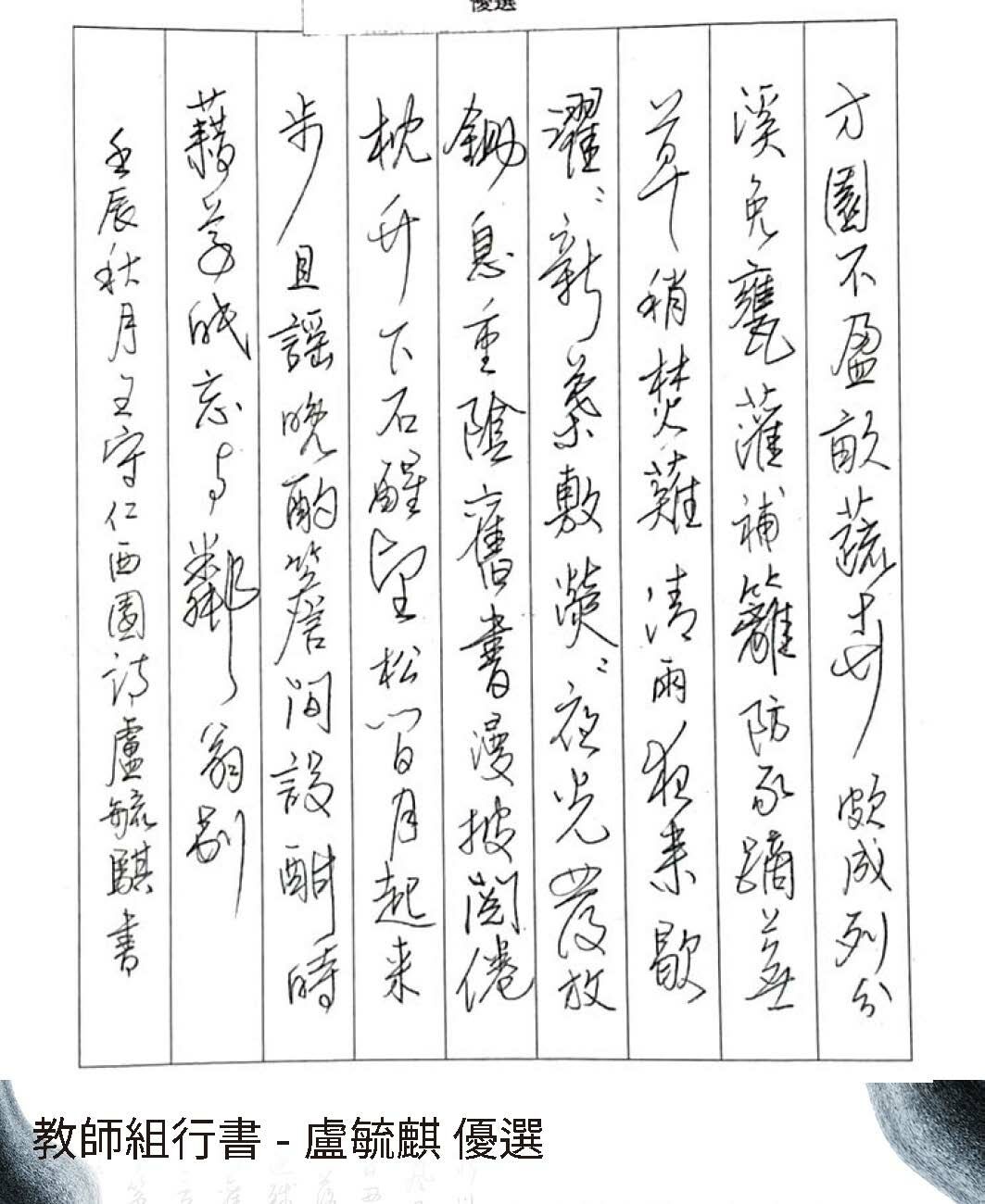 第11屆硬筆書法比賽得獎作品線上展出藝廊