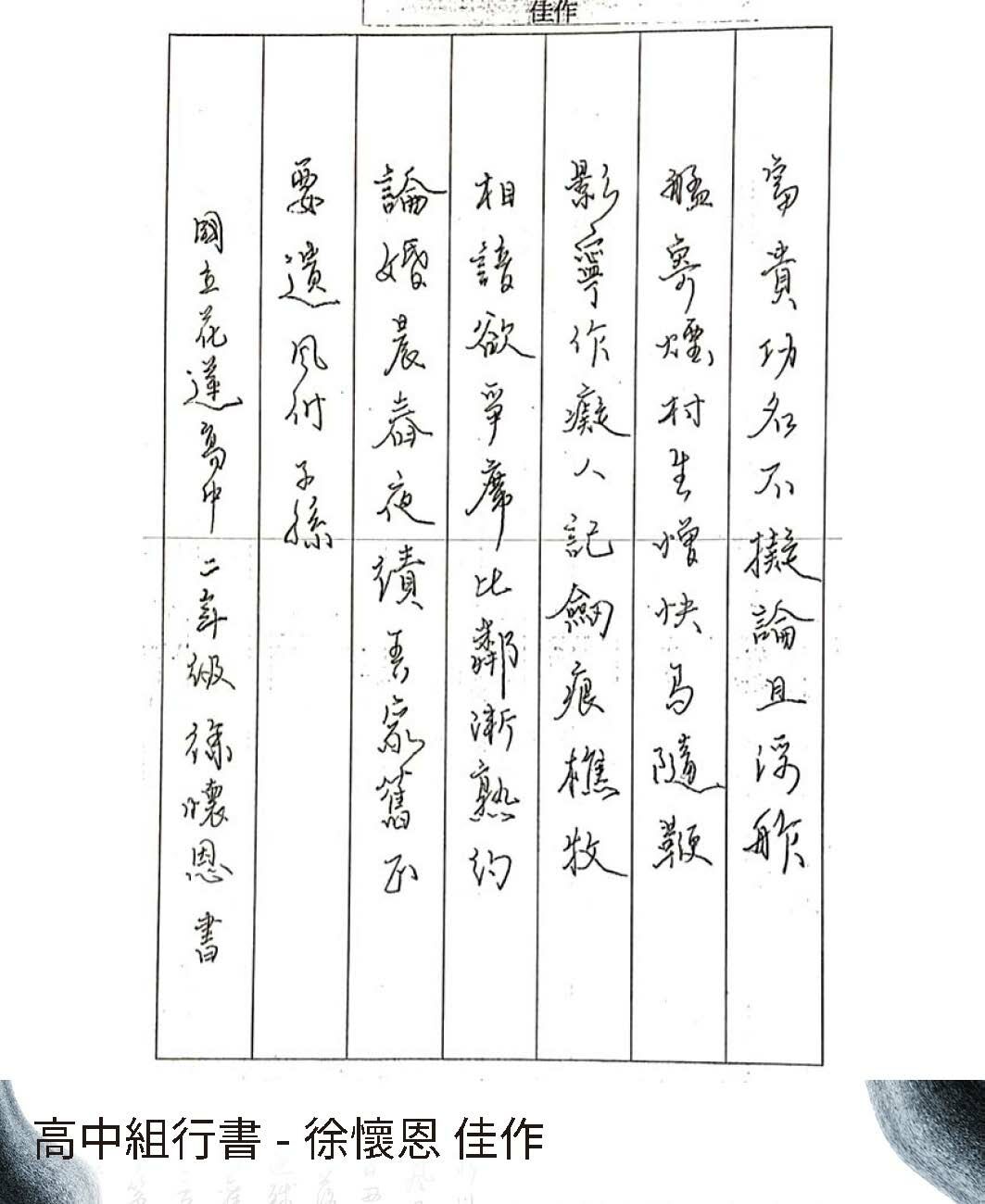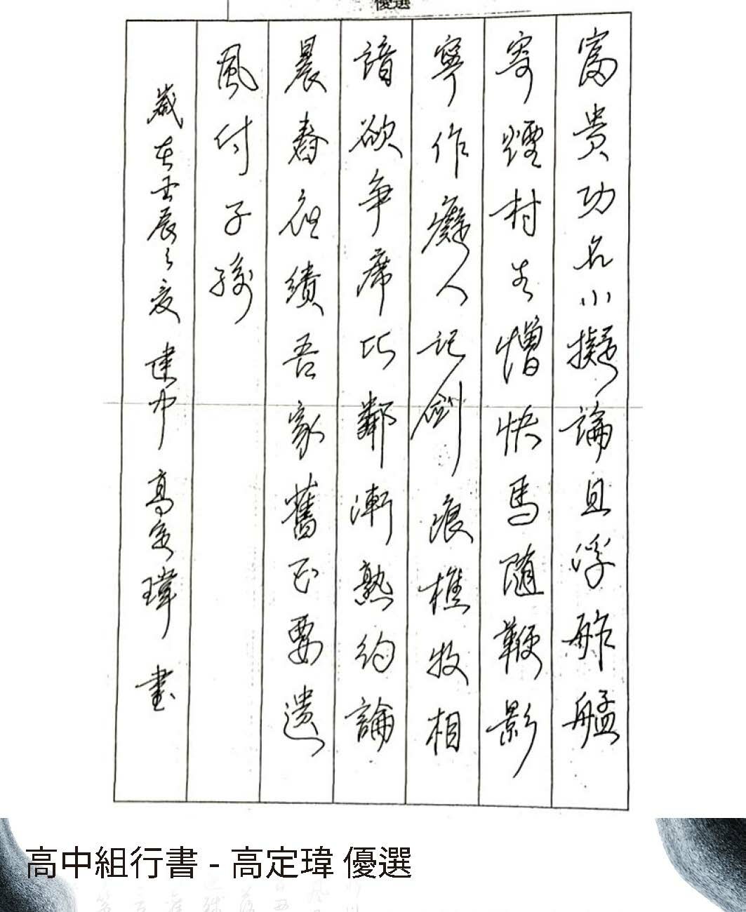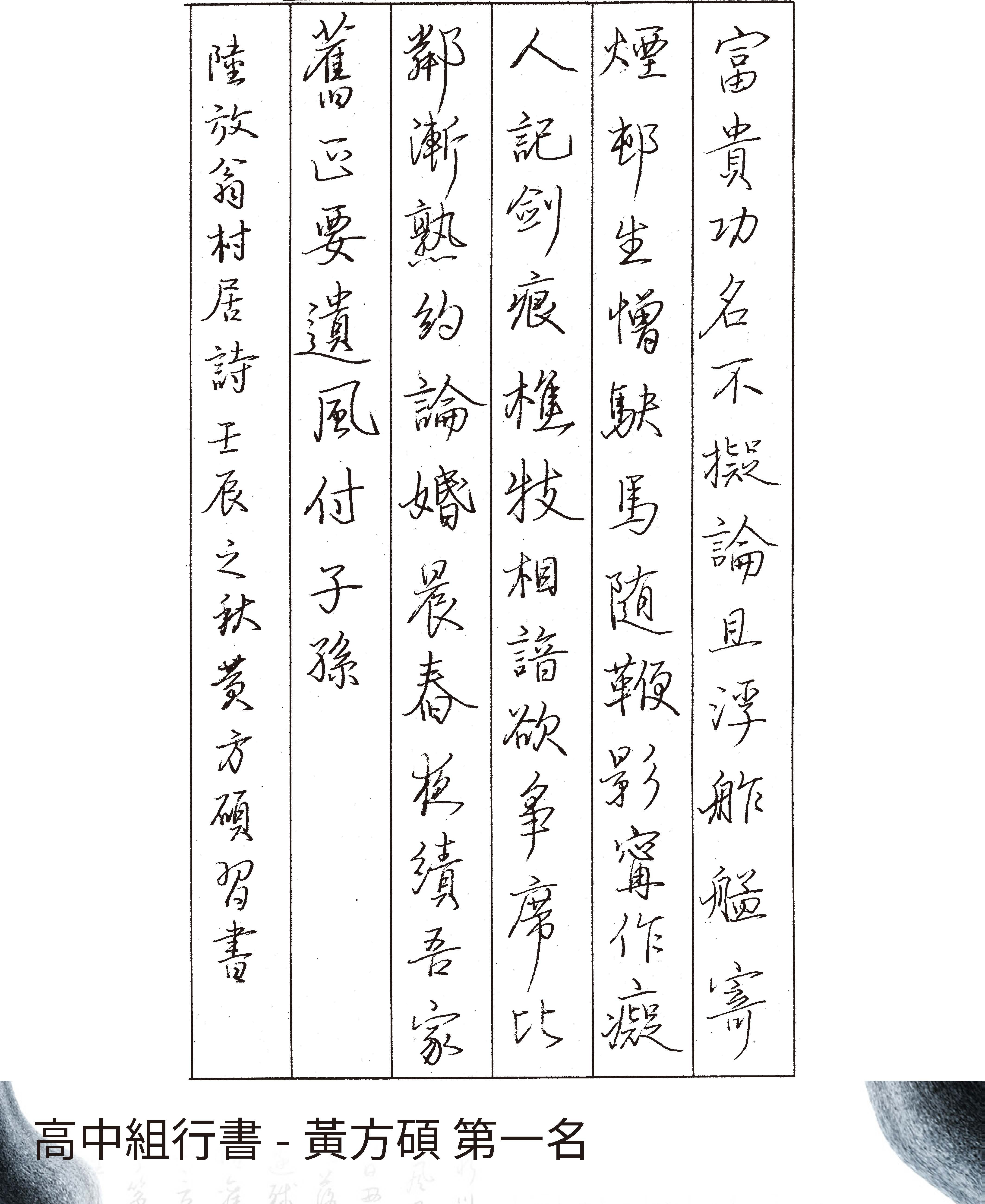 高中組行書