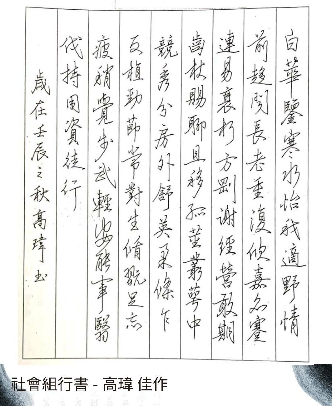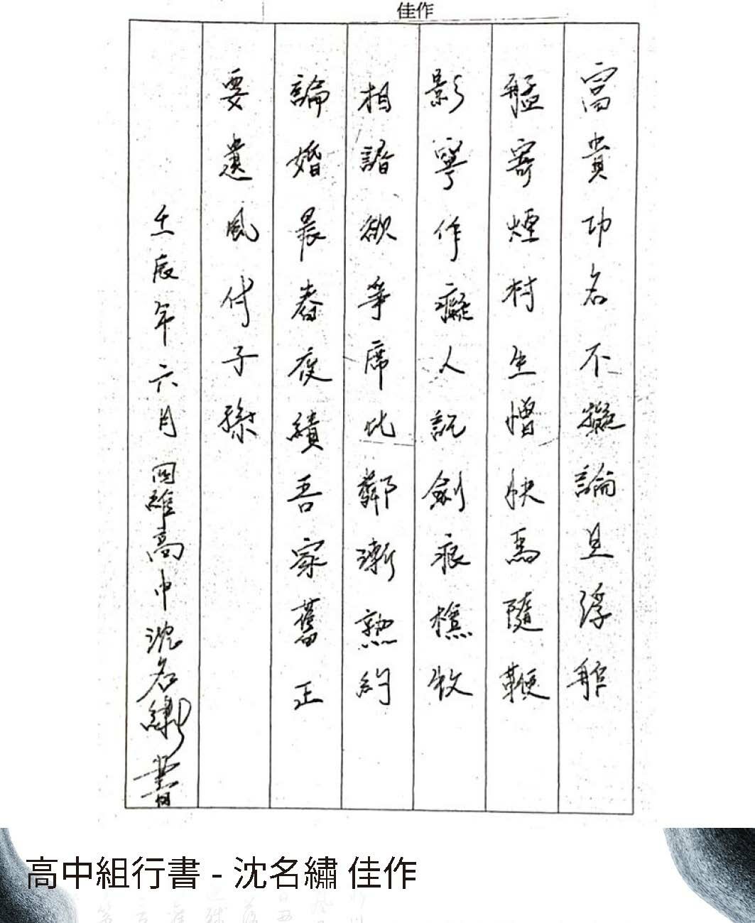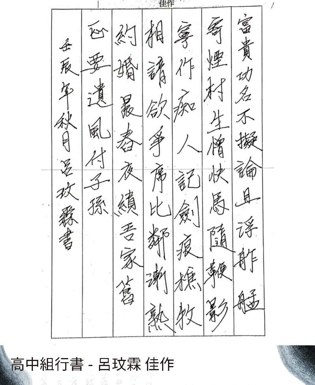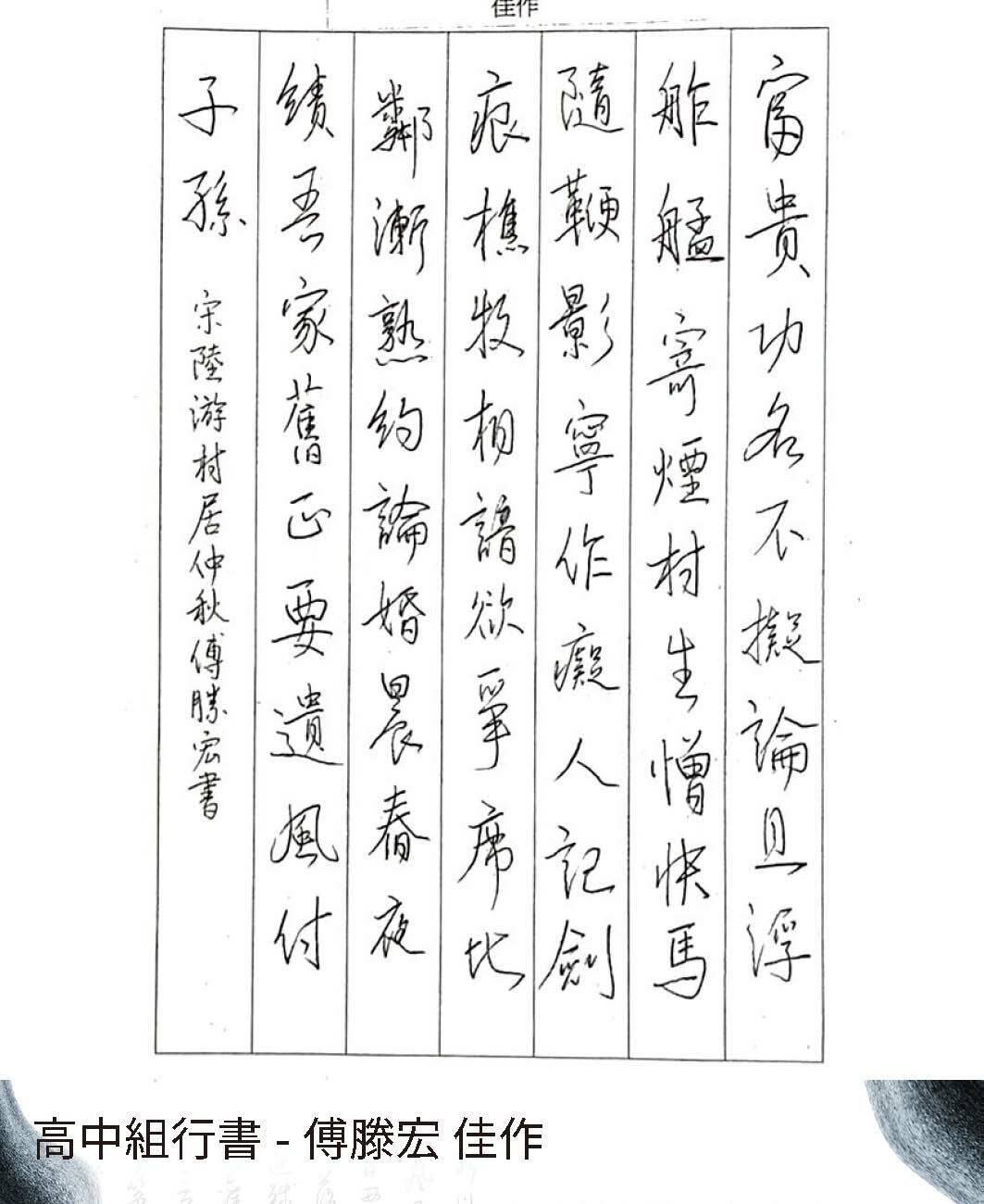 高中組行書