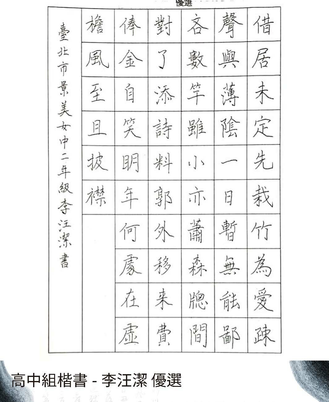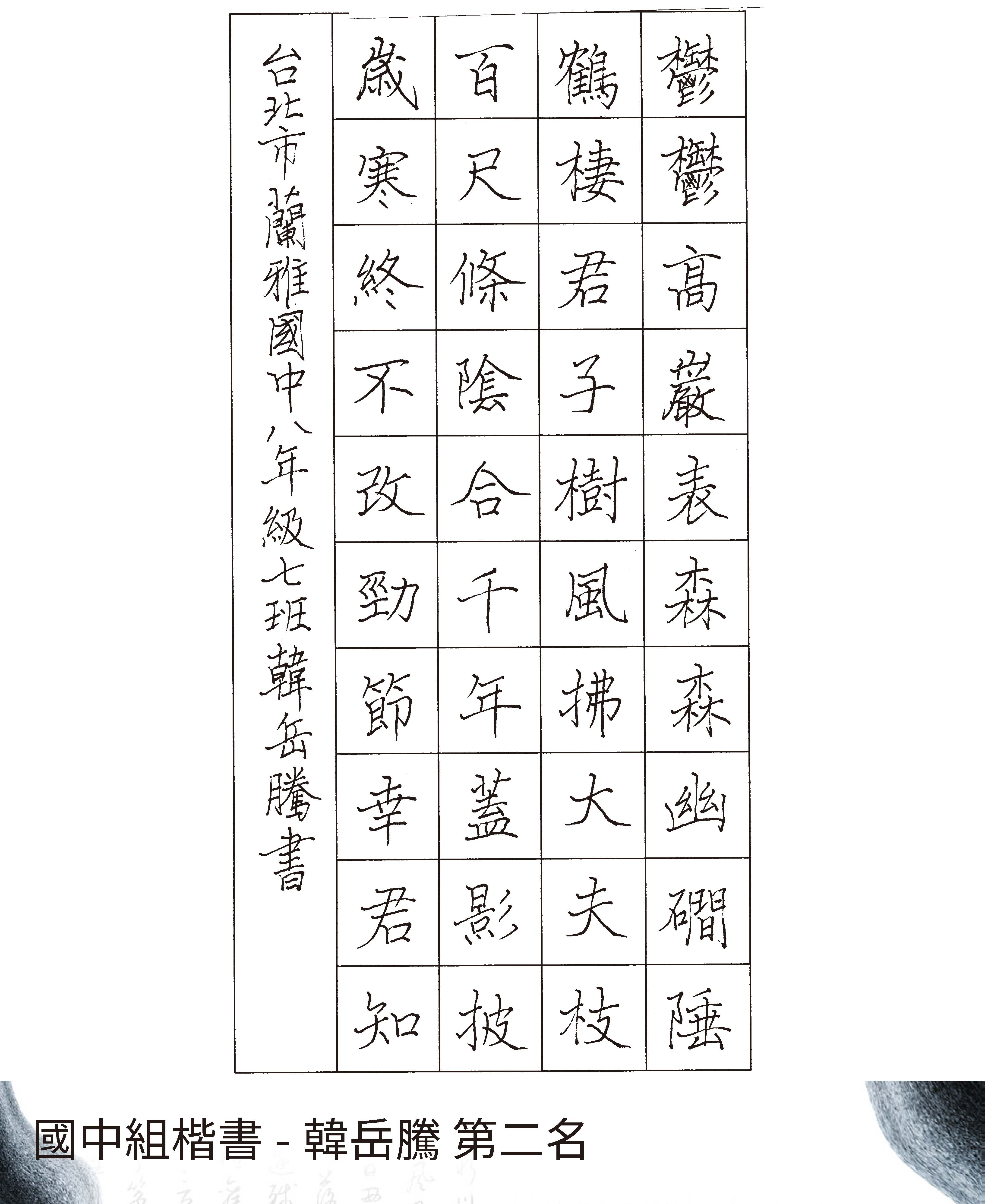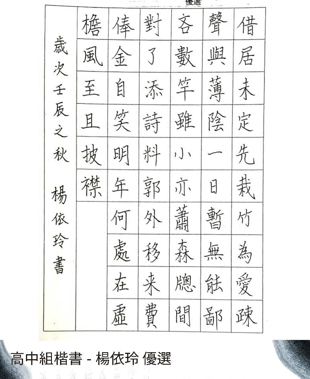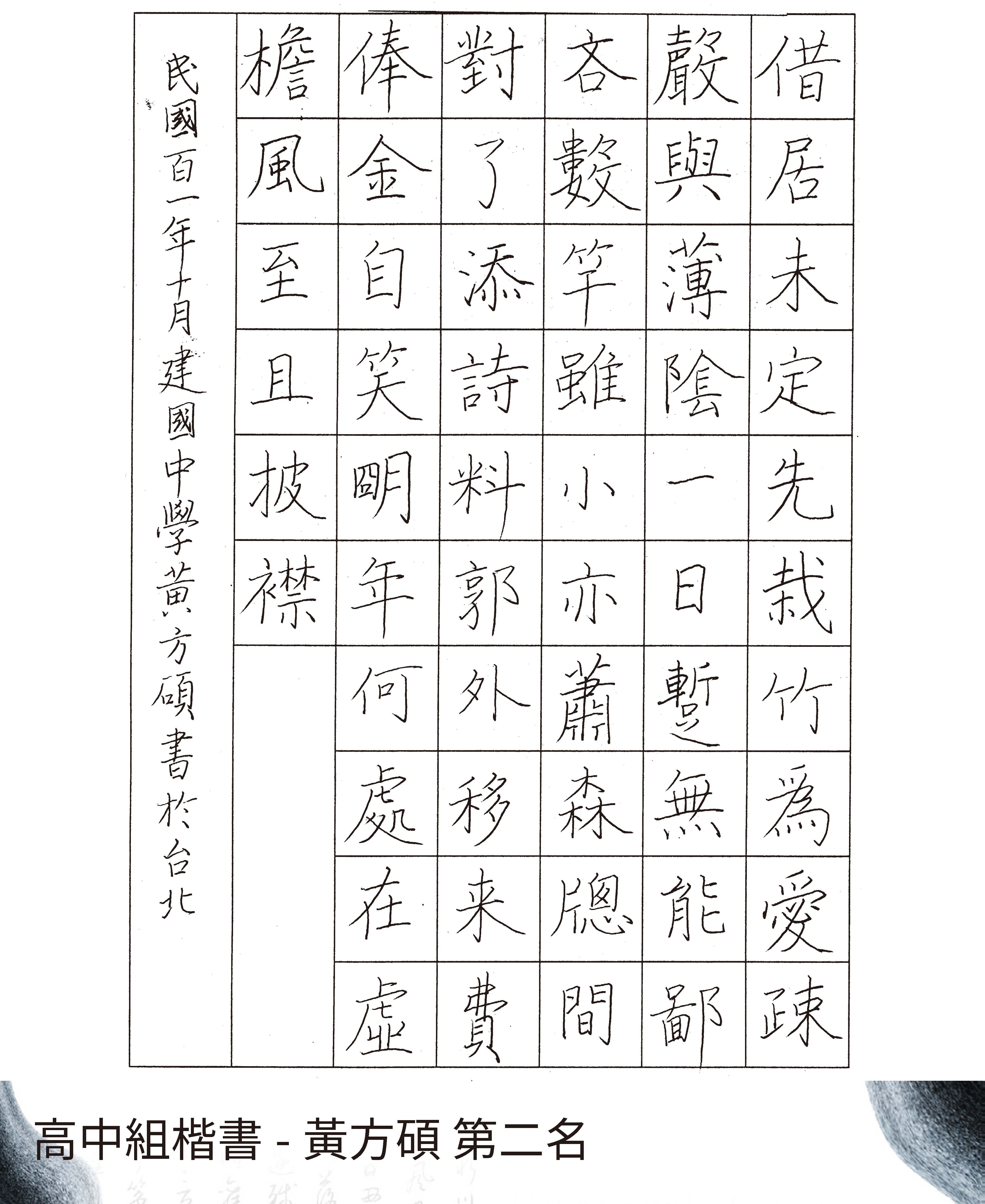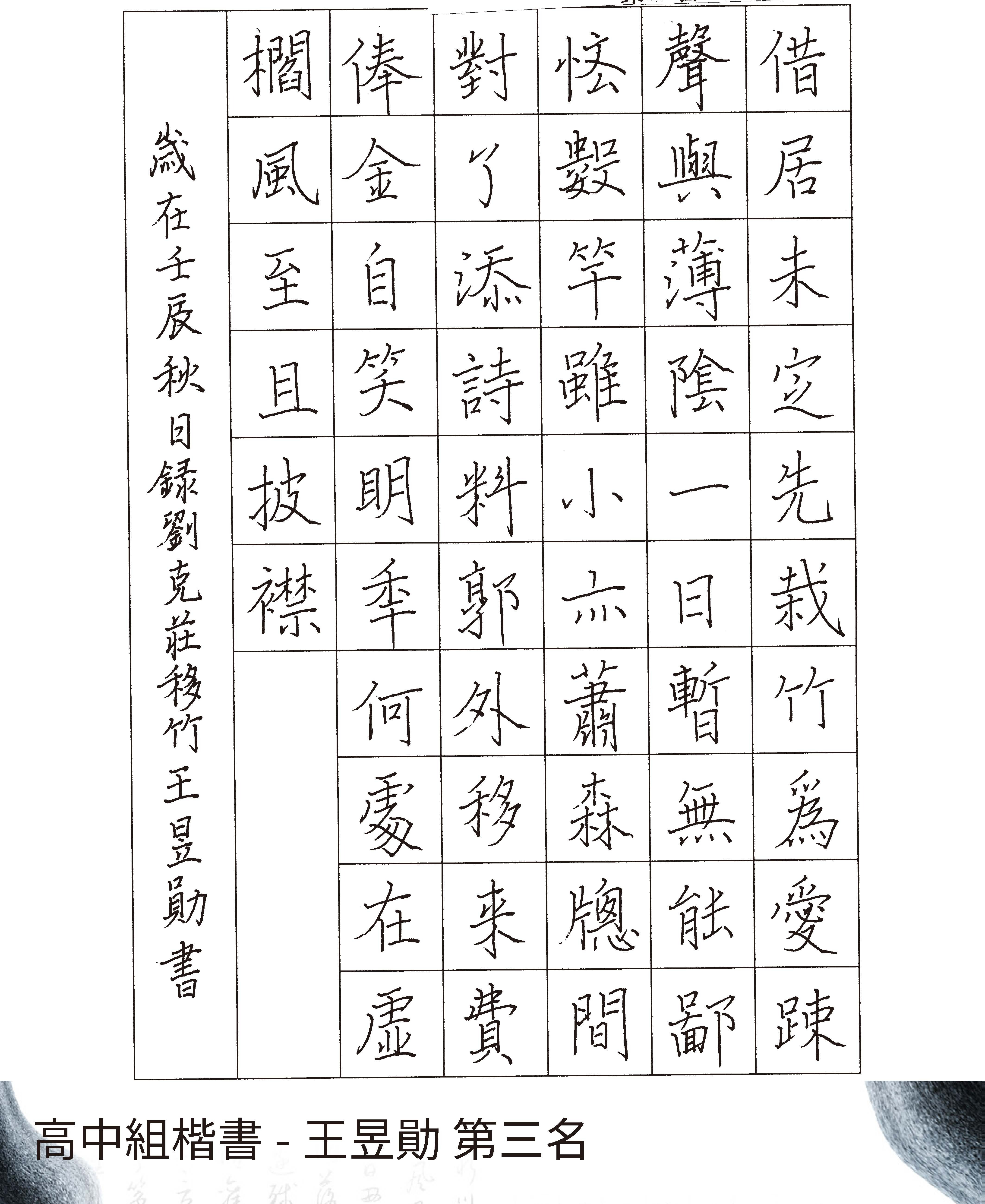 高中組楷書