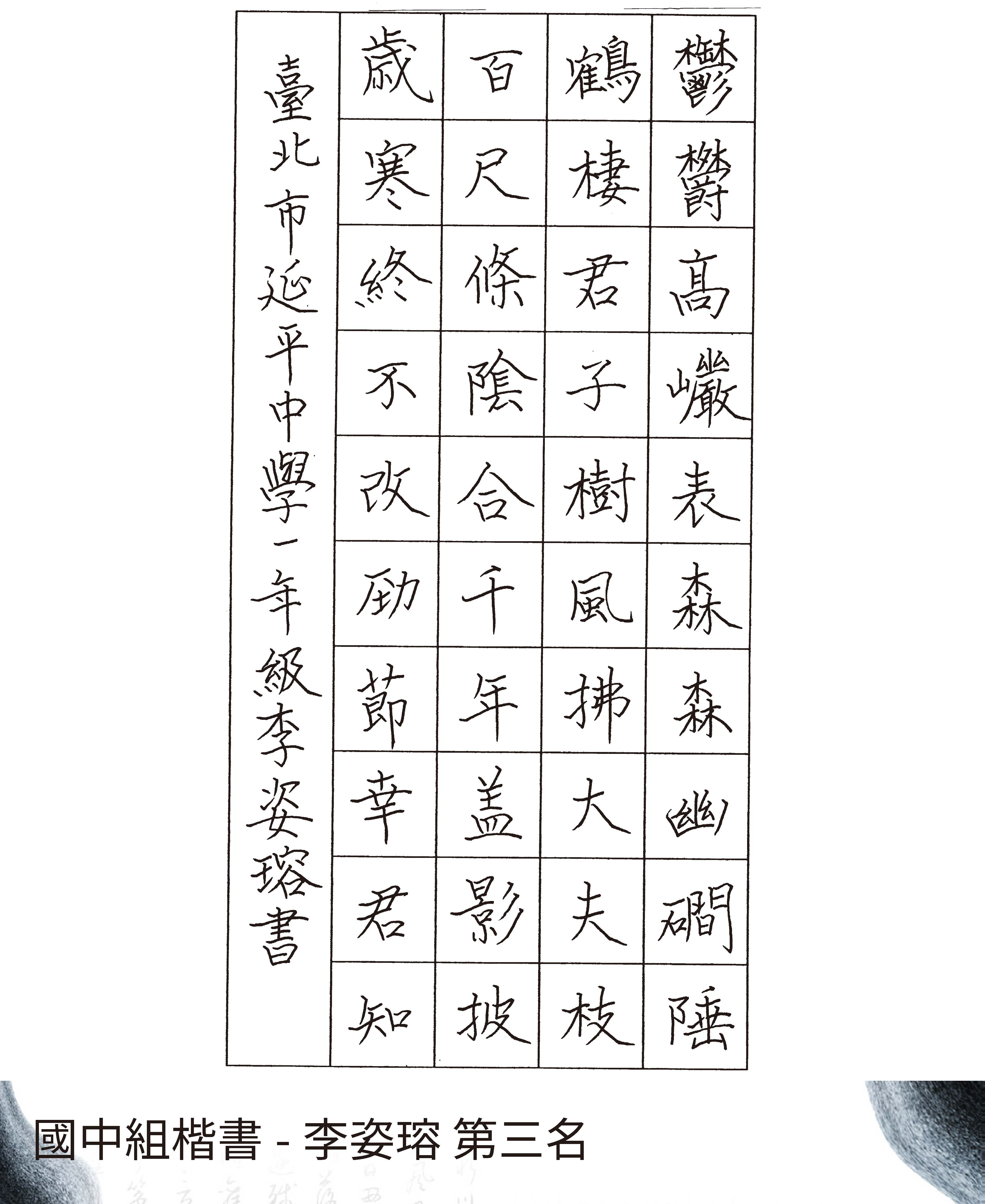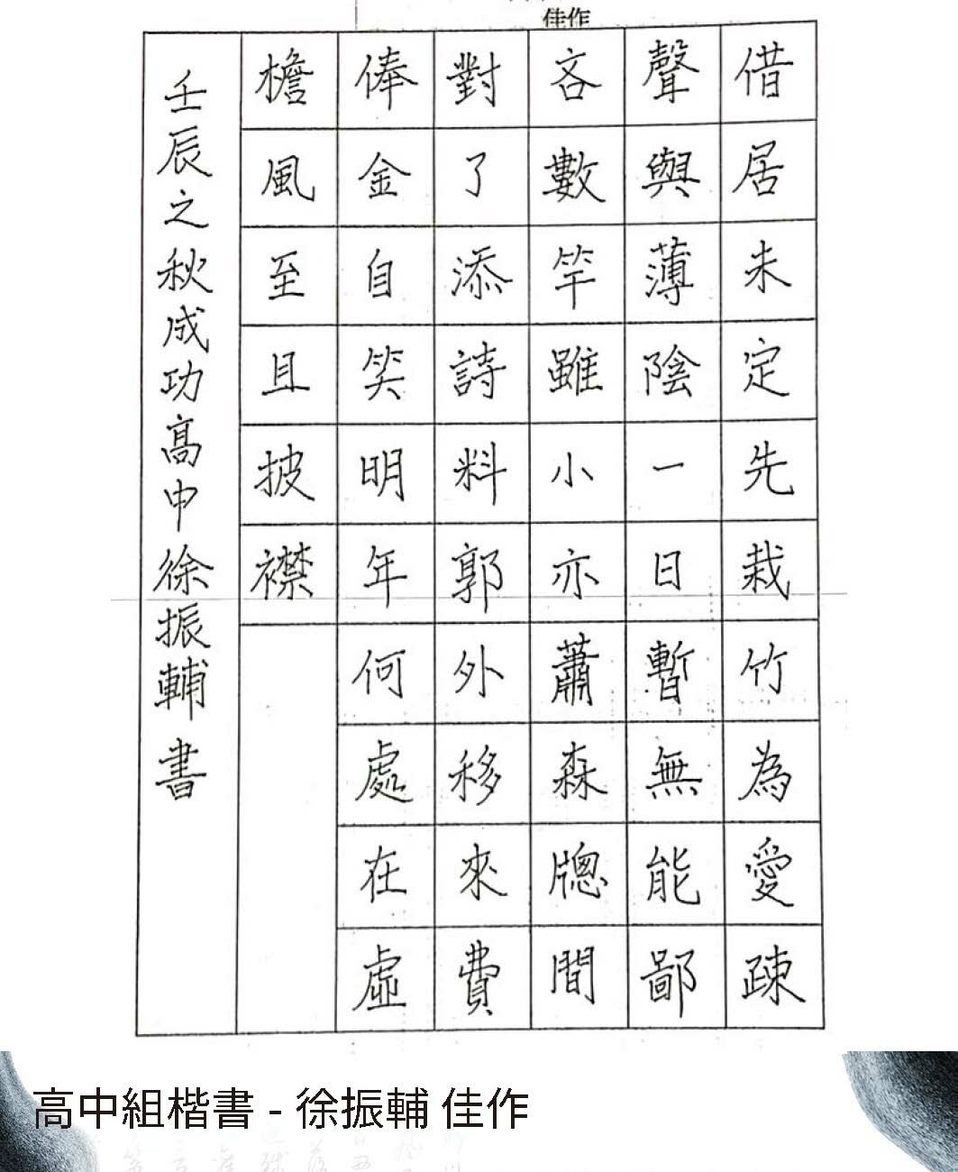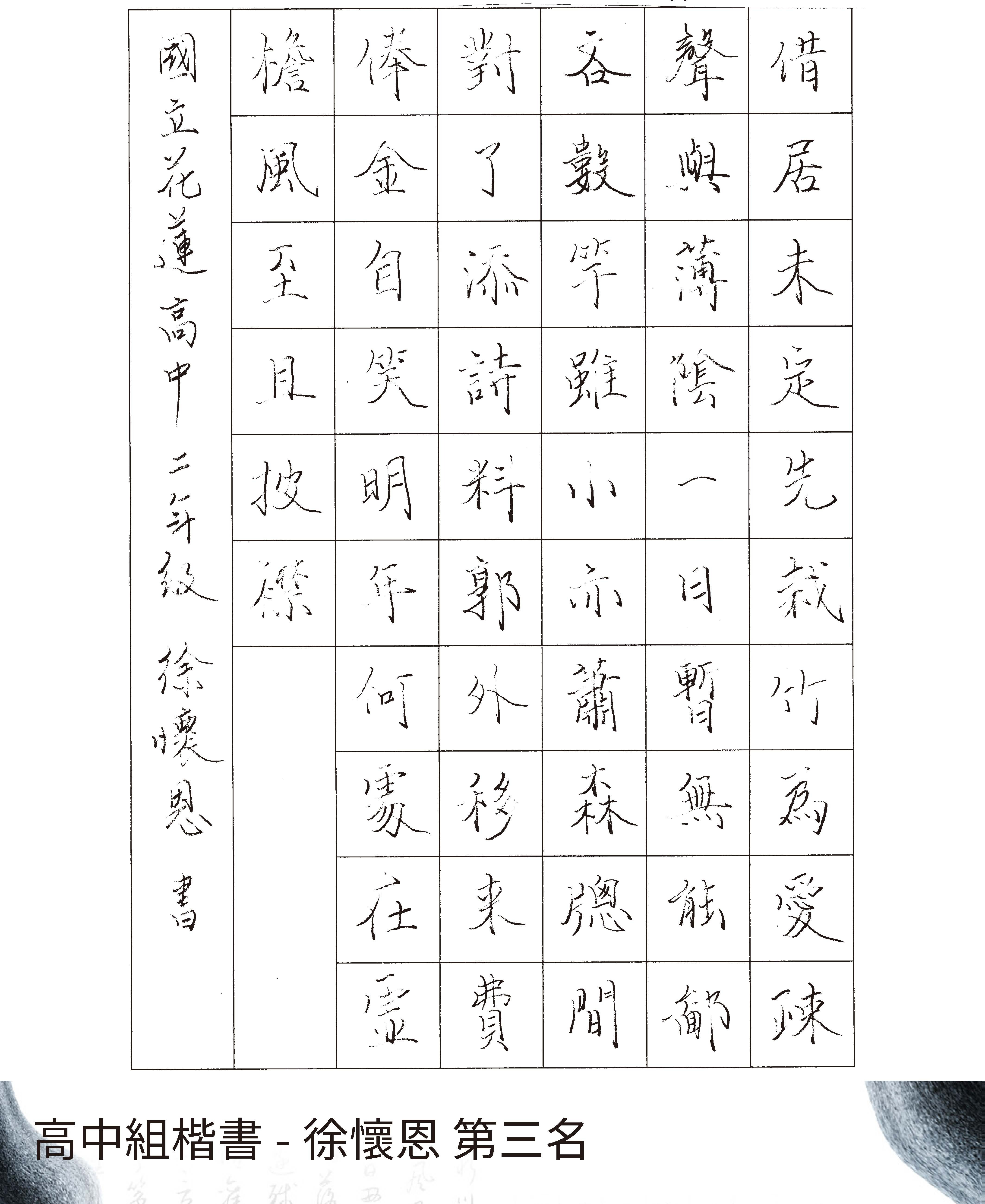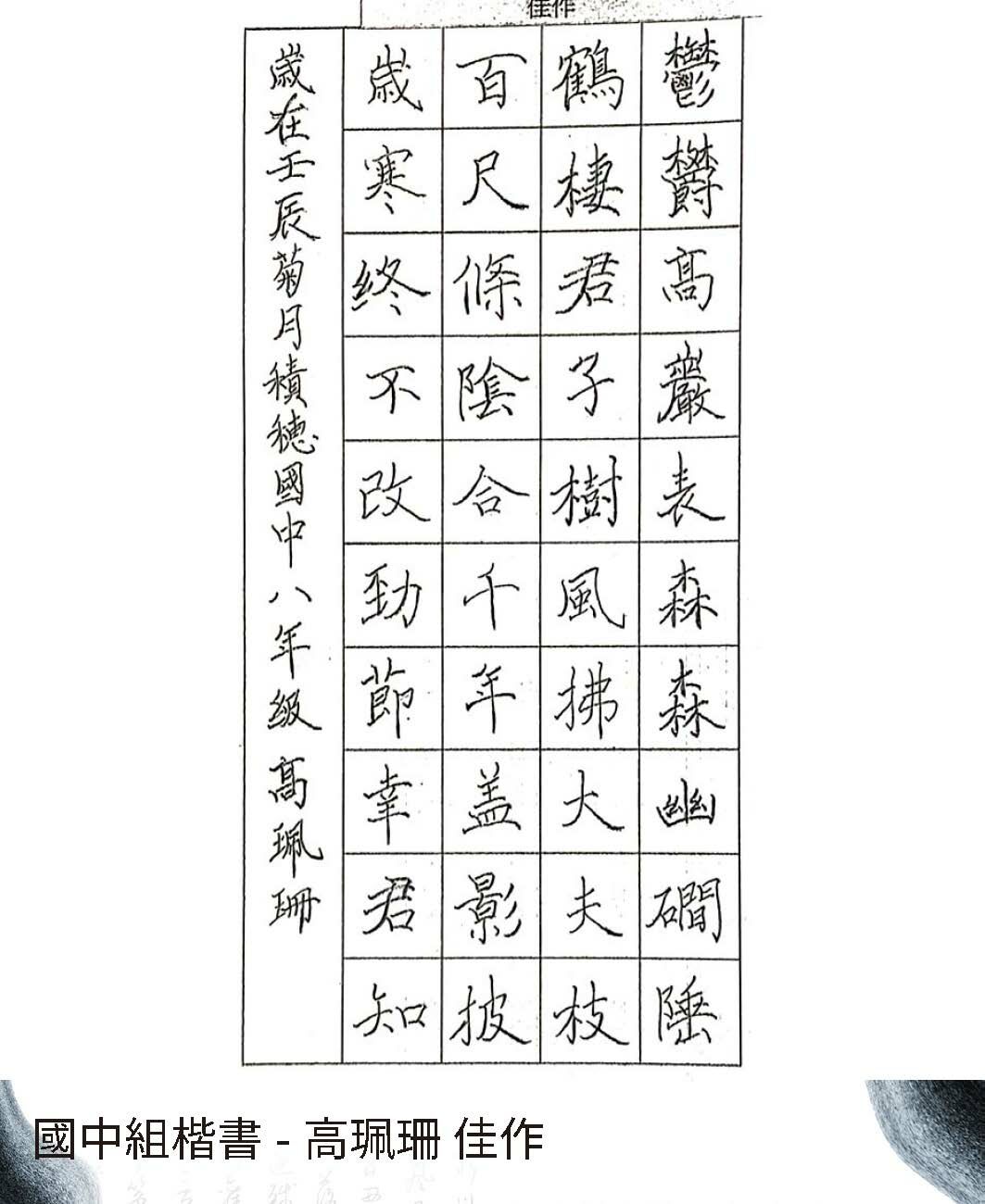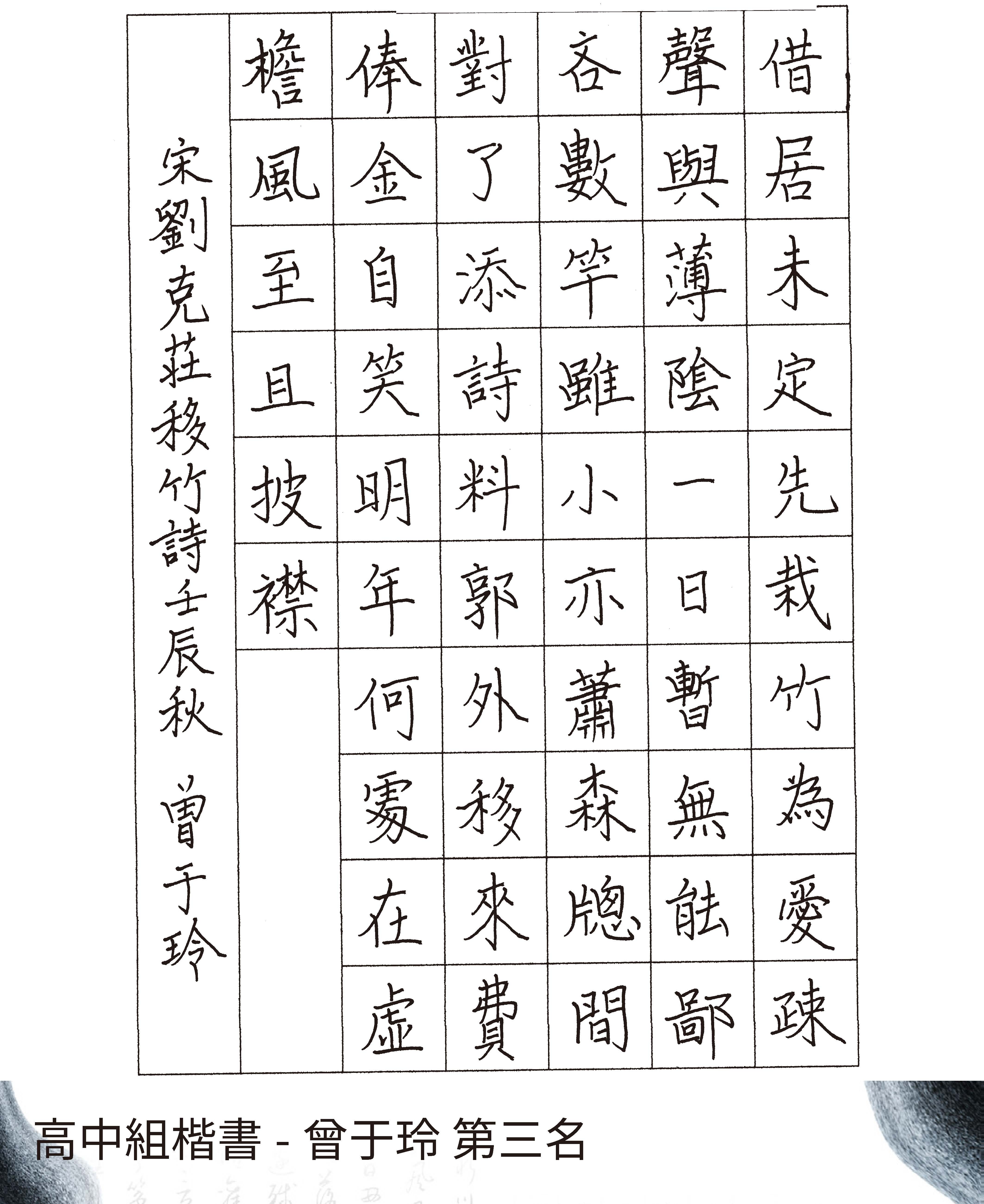 高中組楷書