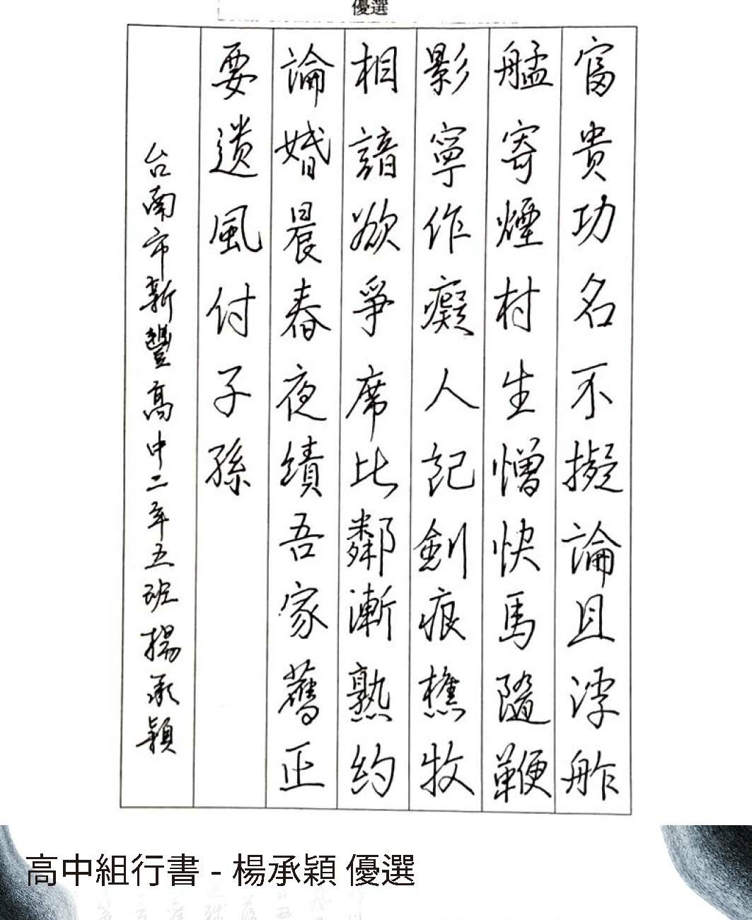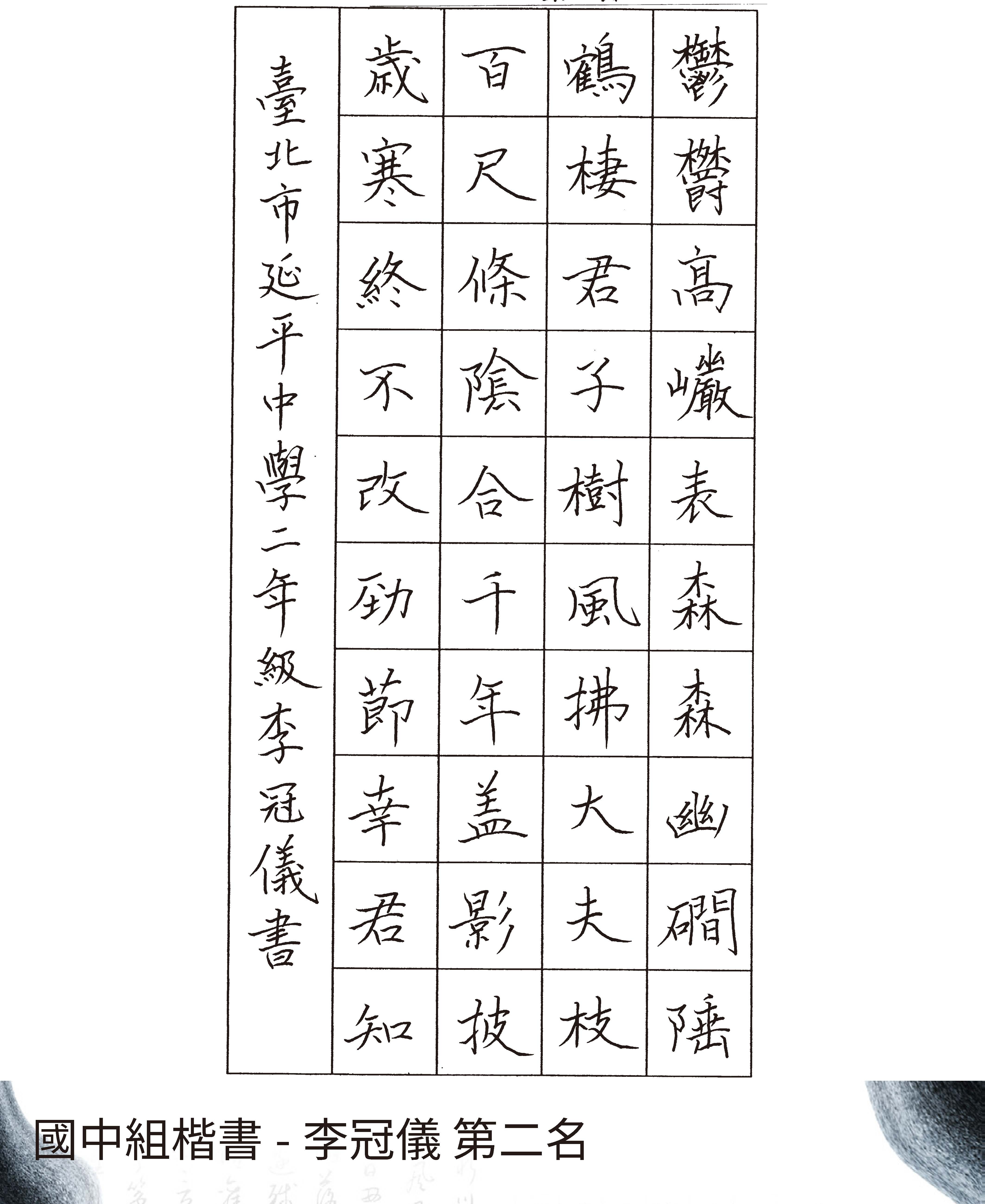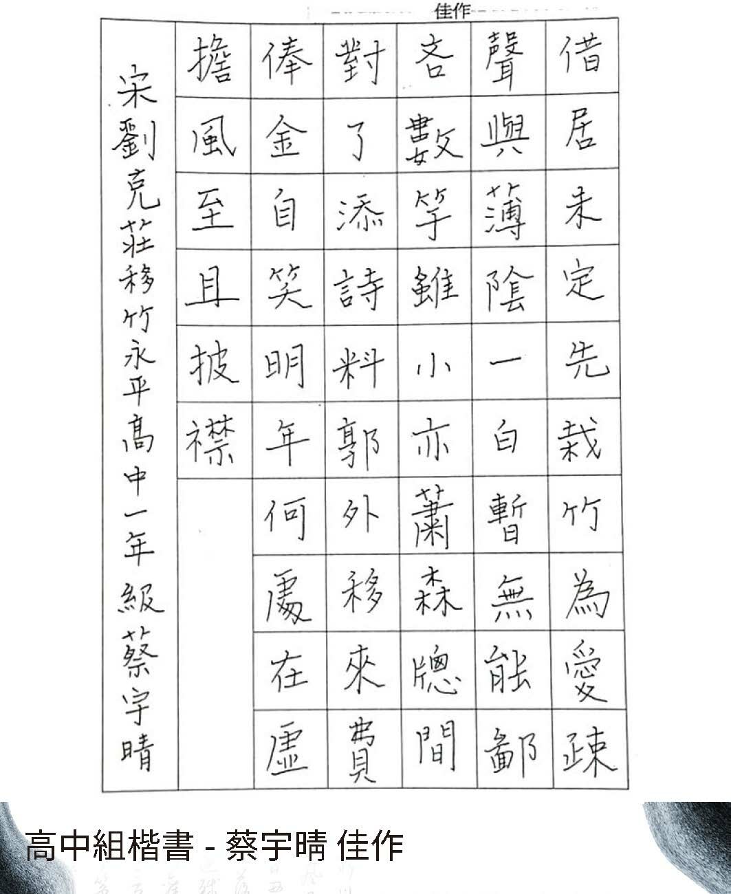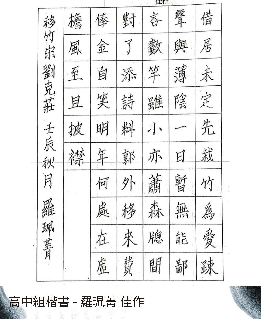 高中組楷書