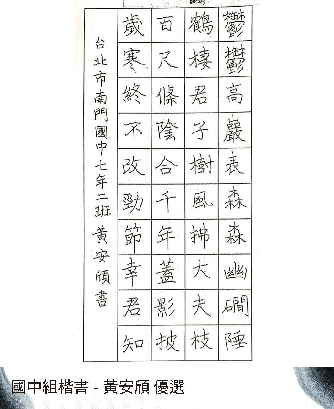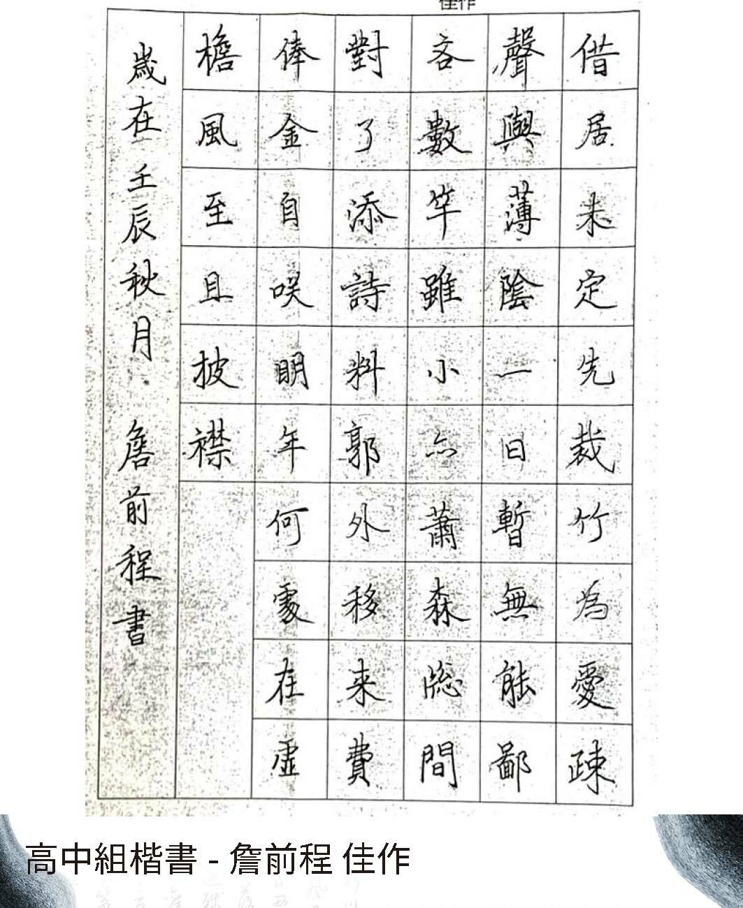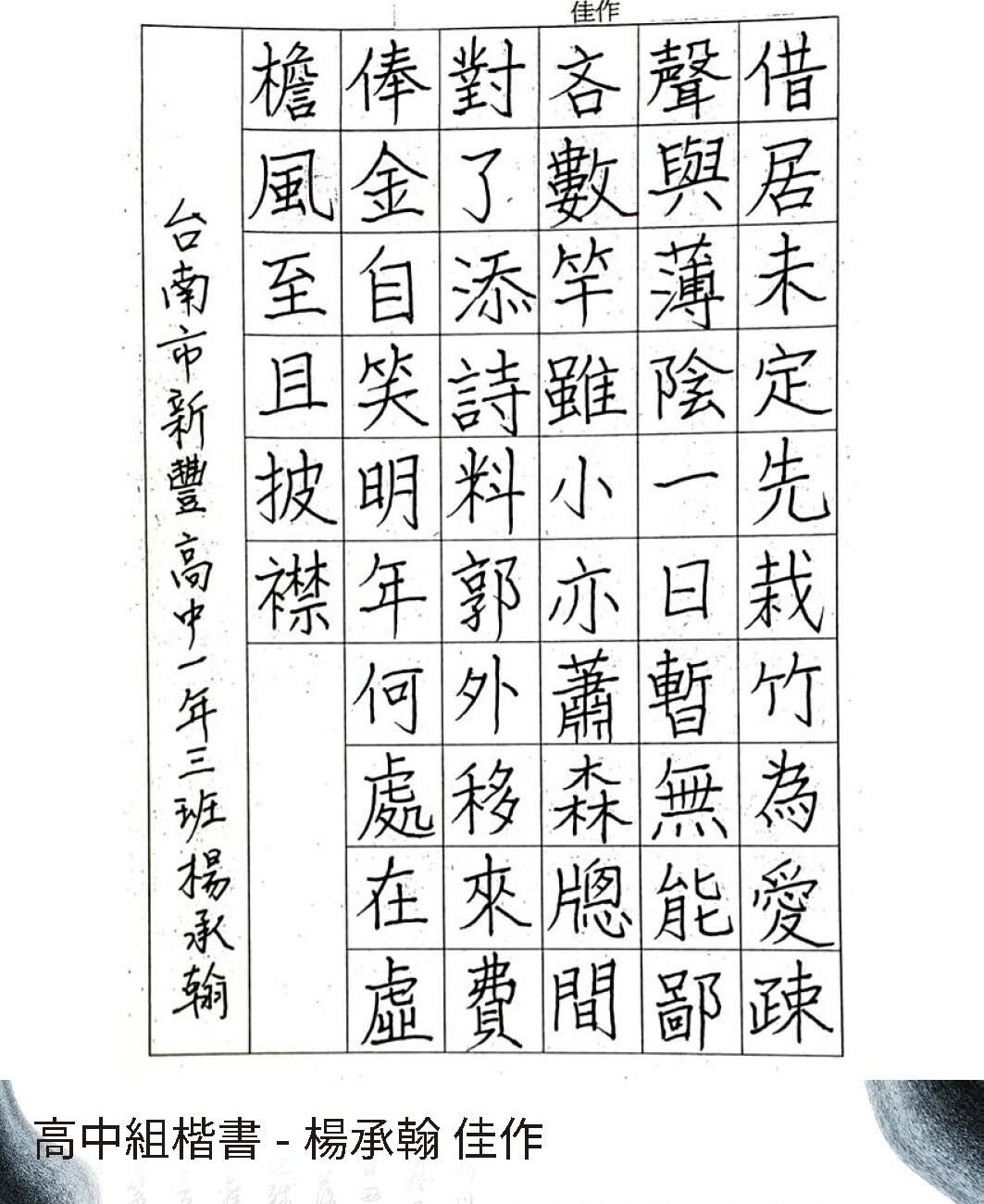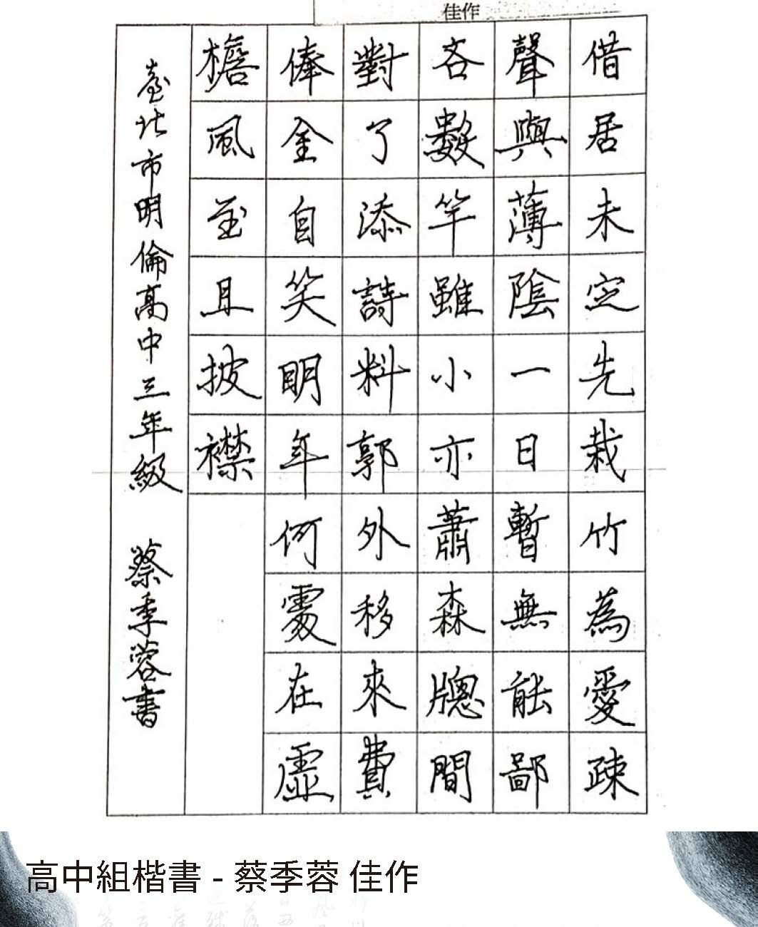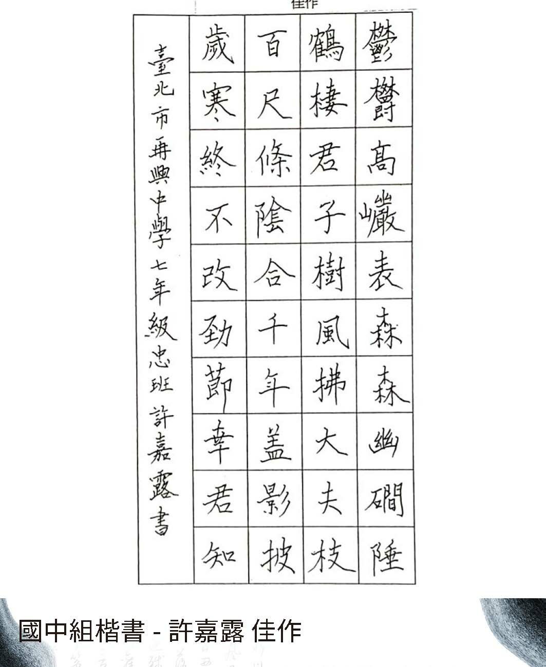 高中組楷書