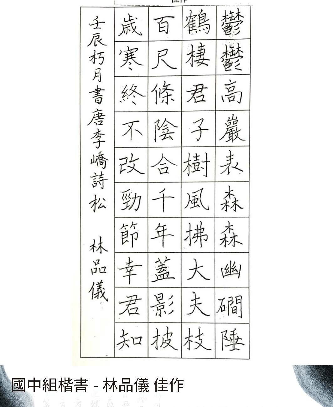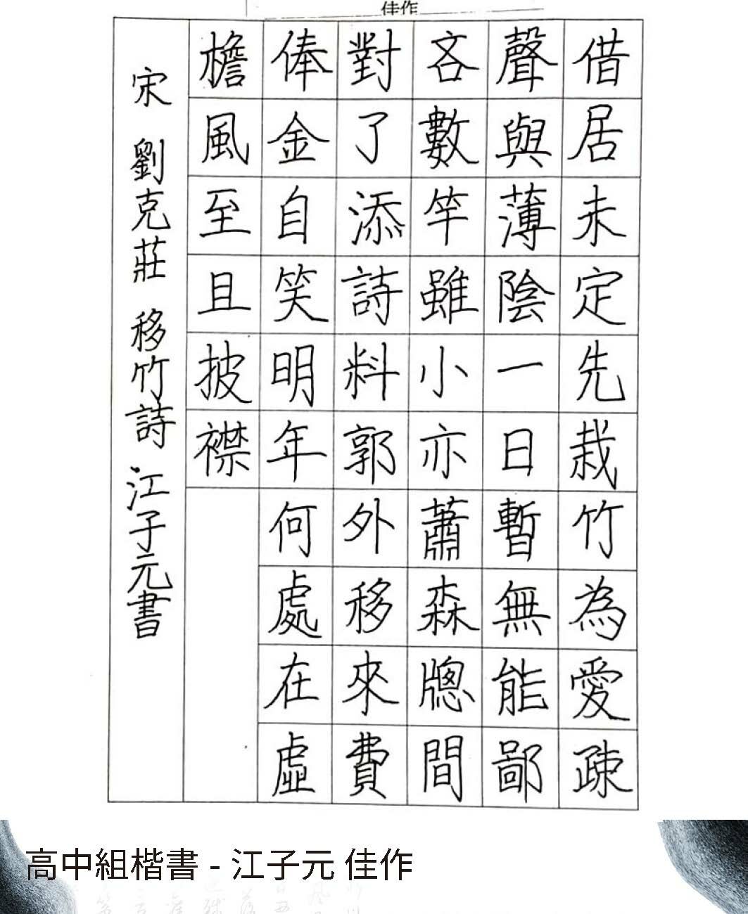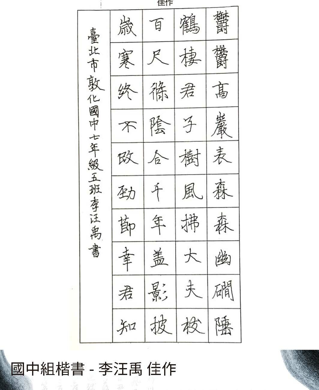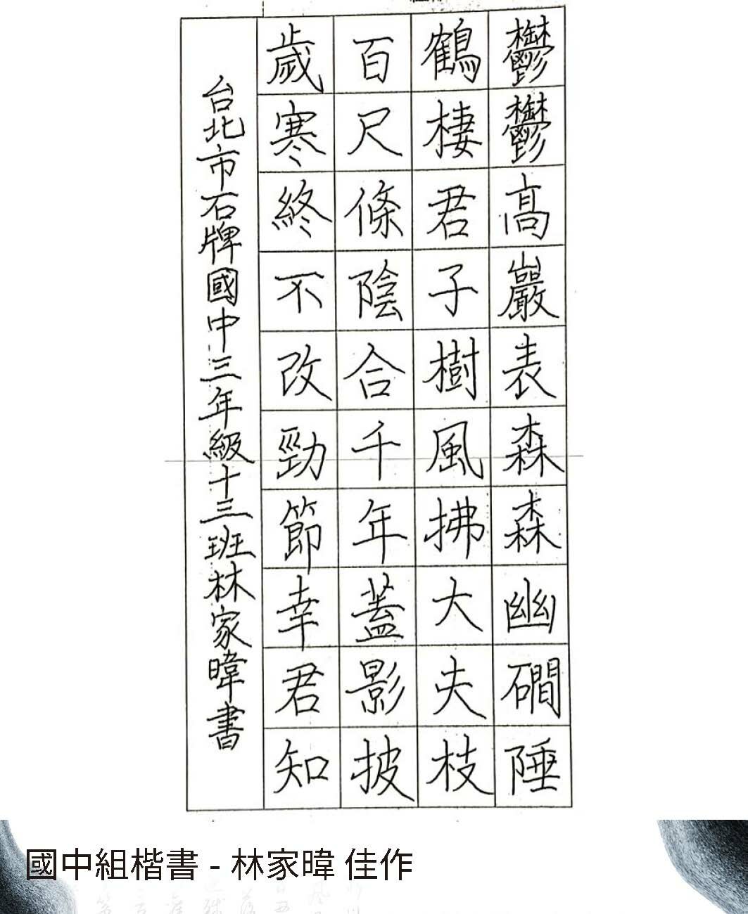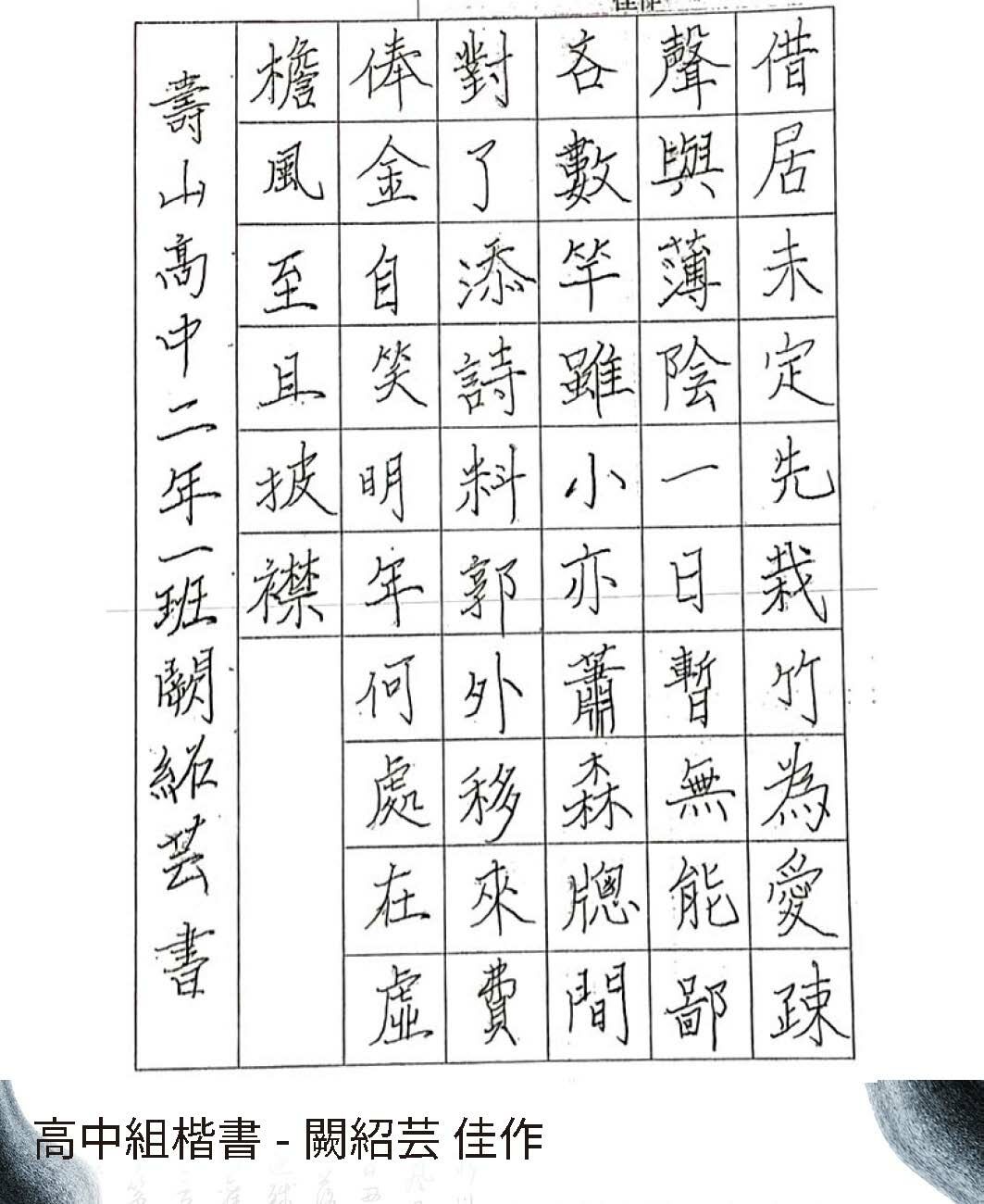 高中組楷書