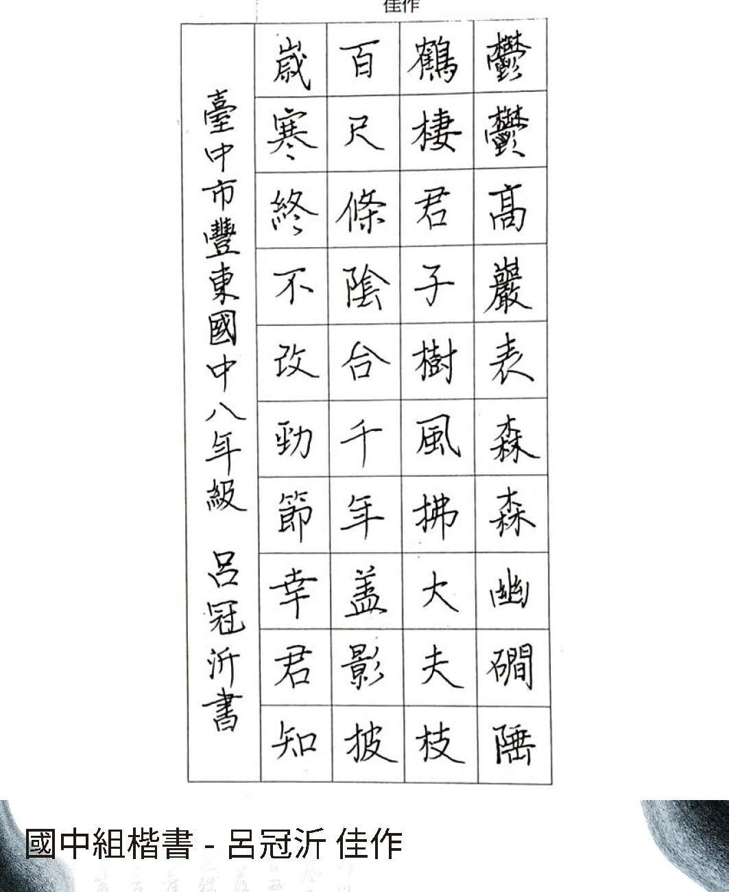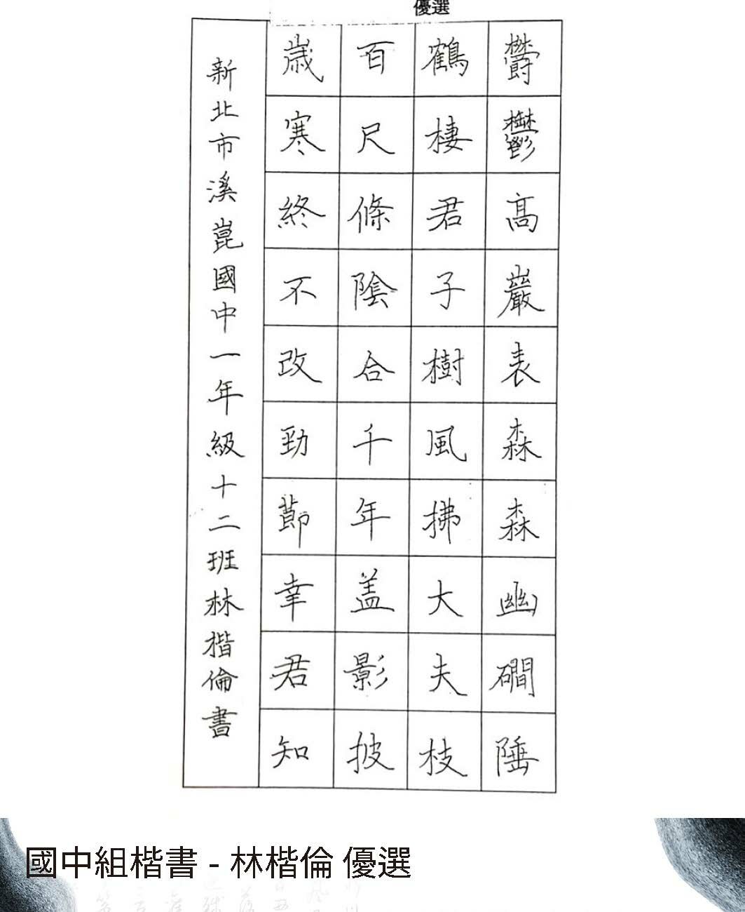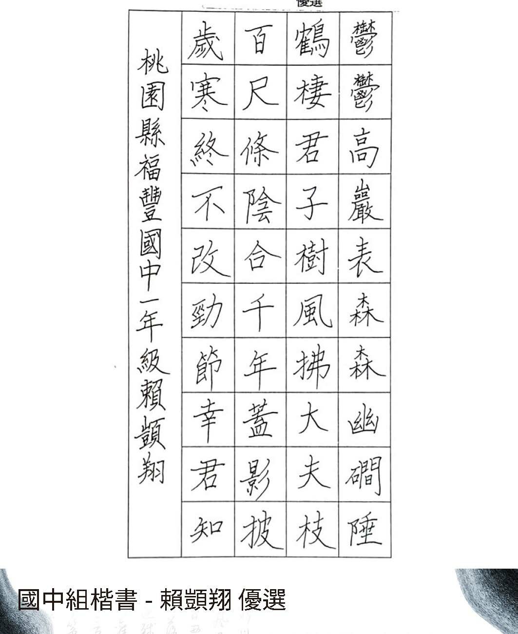 國中組楷書