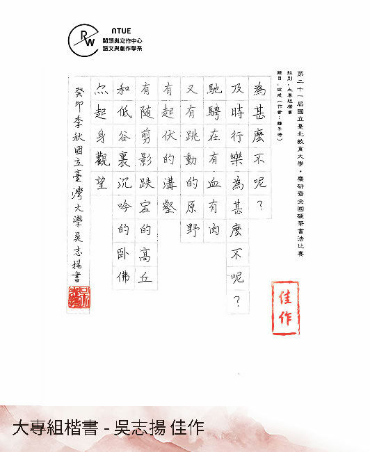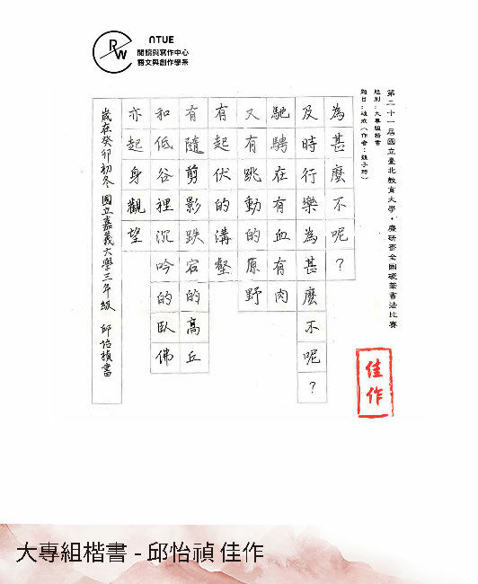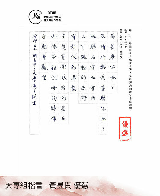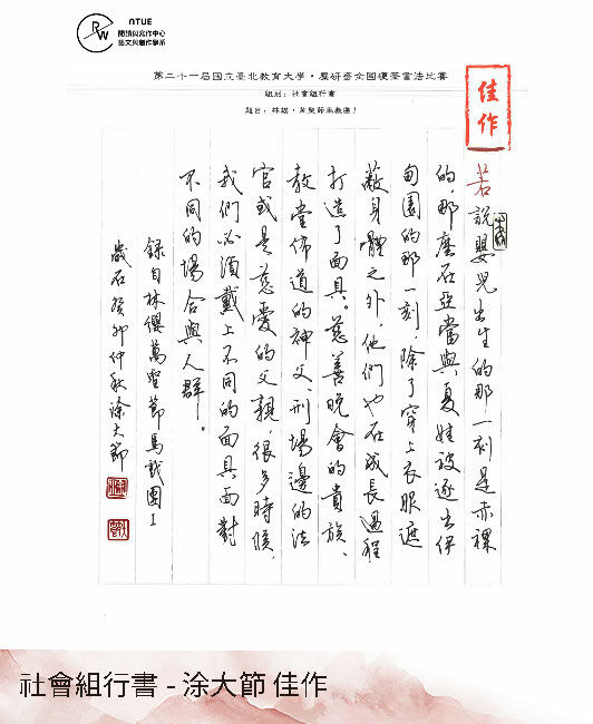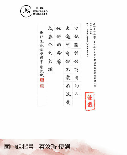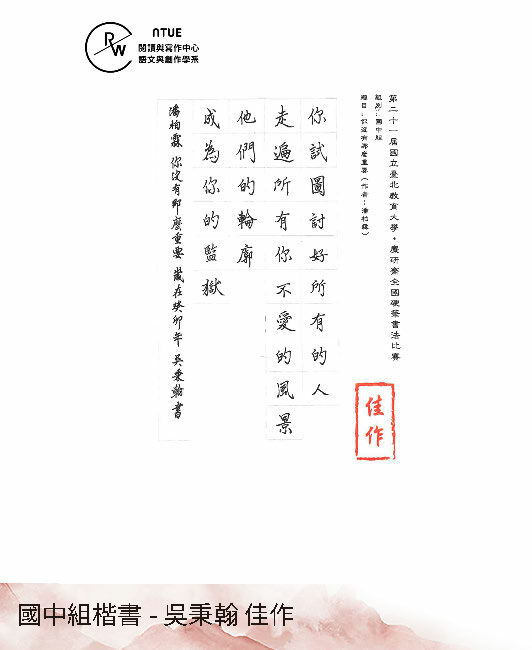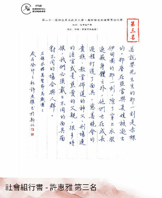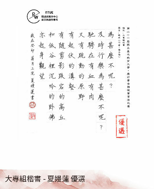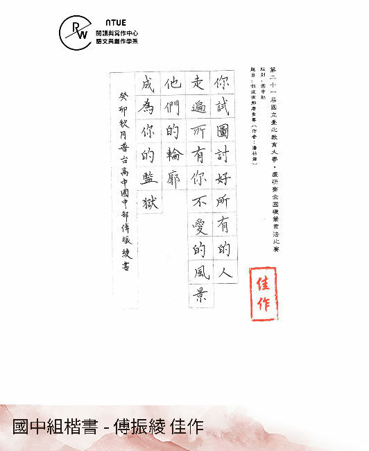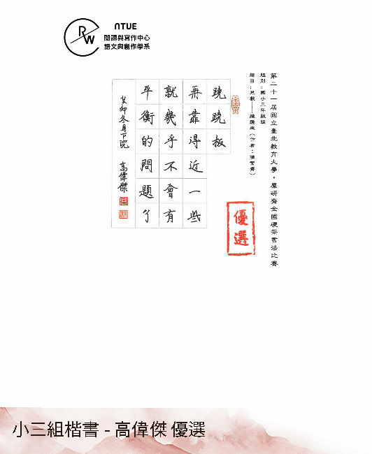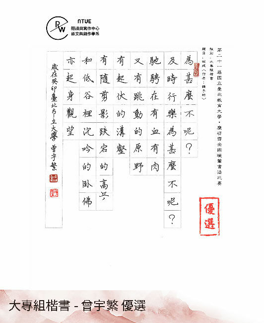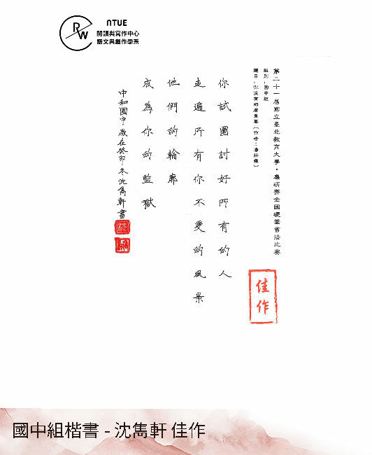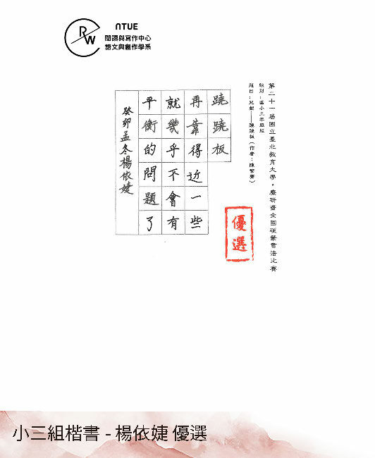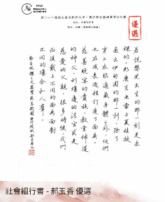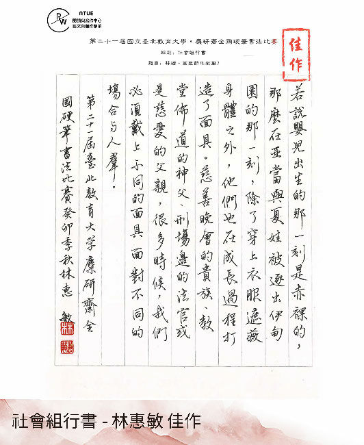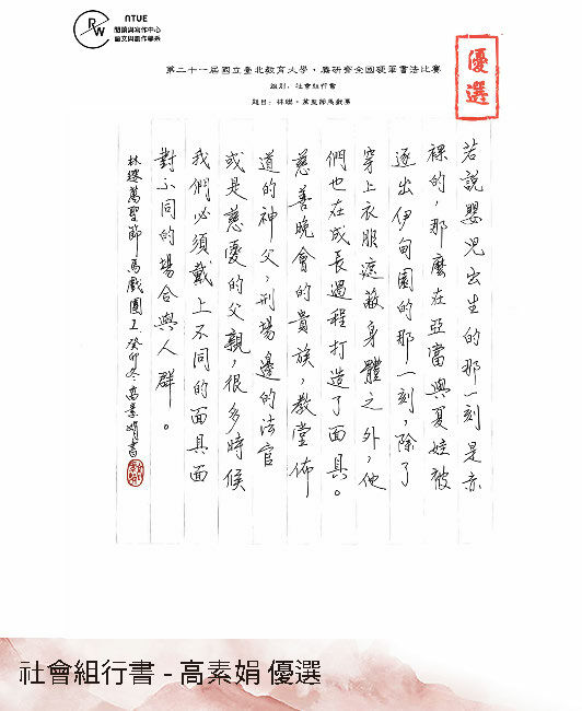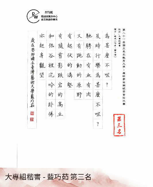 展出地點:國立臺北教育大學篤行樓ㄧ樓,台北市大安區和平東路二段一三四號。