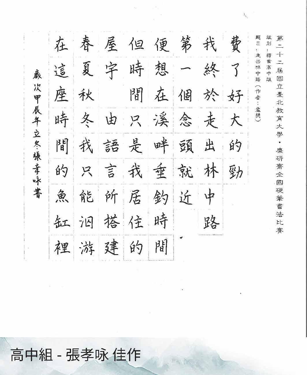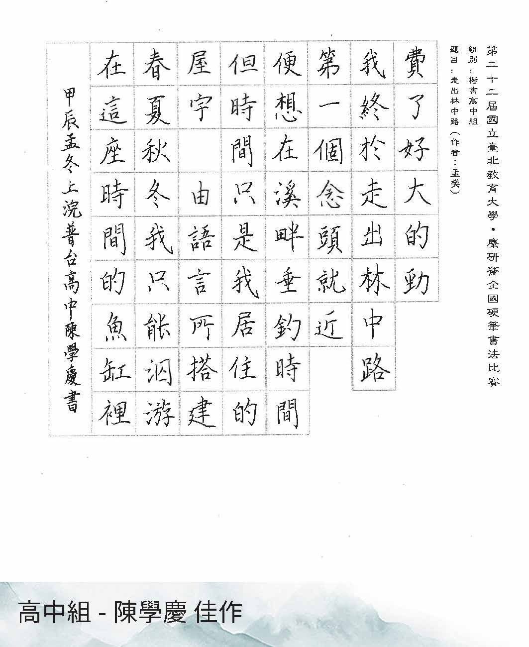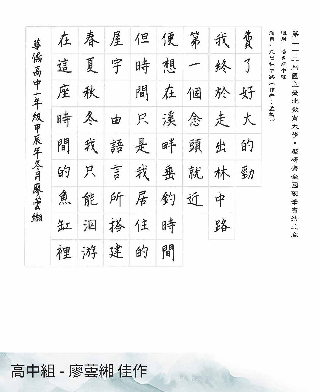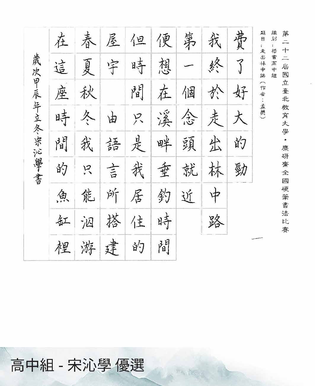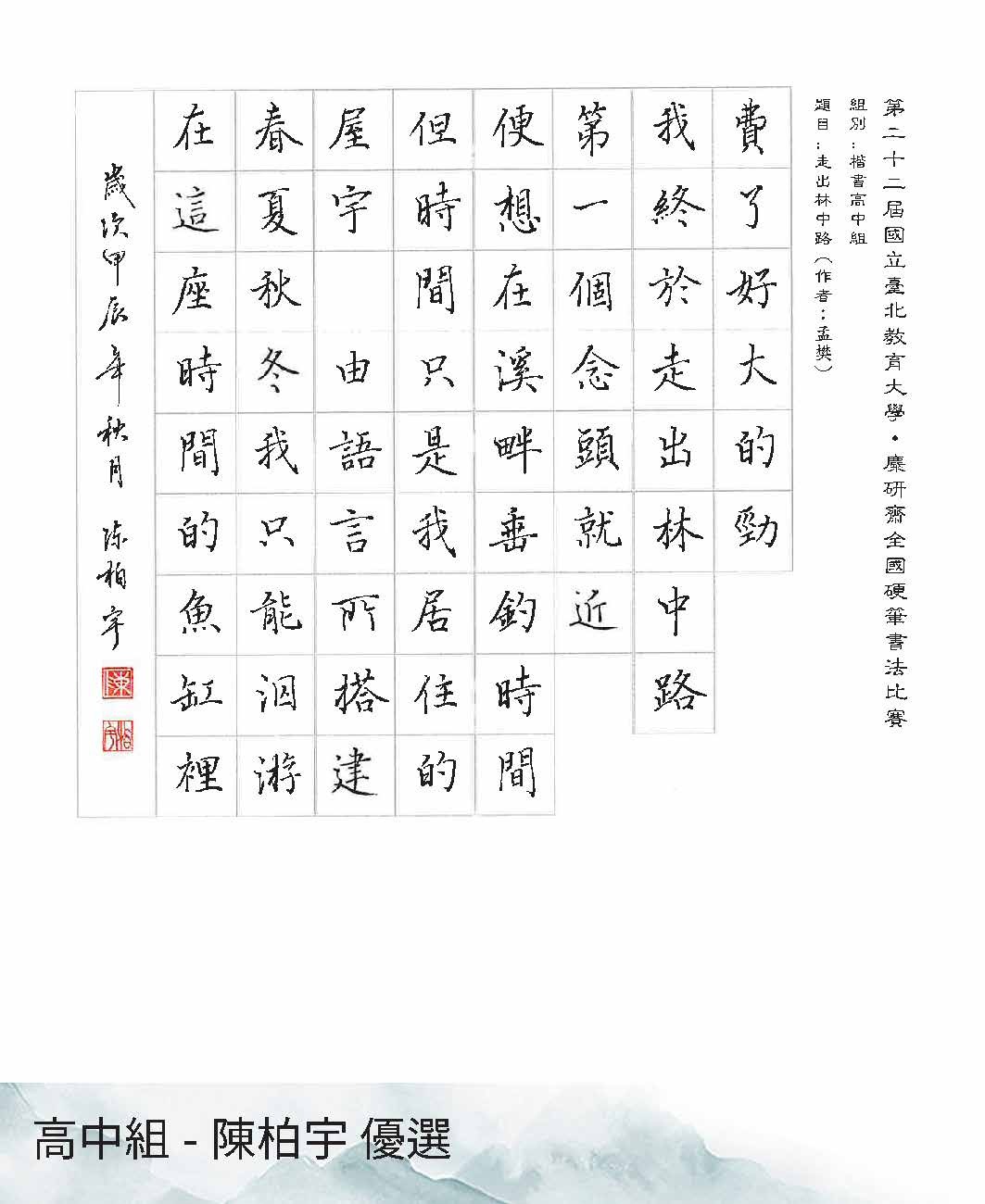高中組楷書