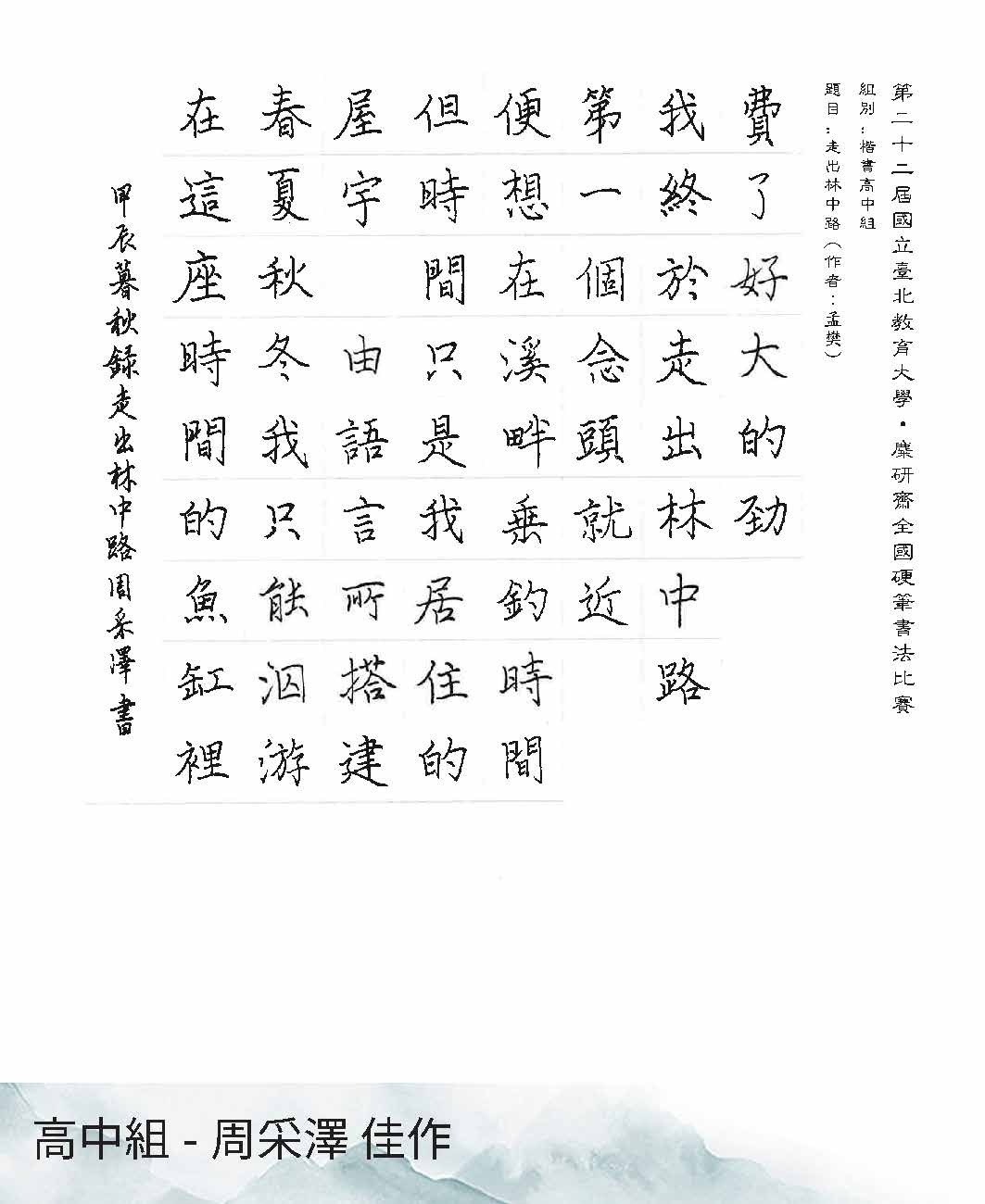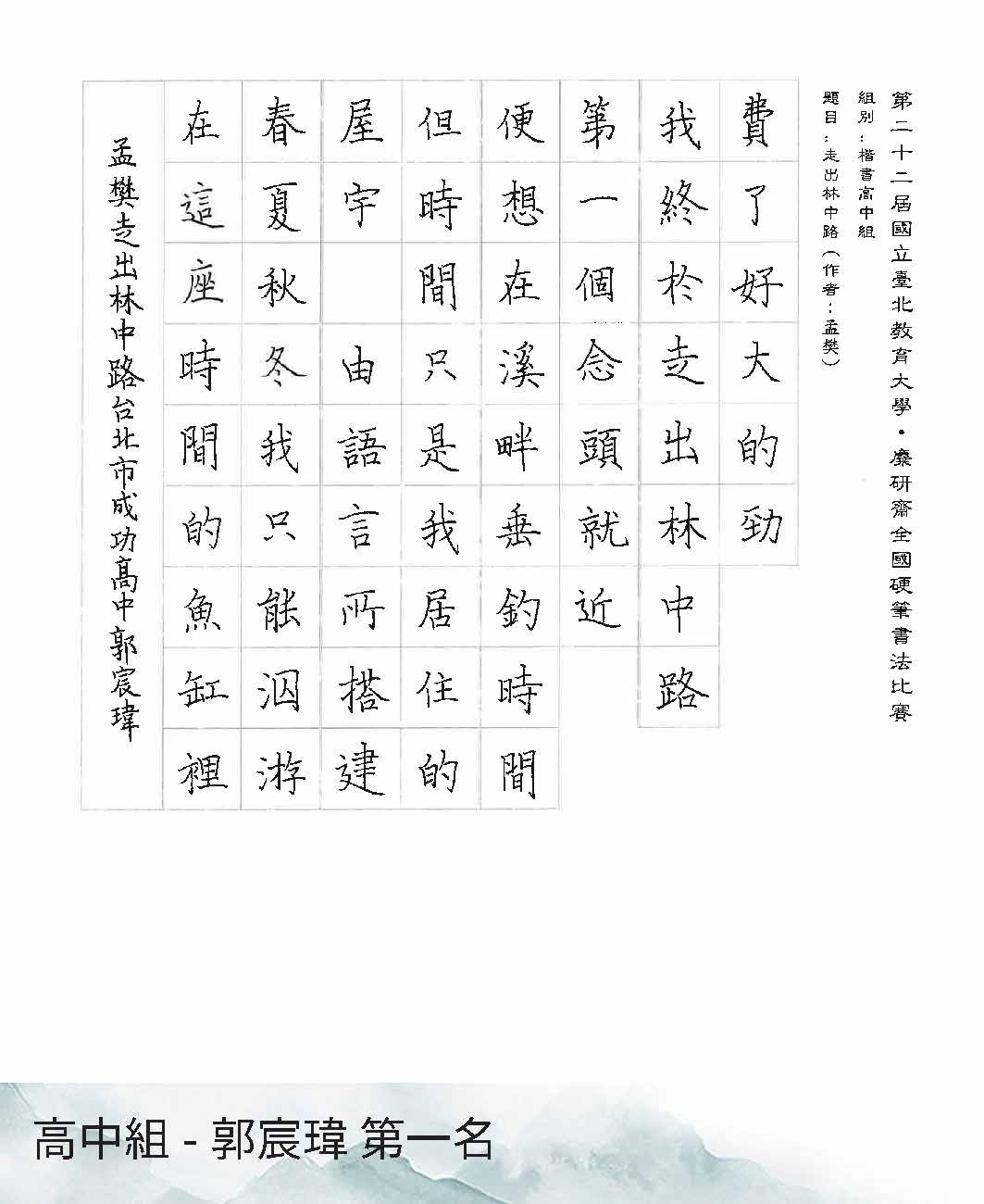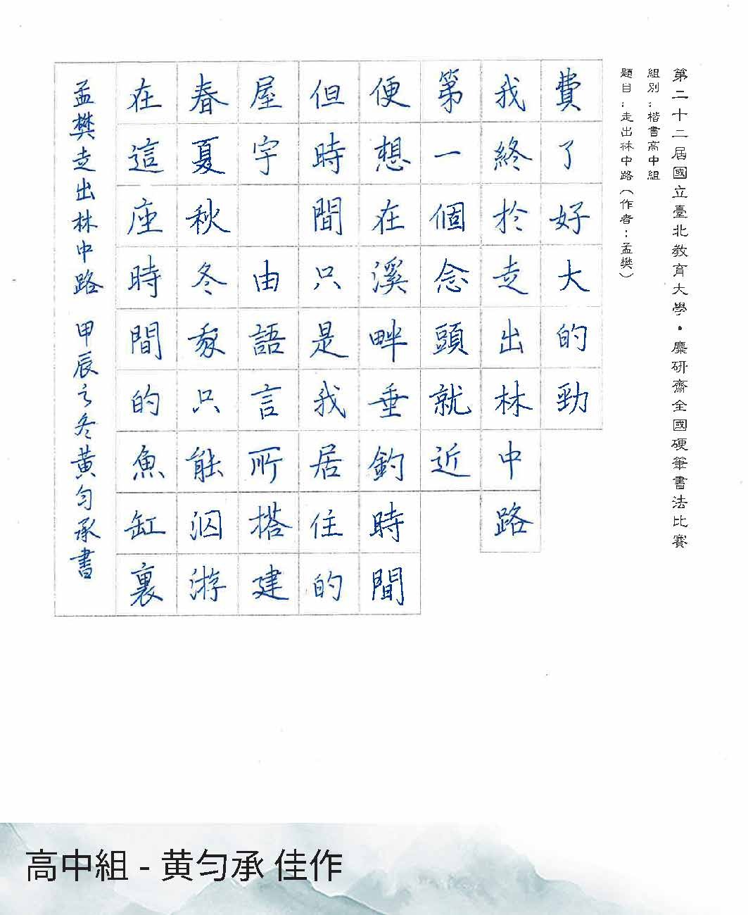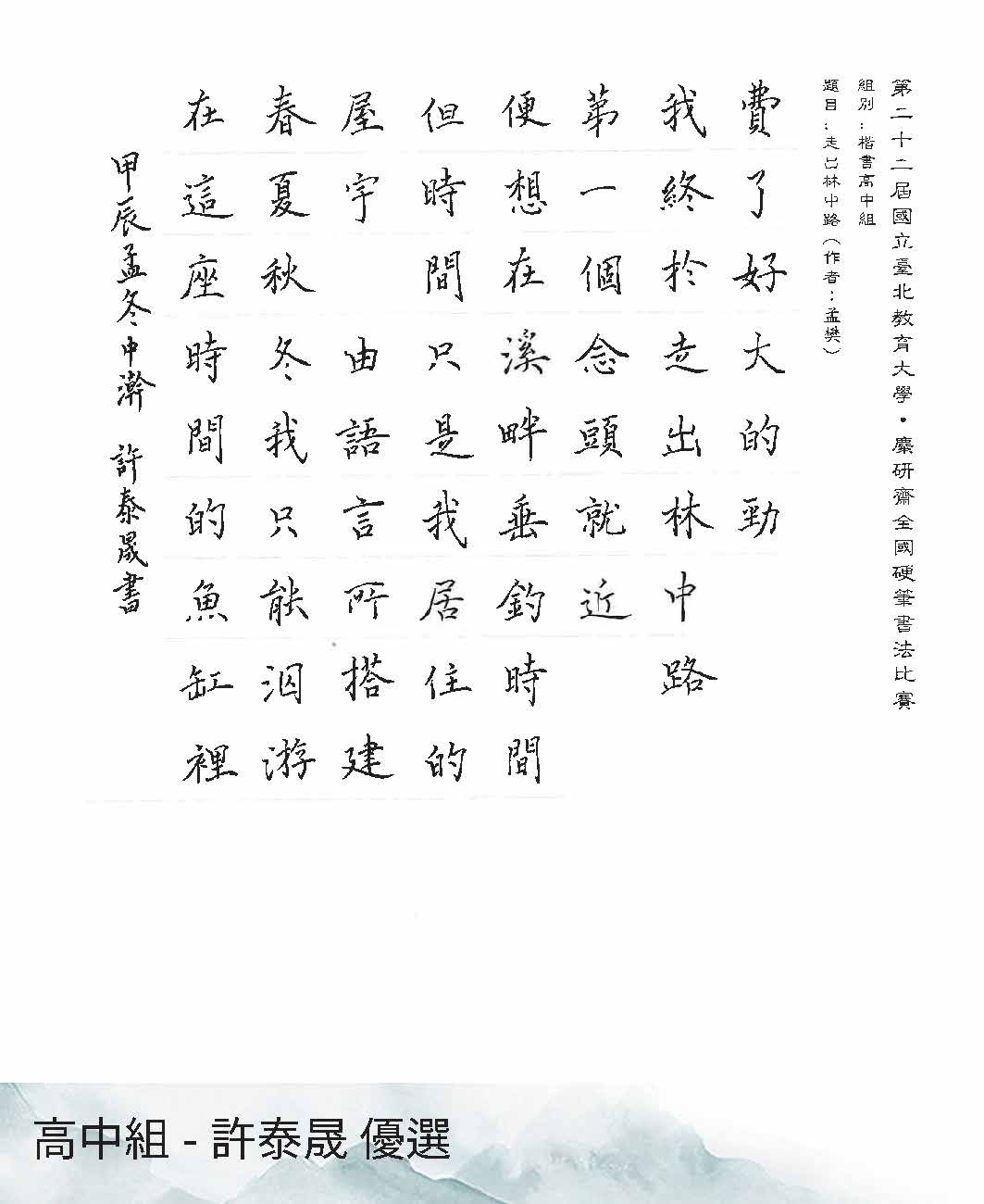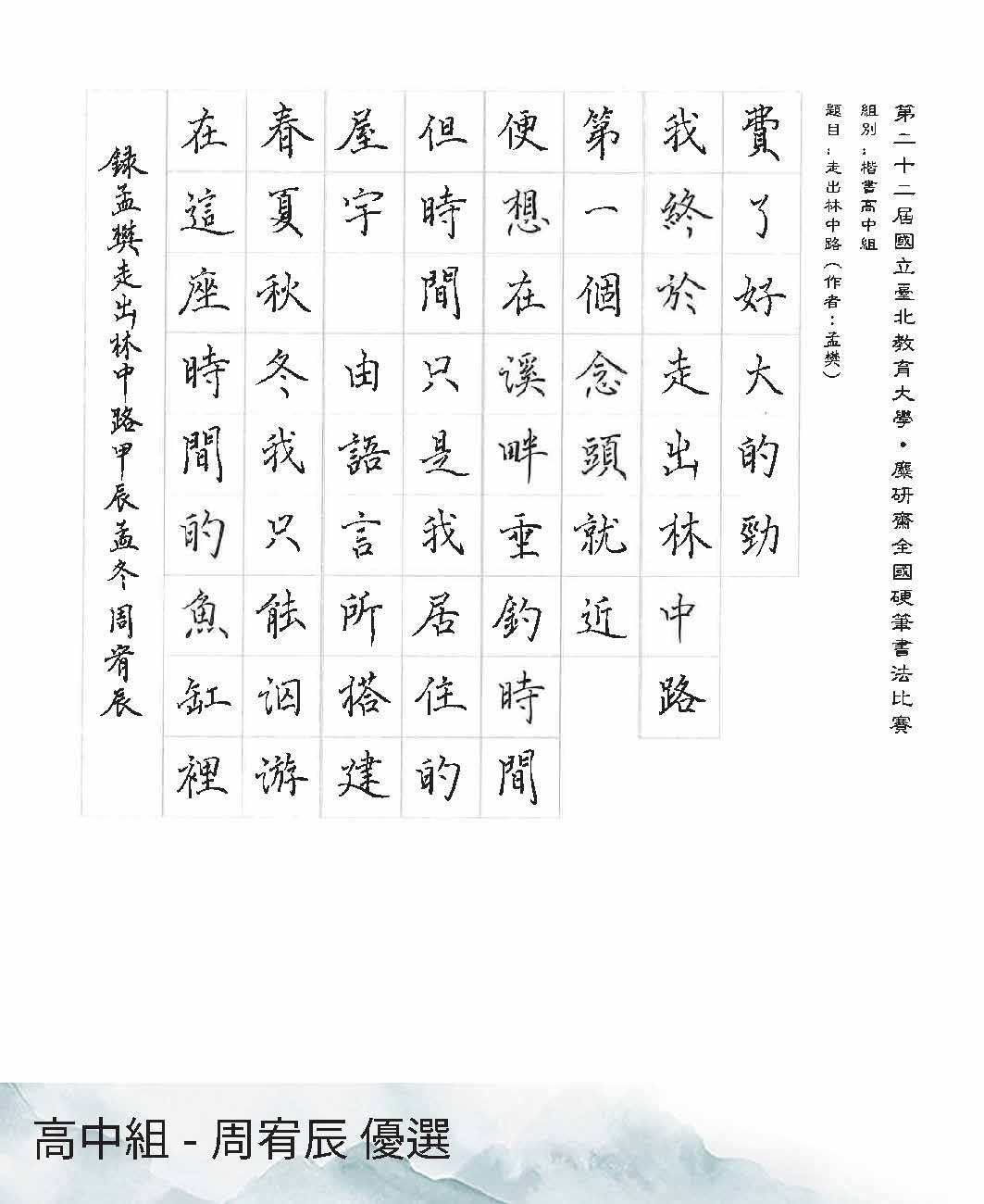 高中組楷書