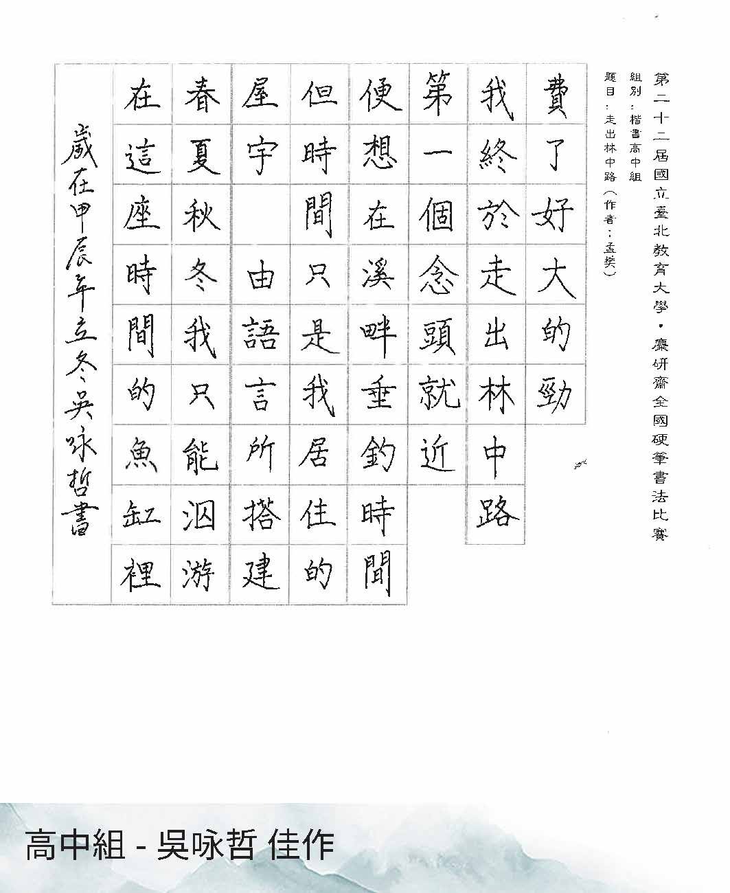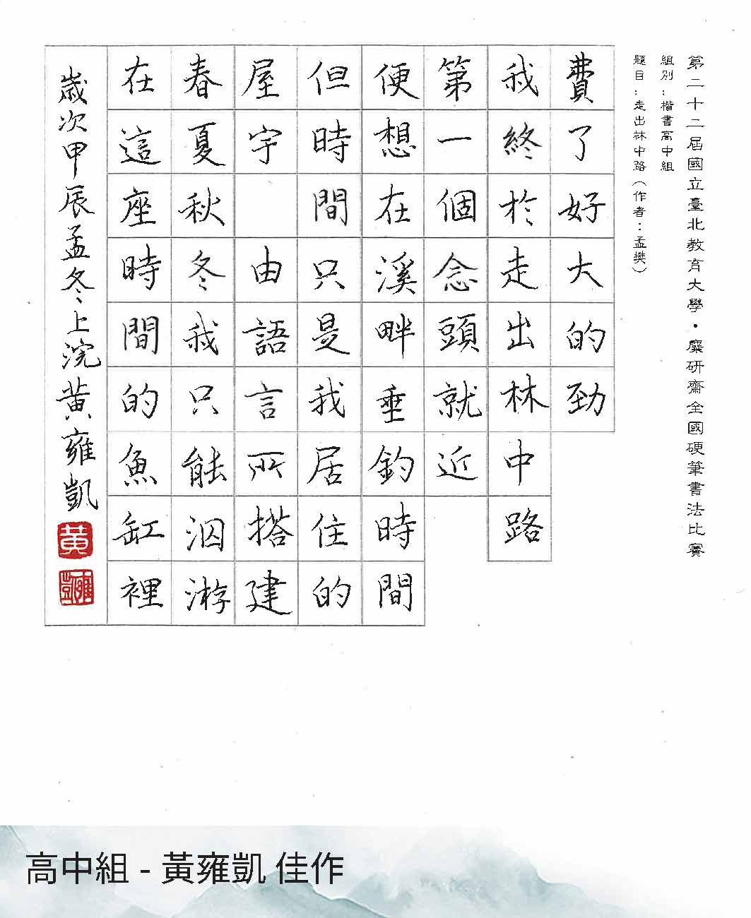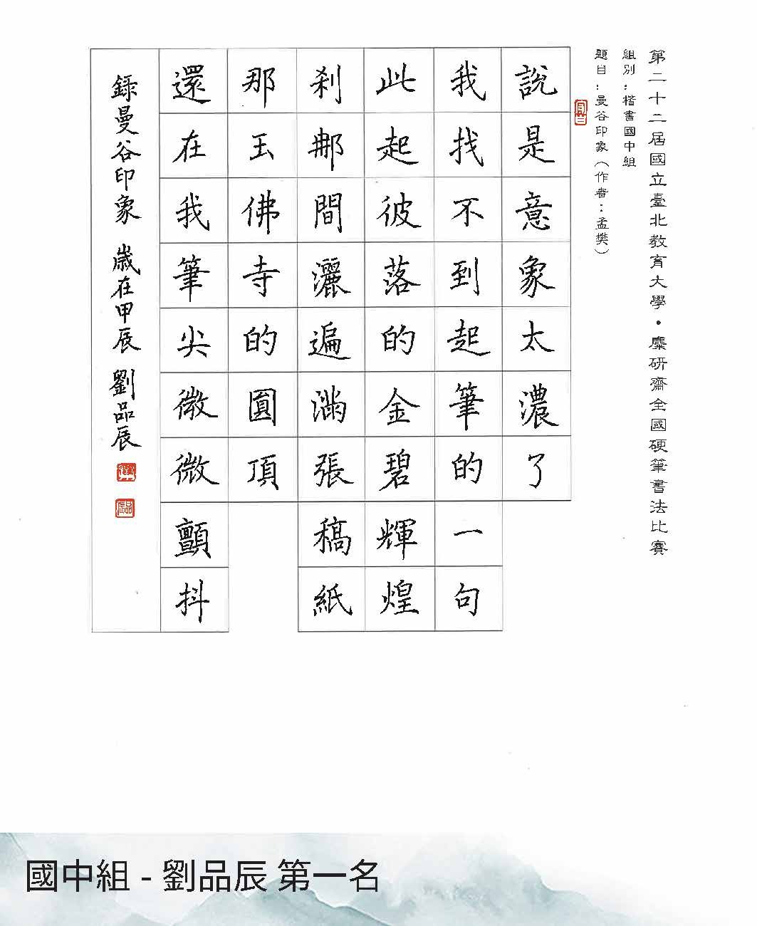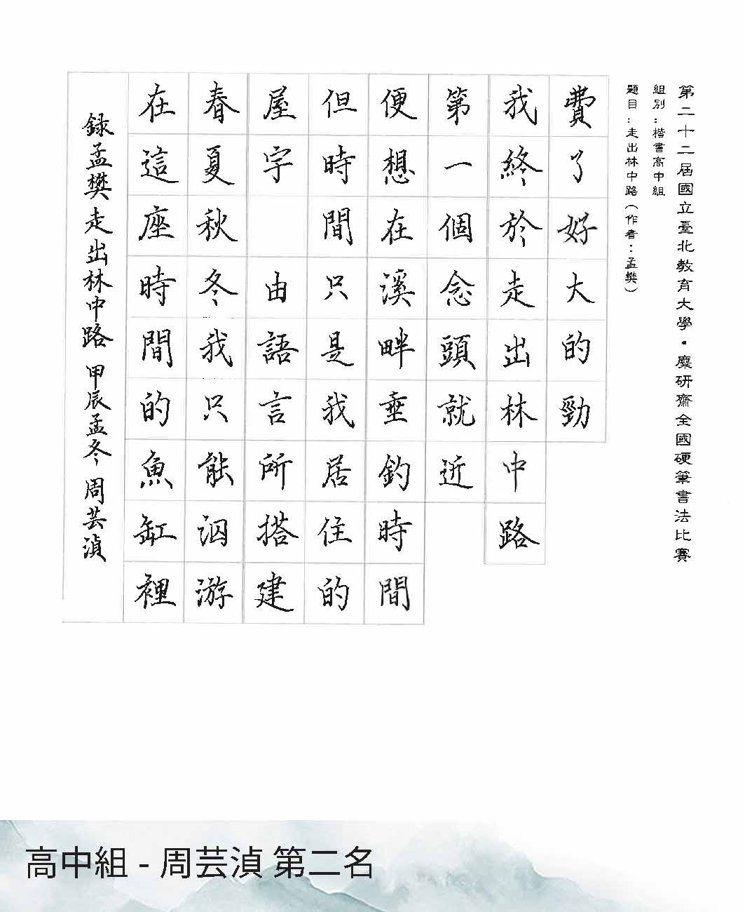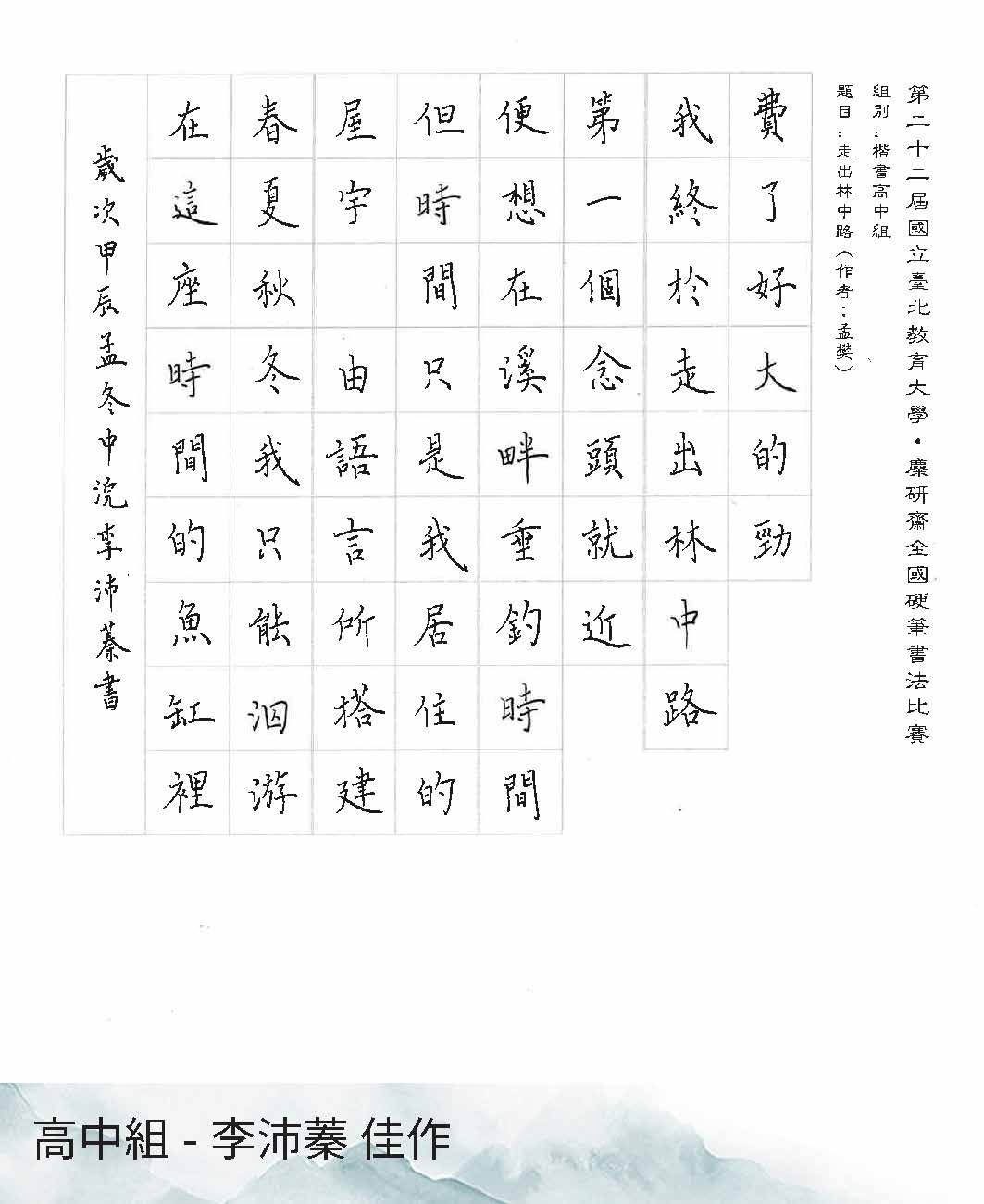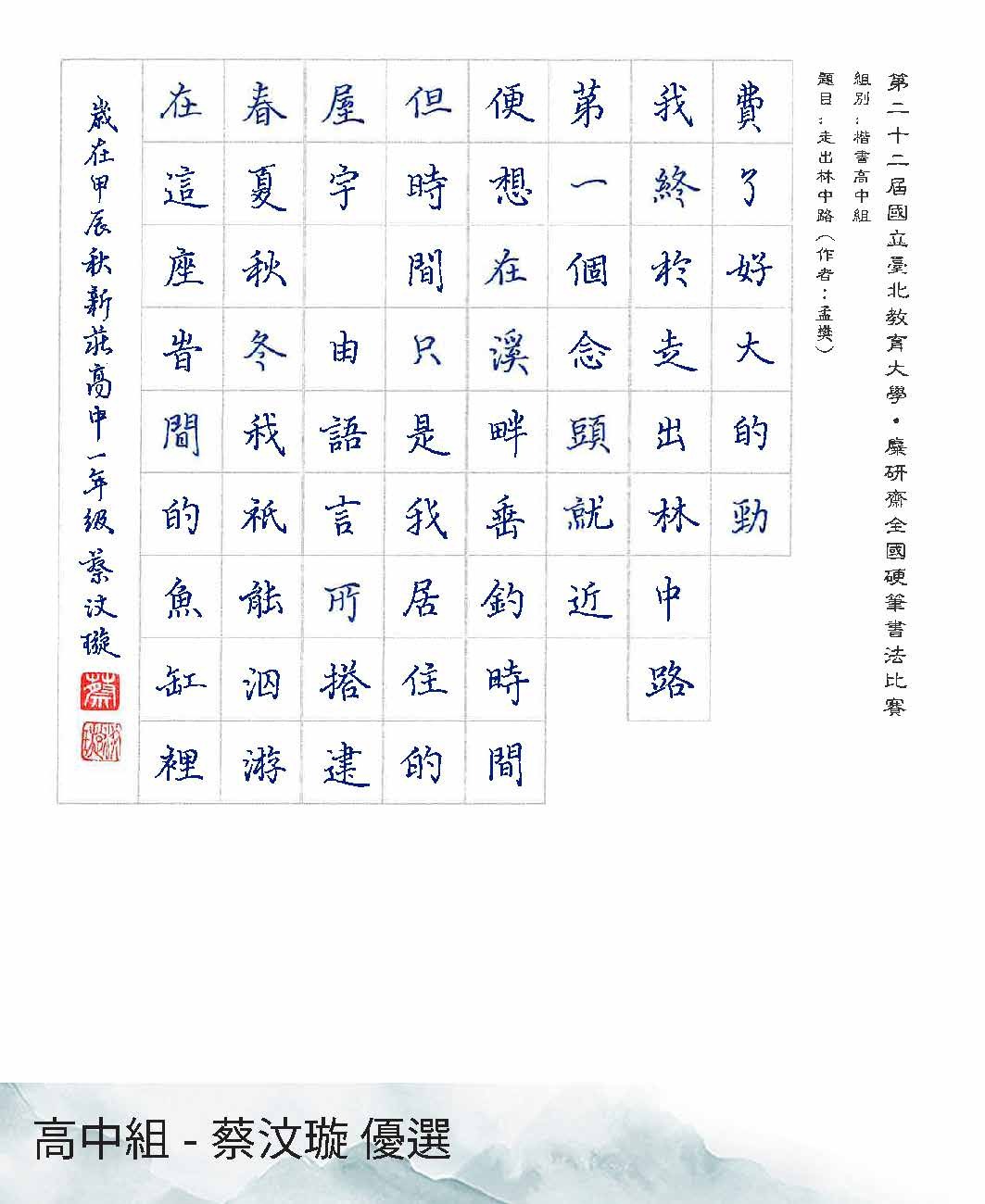 高中組楷書