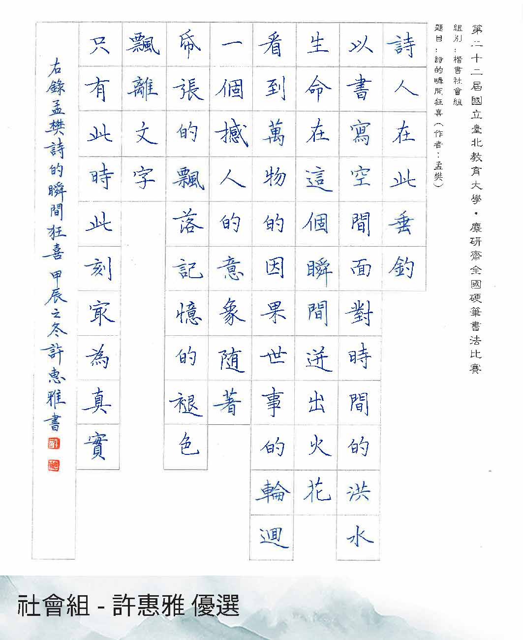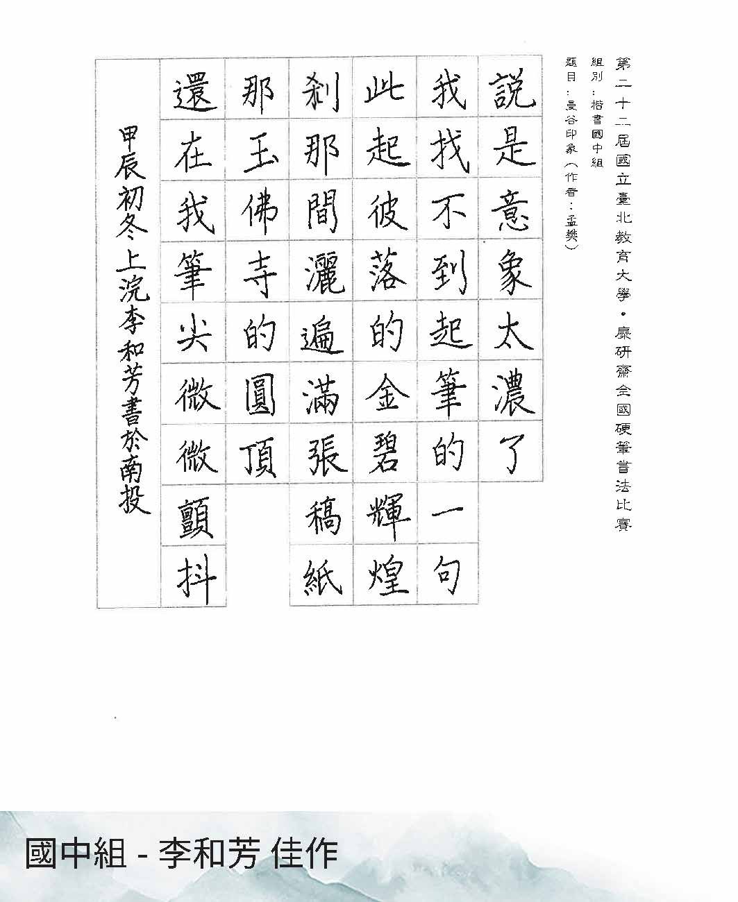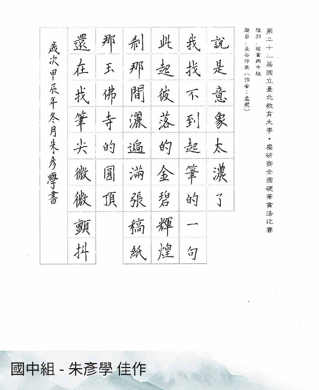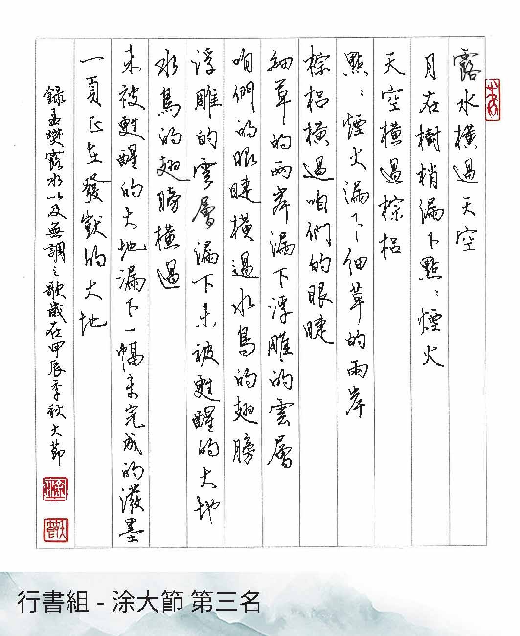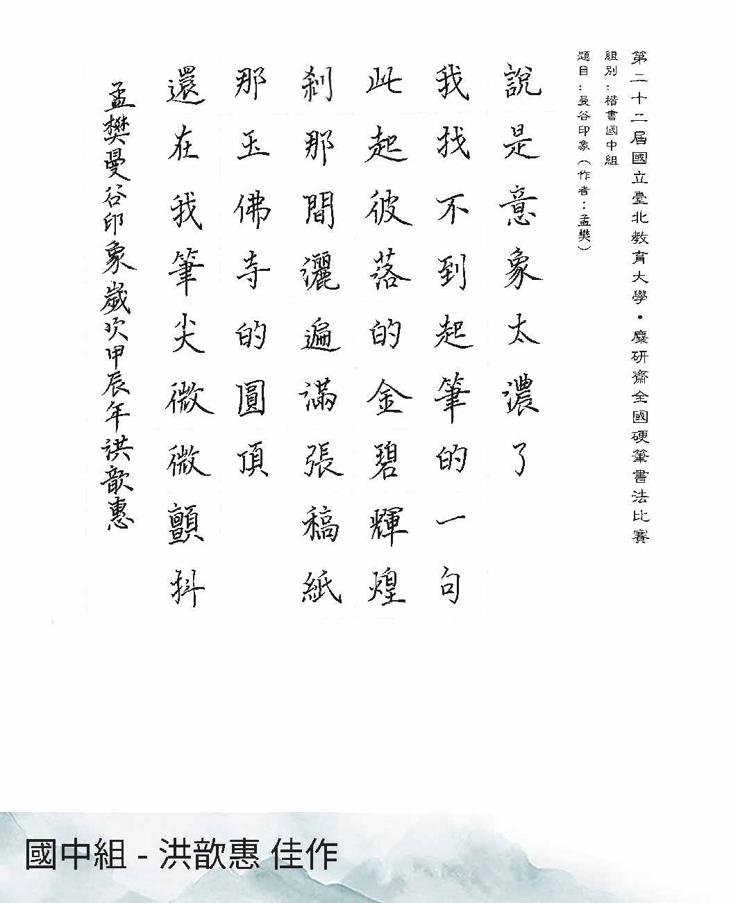 高中組楷書