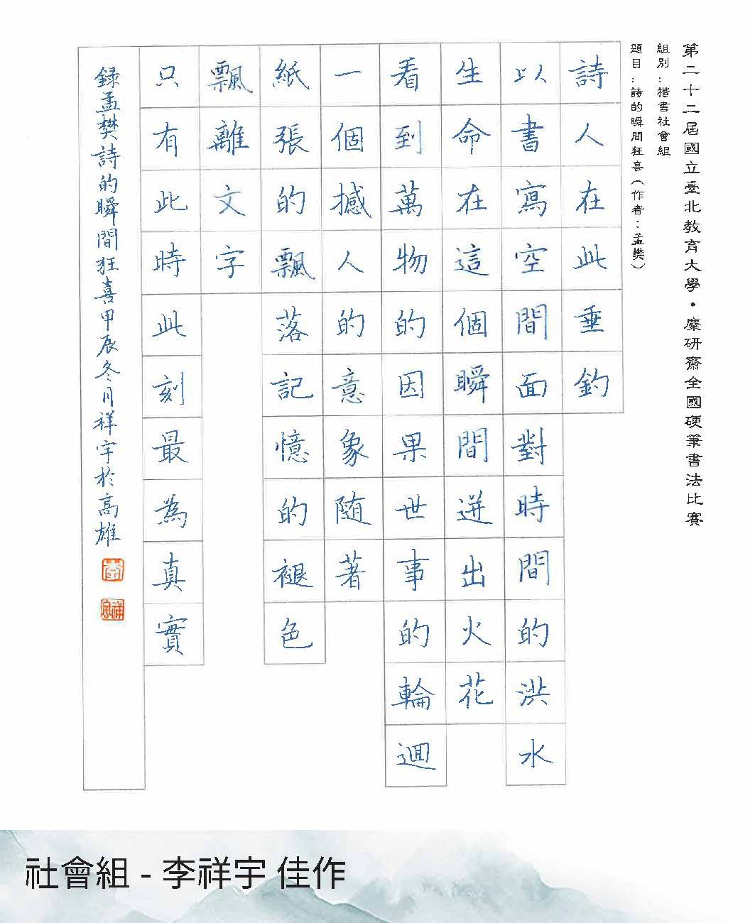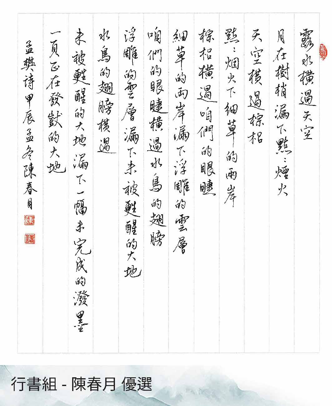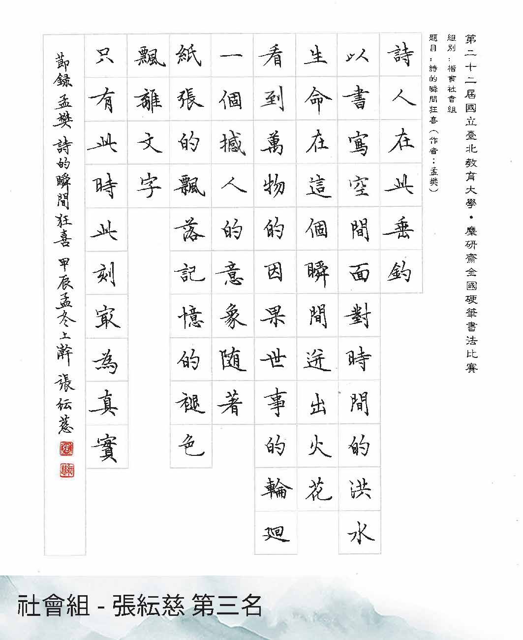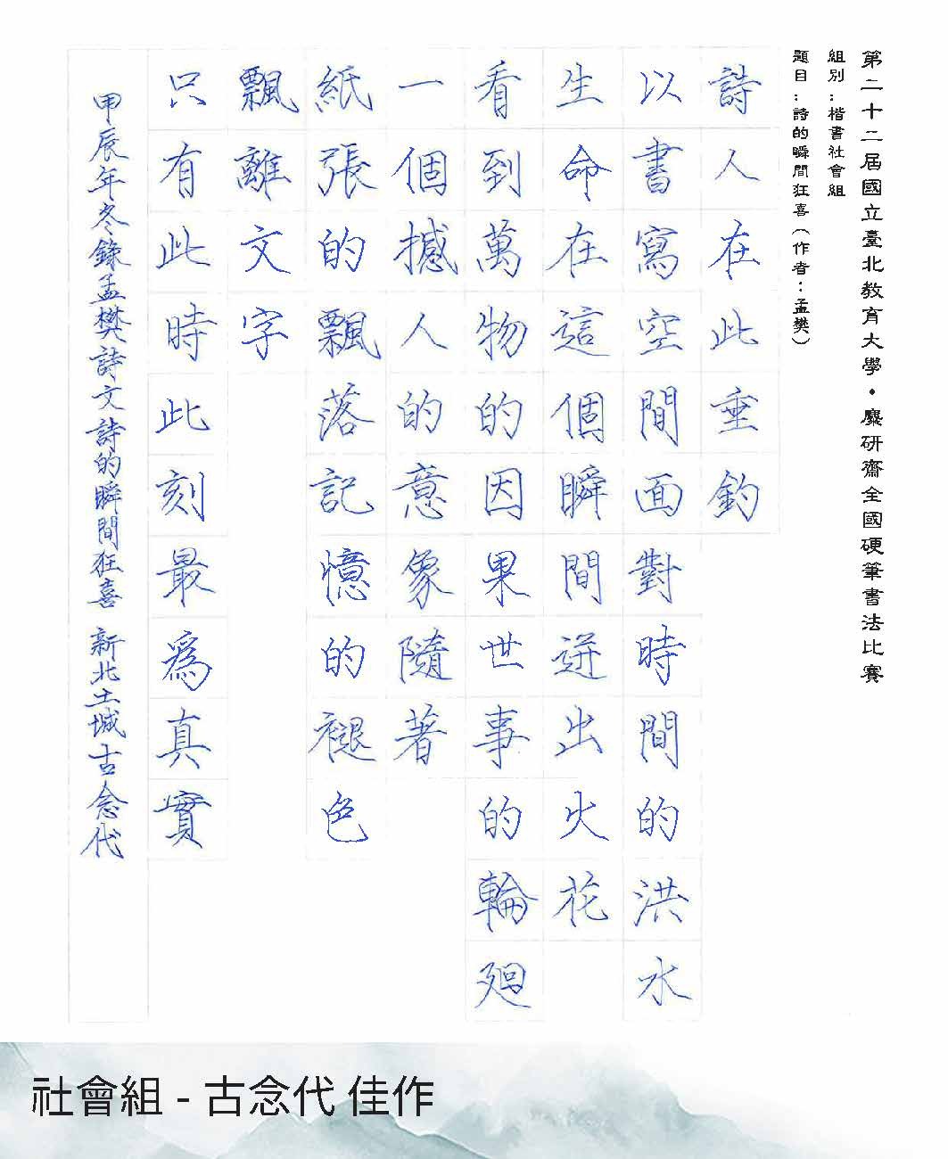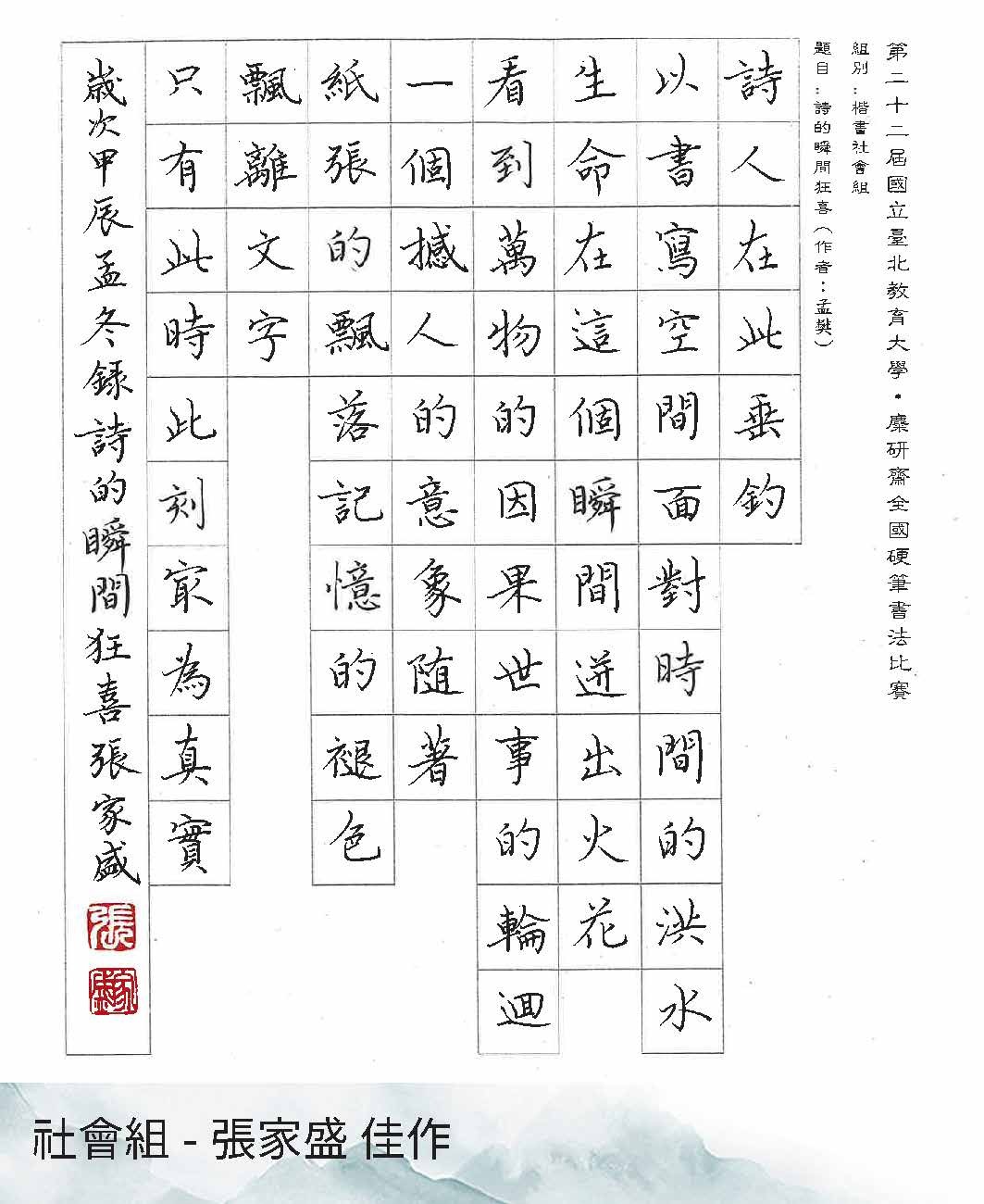 高中組楷書