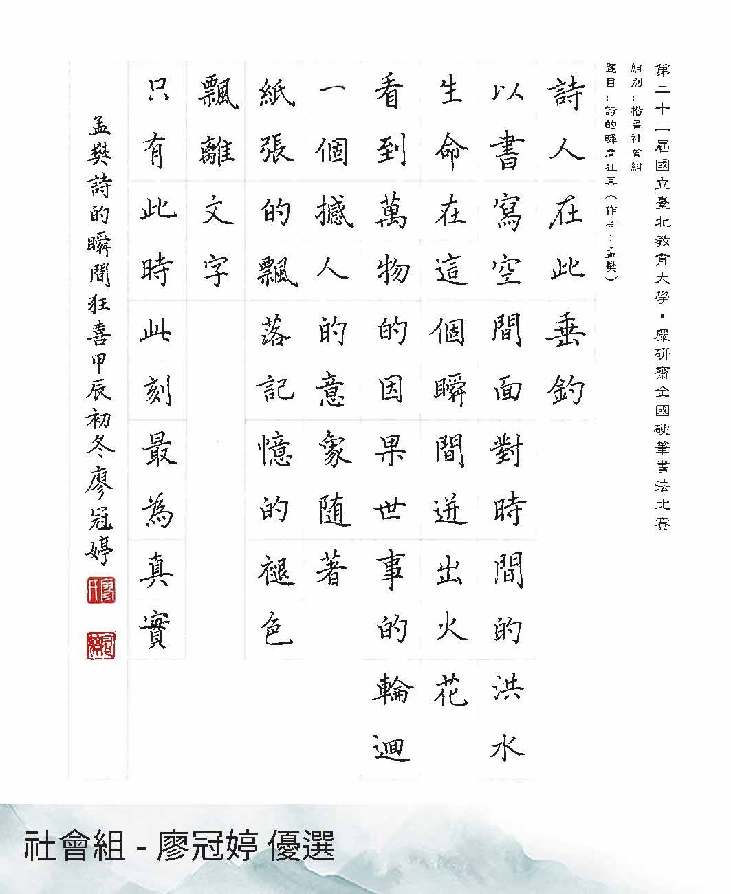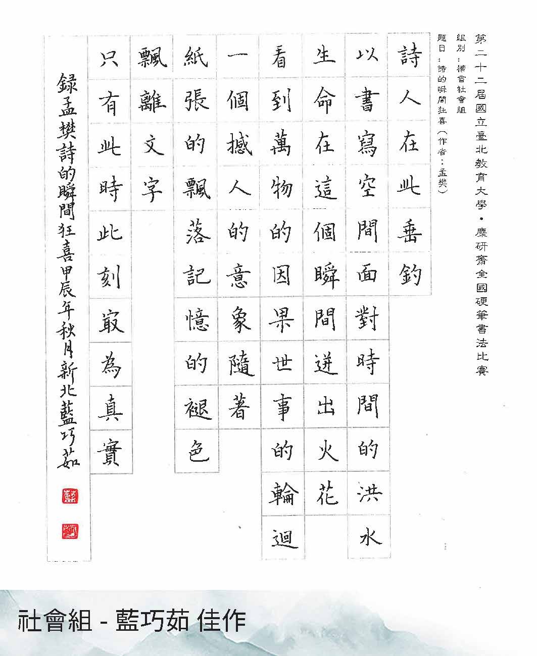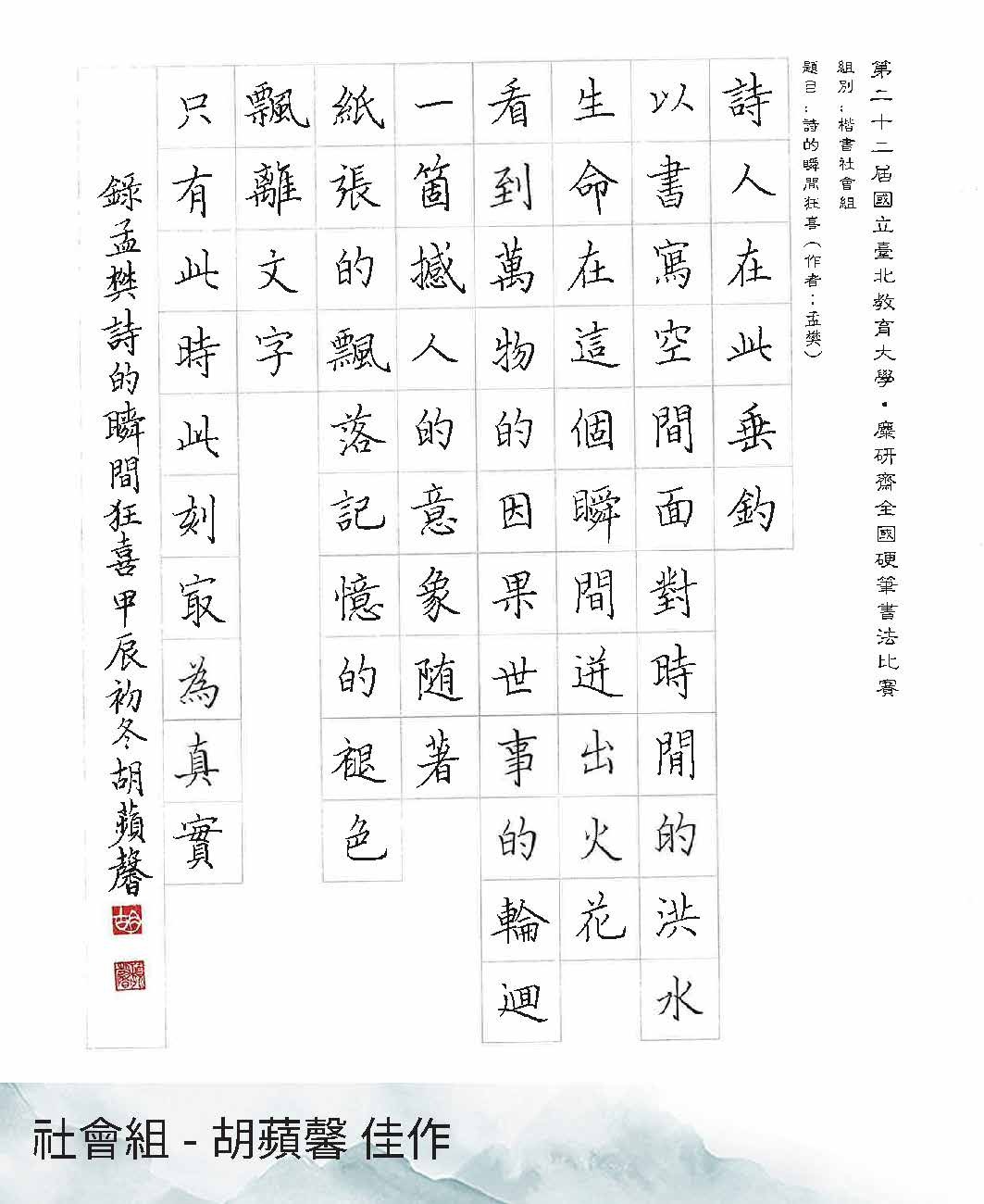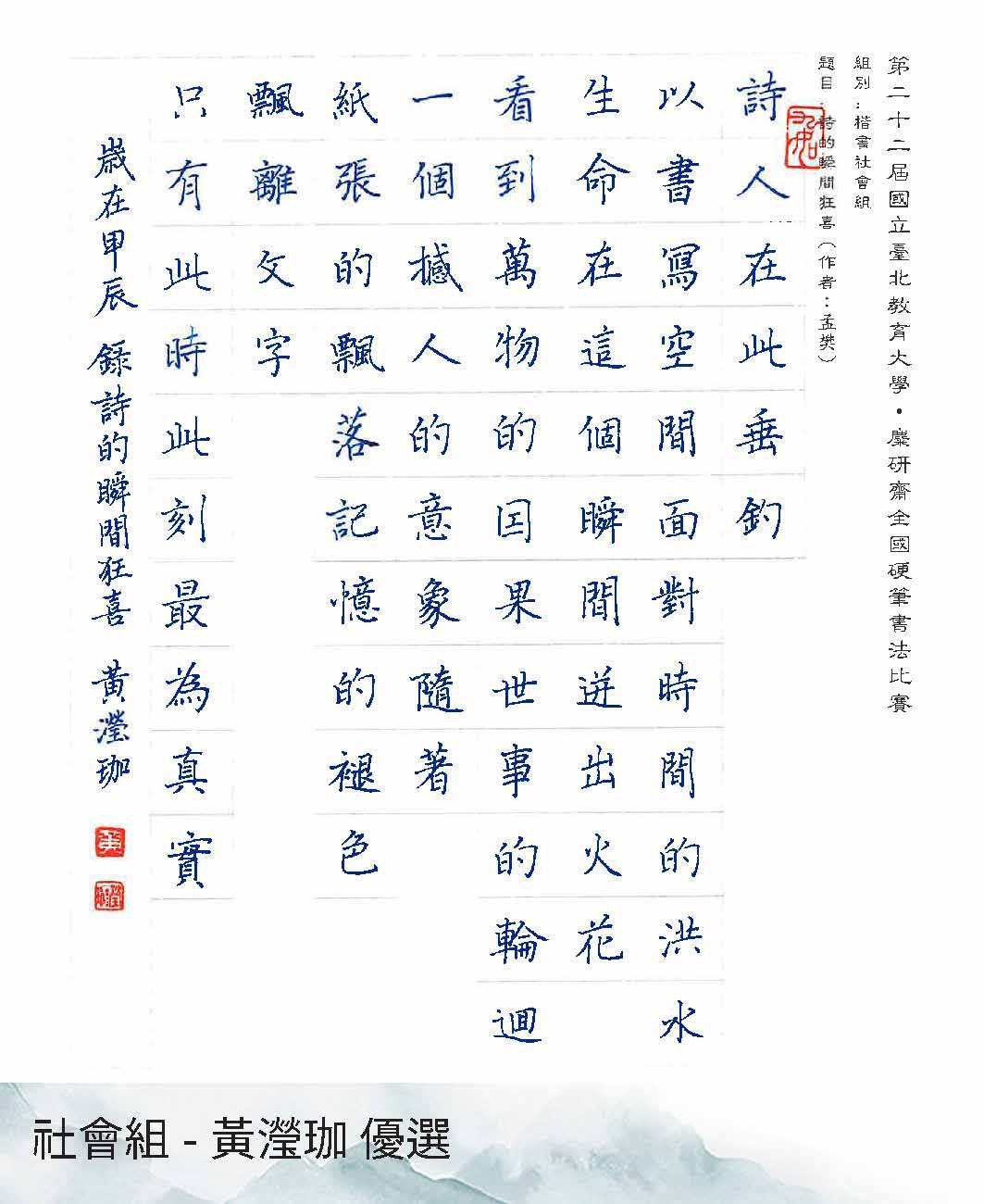第22屆硬筆書法比賽得獎作品展出