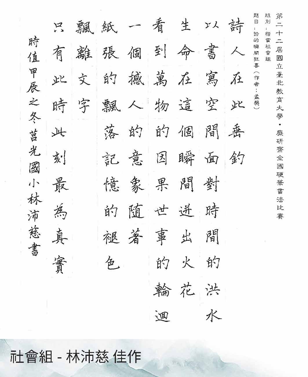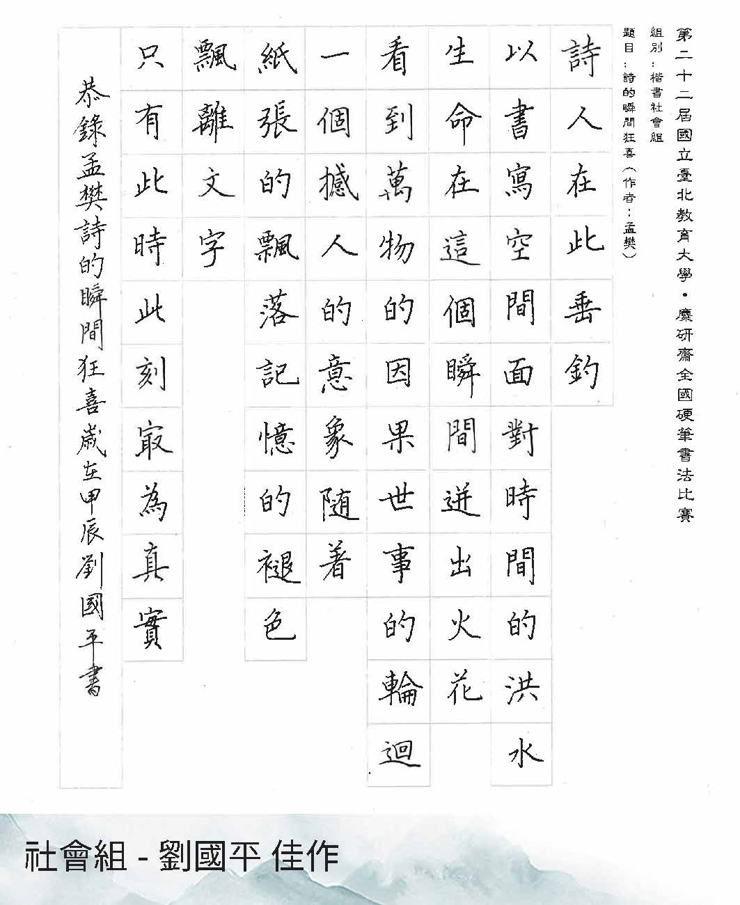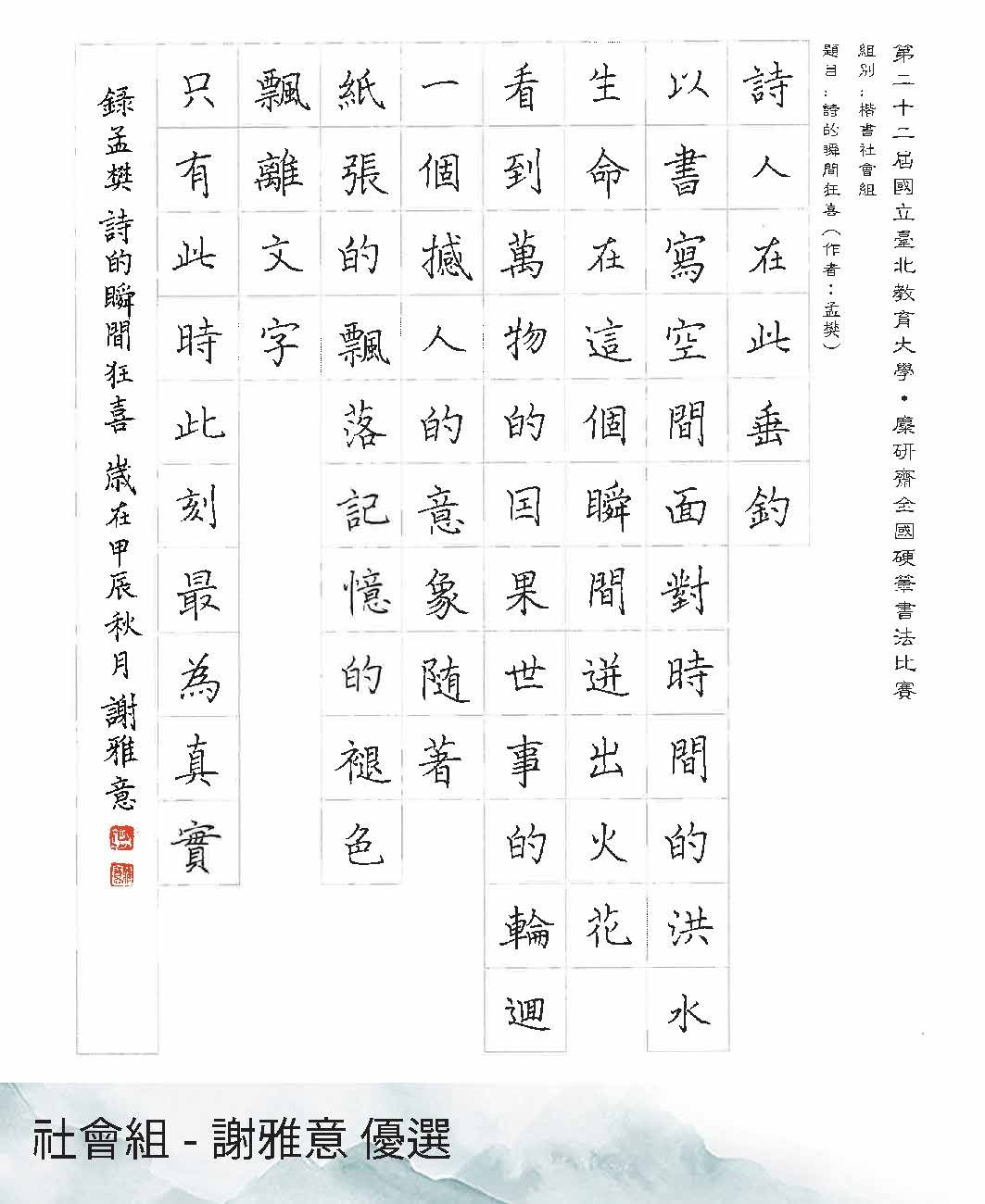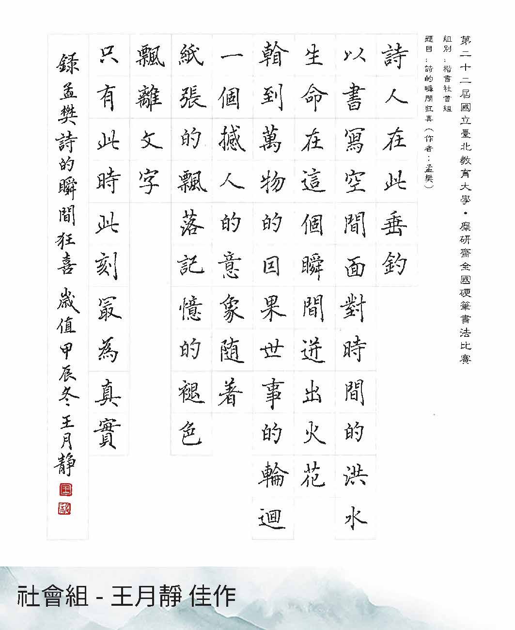 第22屆硬筆書法比賽得獎作品展出