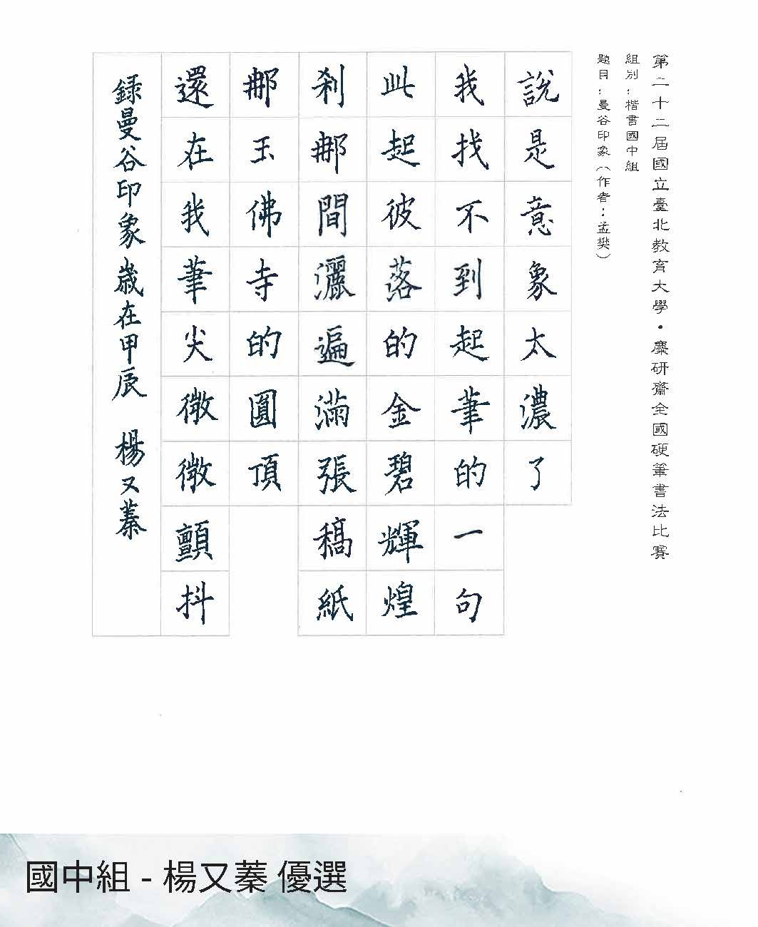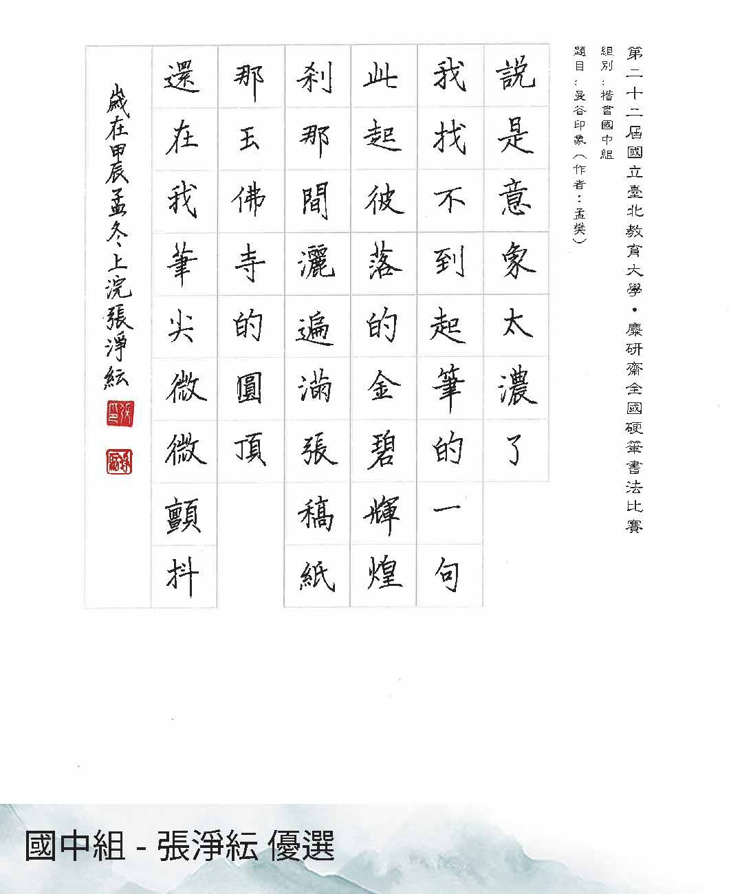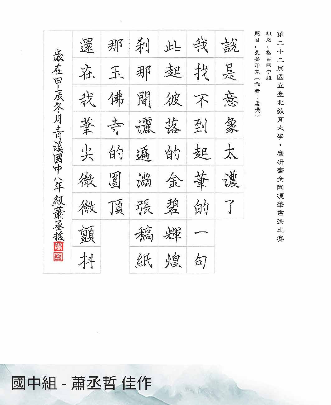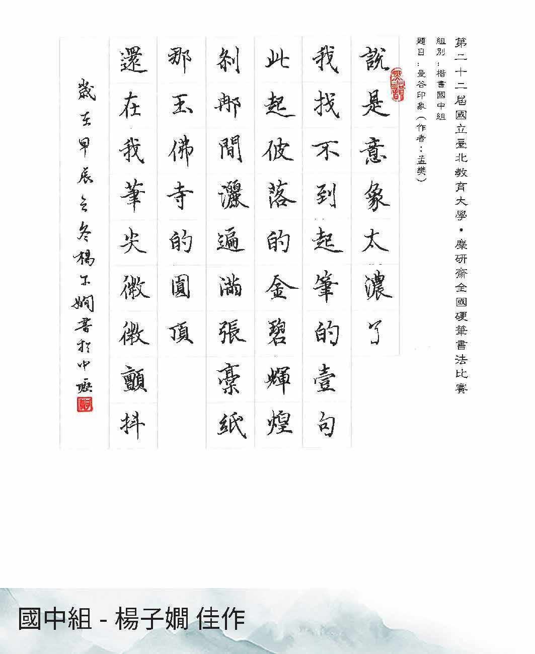 國中組楷書