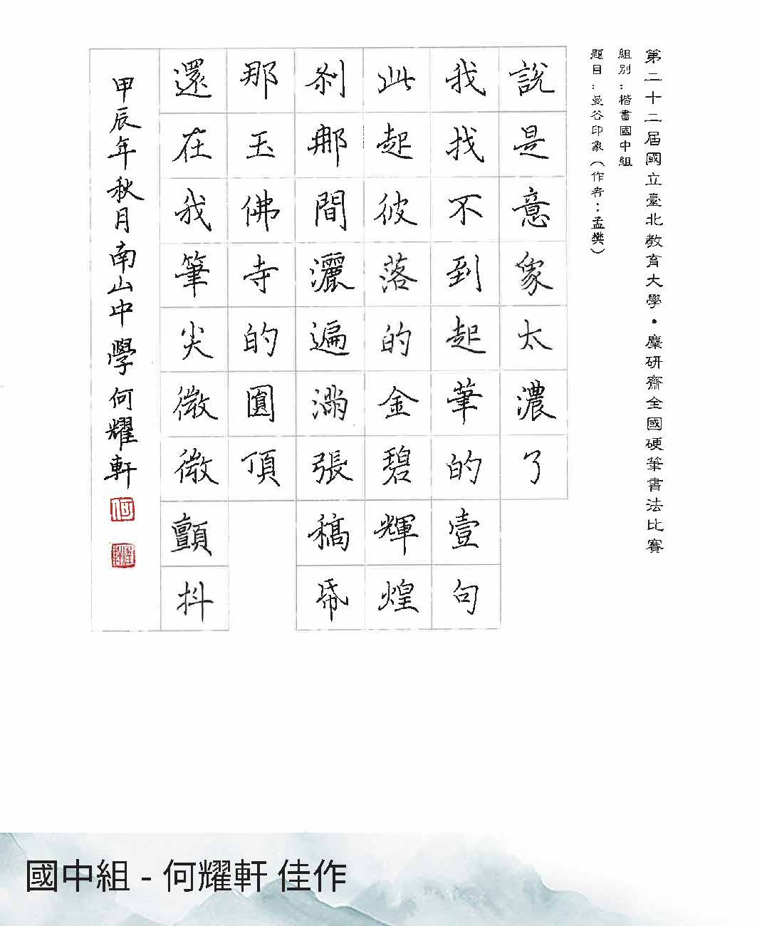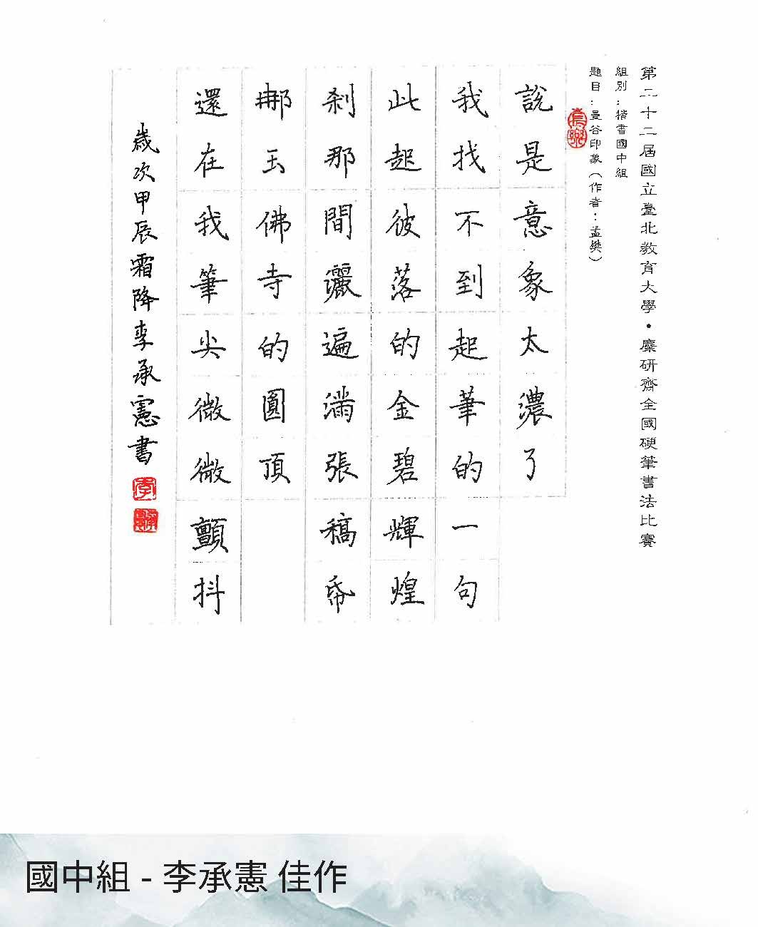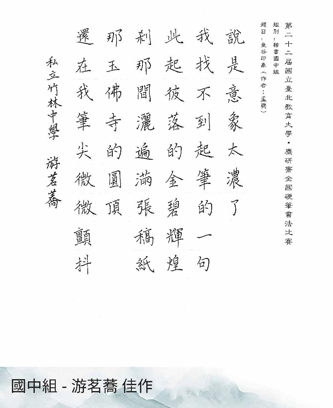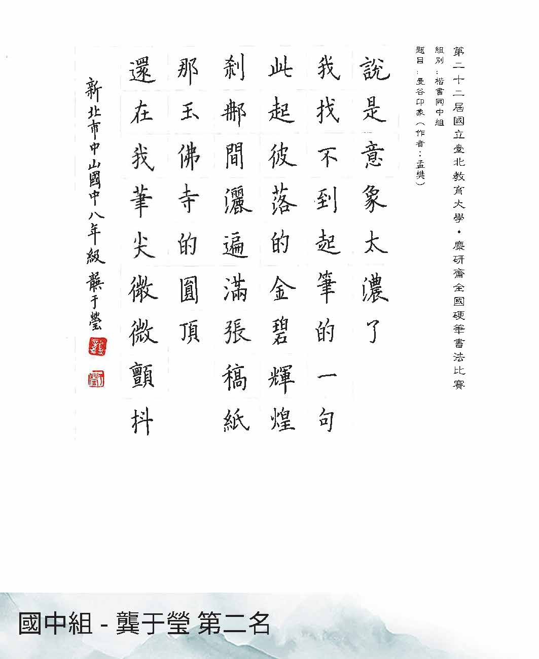 國中組楷書