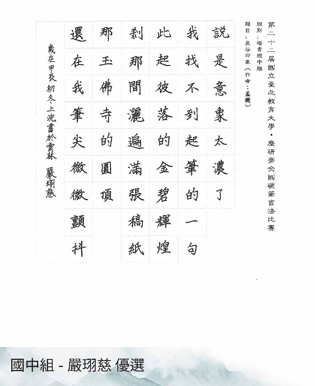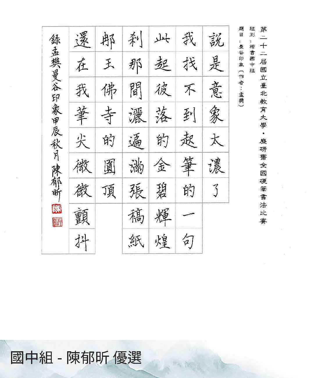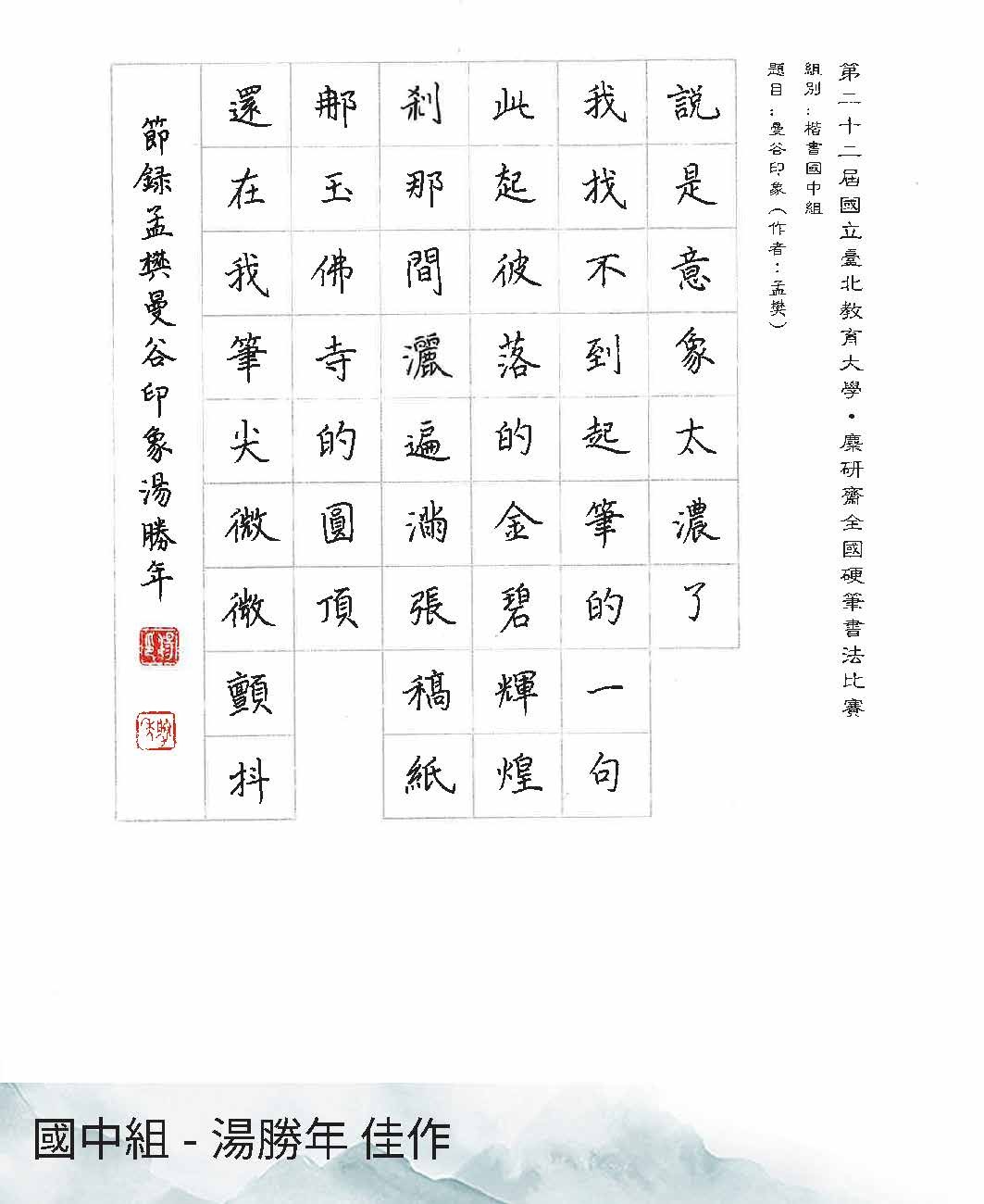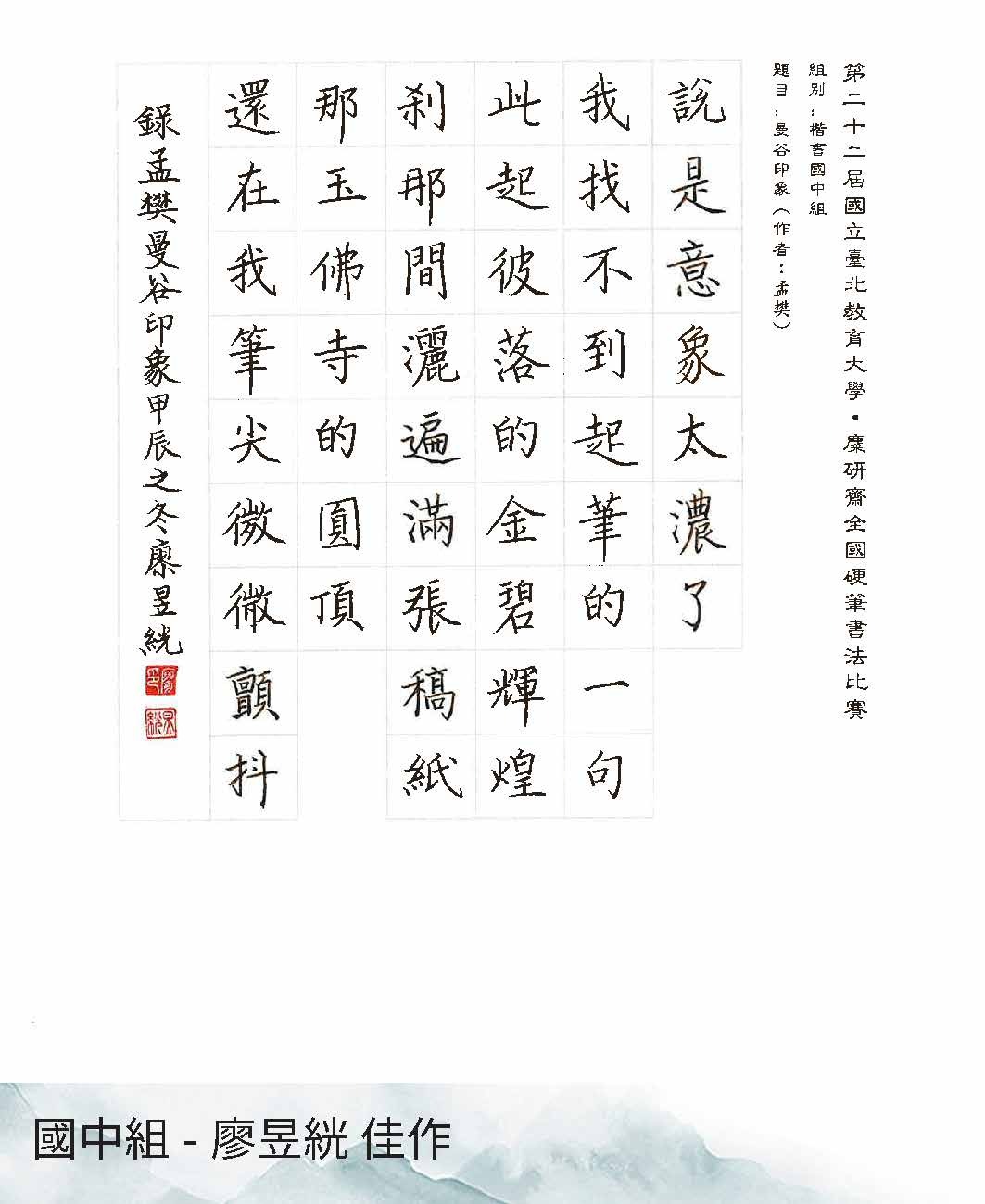 國中組楷書