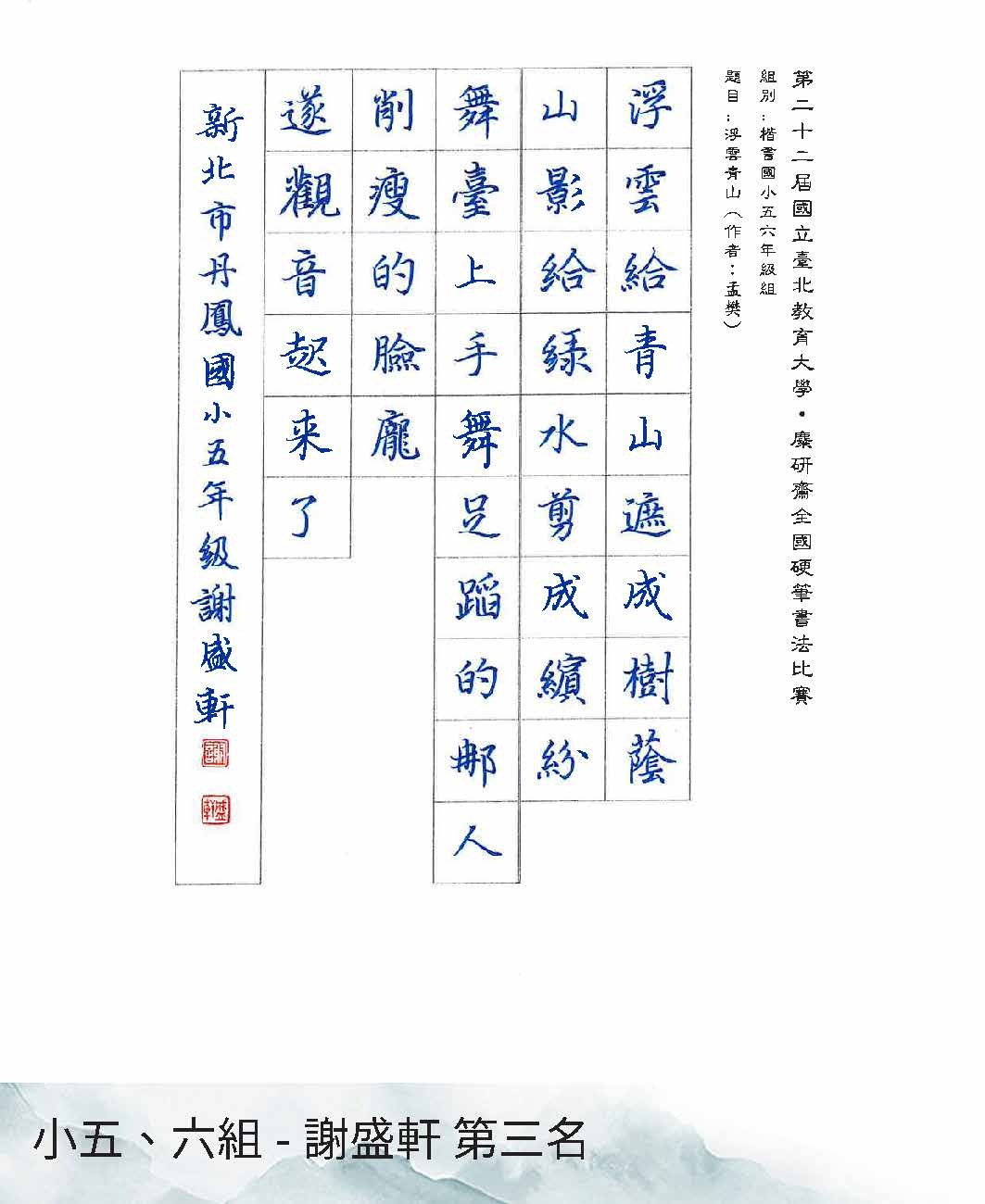 國小三年級組楷書