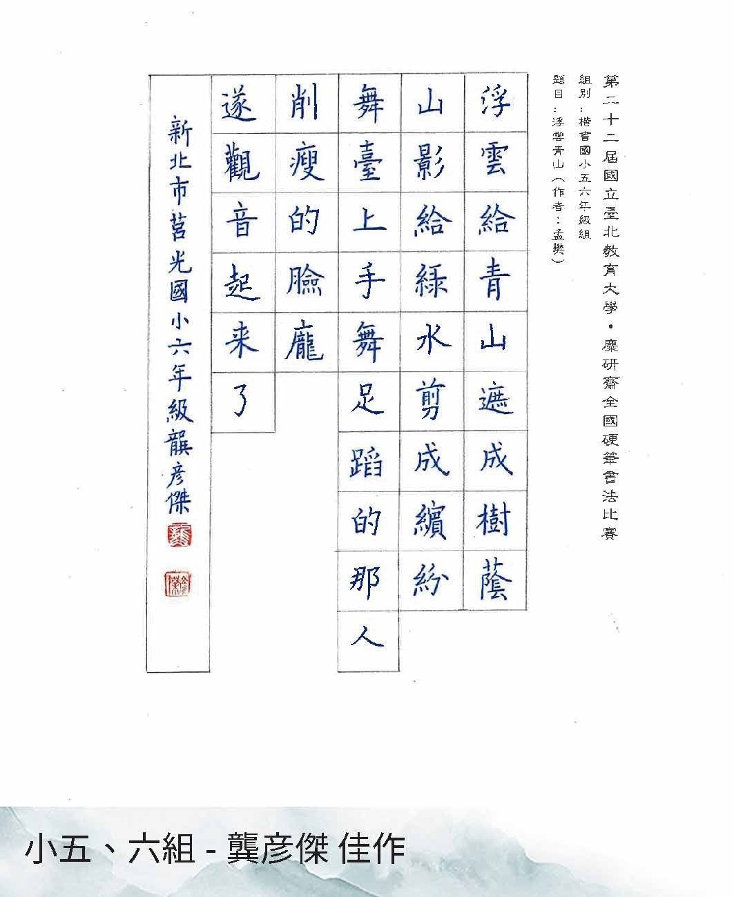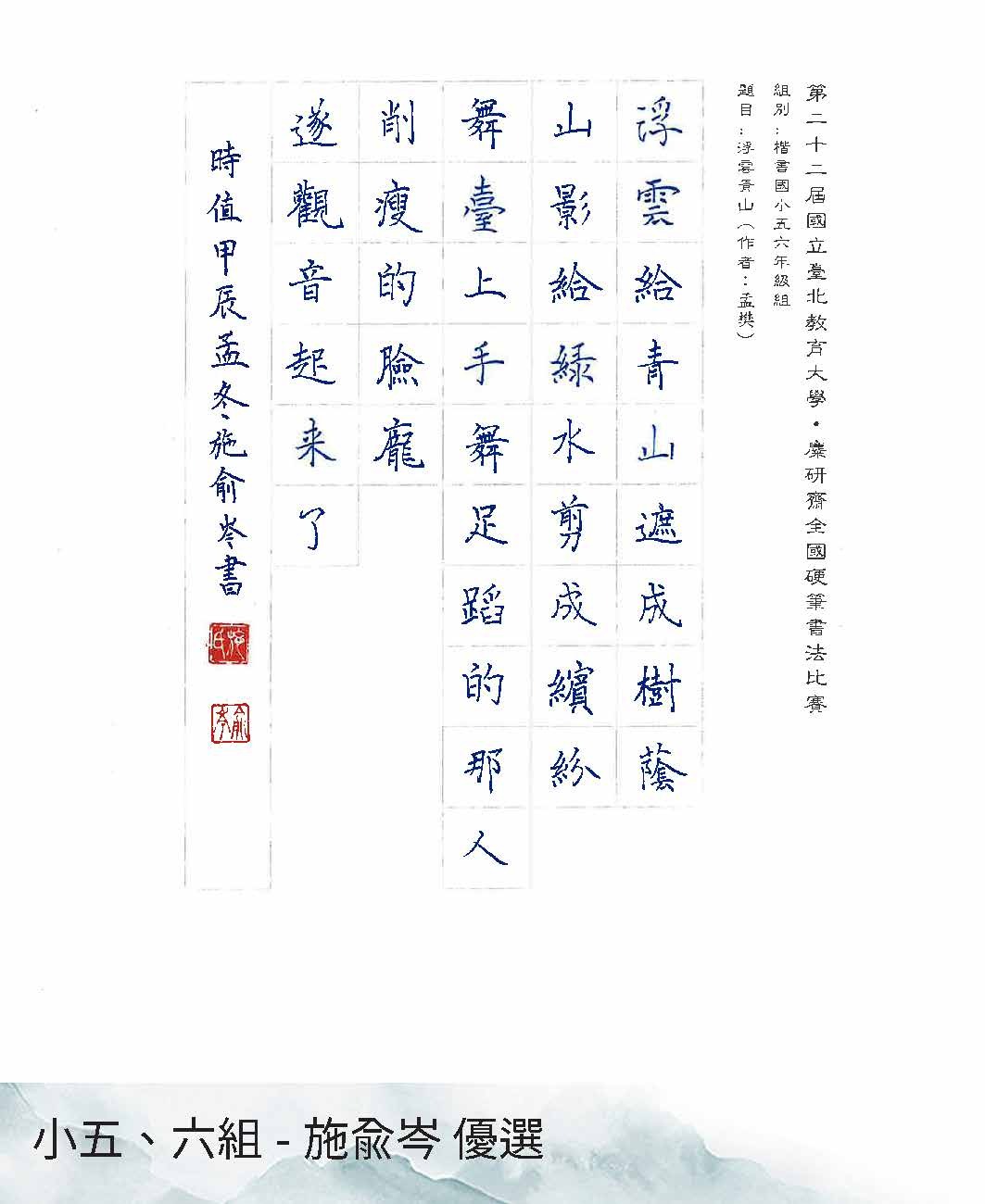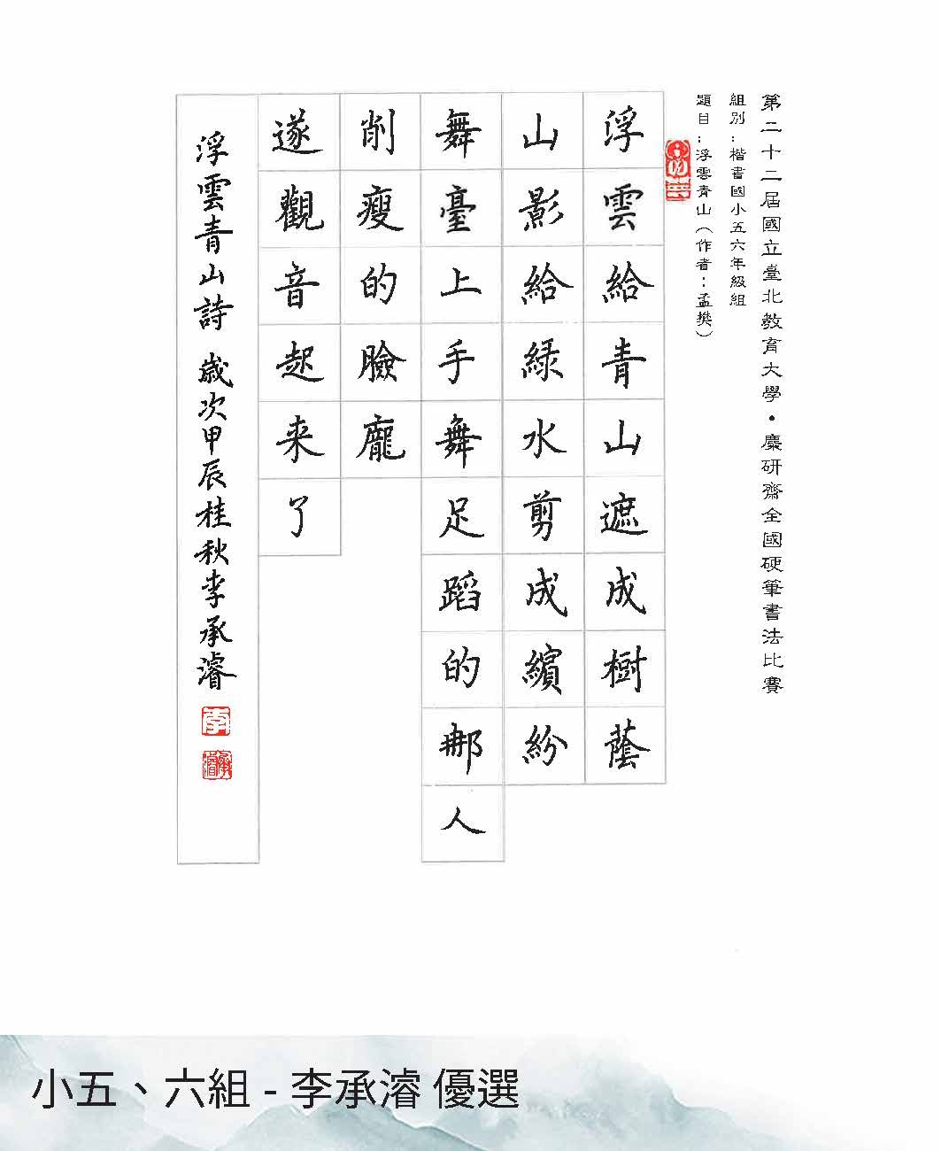 國小五、六年級組楷書