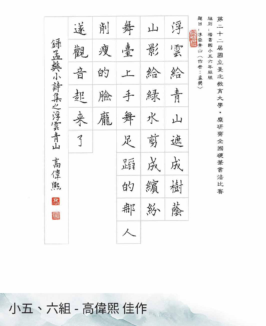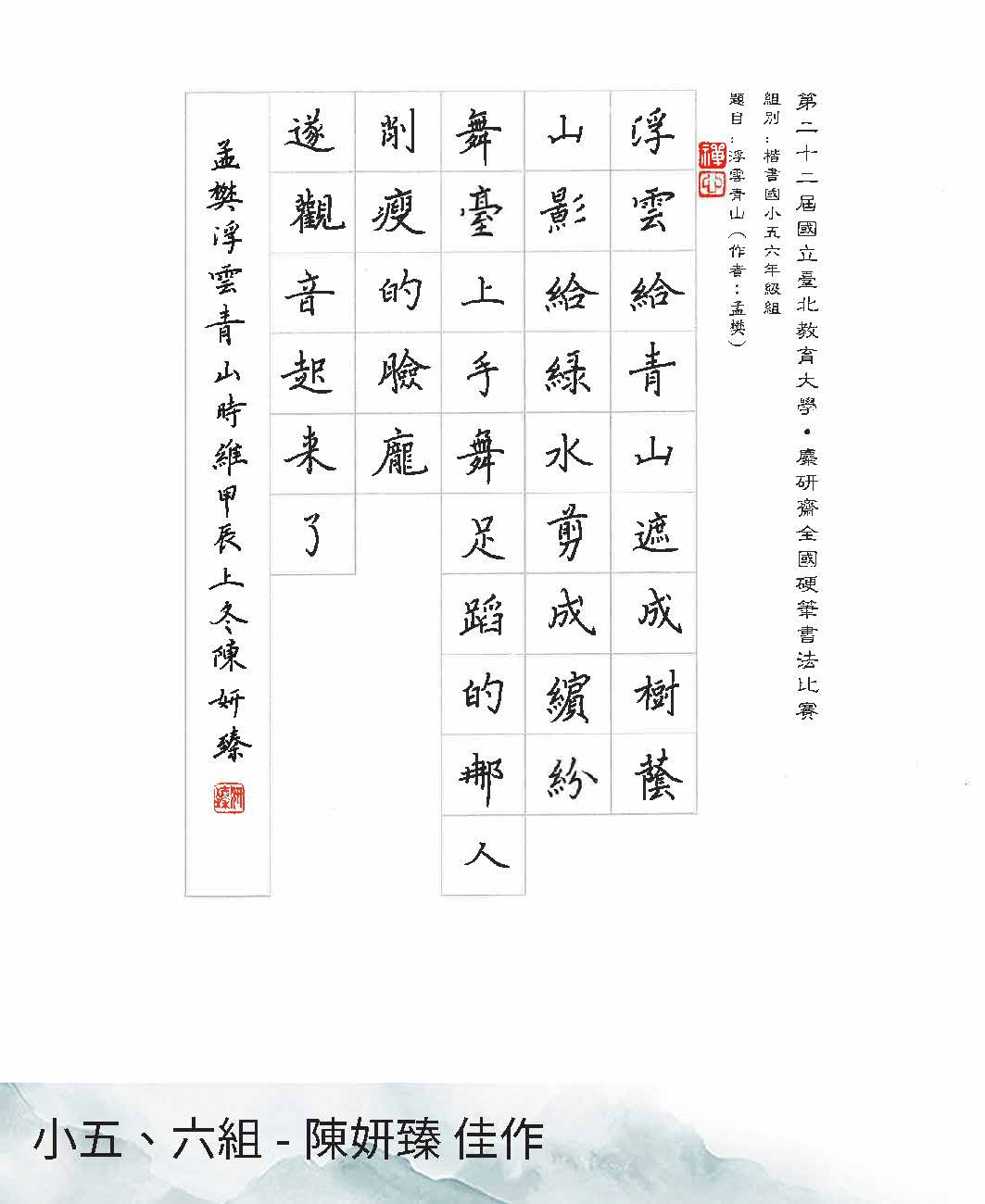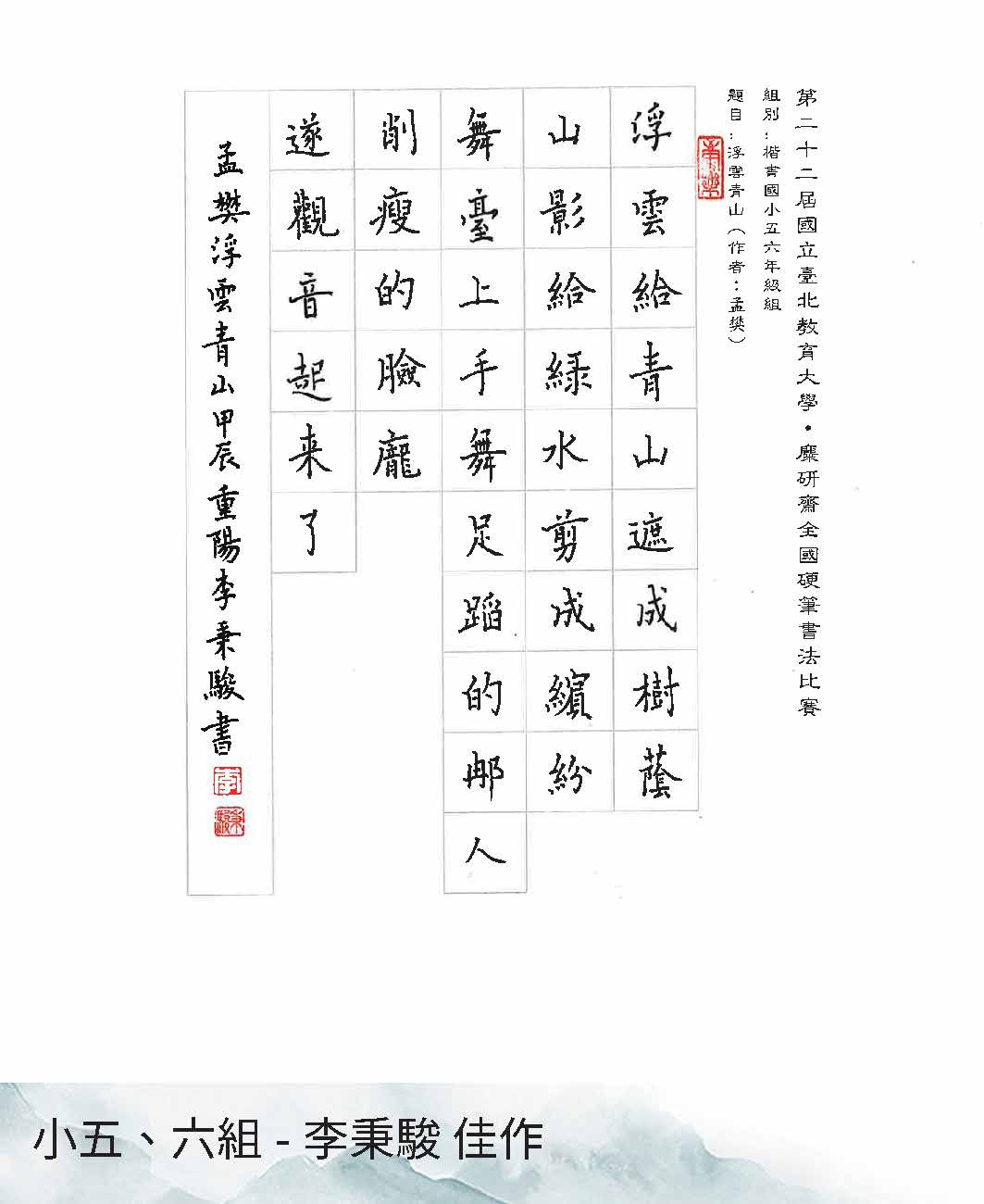國小五、六年級組楷書