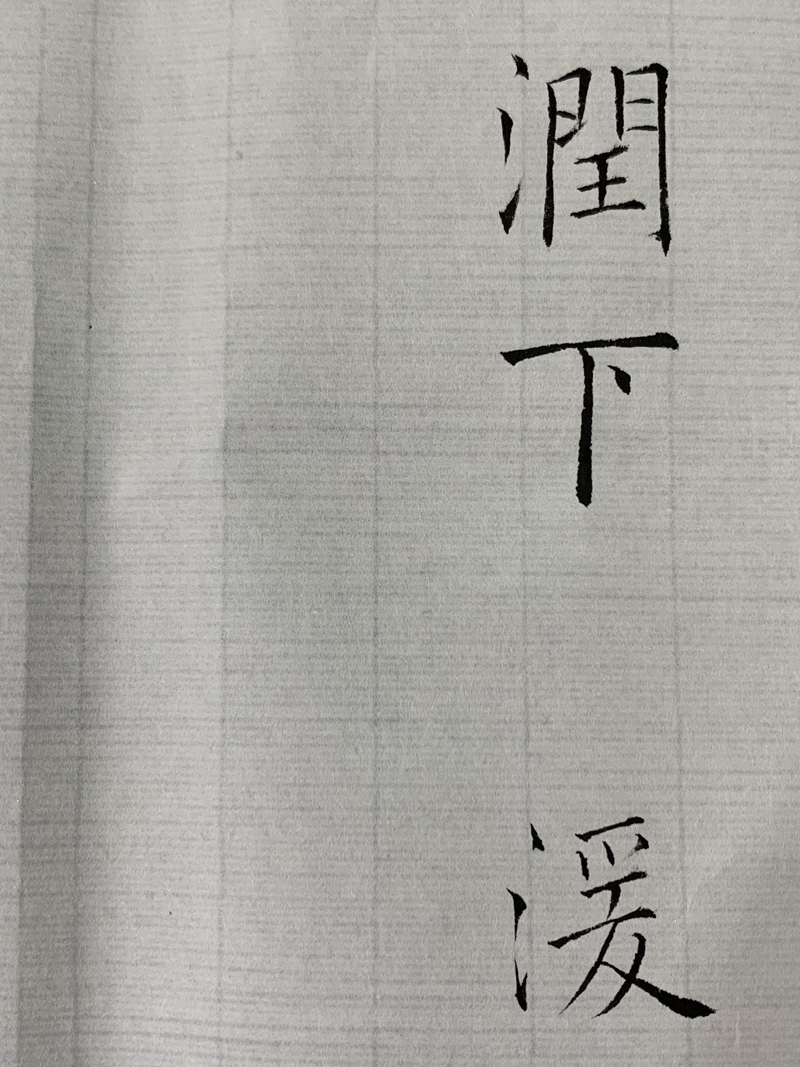指導教授:江育民。文:楊淑凌。【新課程】:趙孟頫-楷書-膽巴碑. 以前王北岳老師在麋研齋經常稱讚江育民老師上課很會說,確實是如此,趙-吳興人.元代名書畫家.開創元代新畫風.被稱為「元人冠冕」,(1254-1322)年間的楷書四大家之一,今天技法:快、準。剛好教室有留下2張江育民老師的手稿,大家可窺知一二喔!!麋研齋半紙或8開宣紙寫3排字.字體跟書帖上一樣大.不要寫太大.認真寫好楷書.漸漸會體會到古法書體的美好。老師今天用麋研齋的教育部用筆及大如意來示範,,大家可採購一下工具.留下優美的楷書作品。