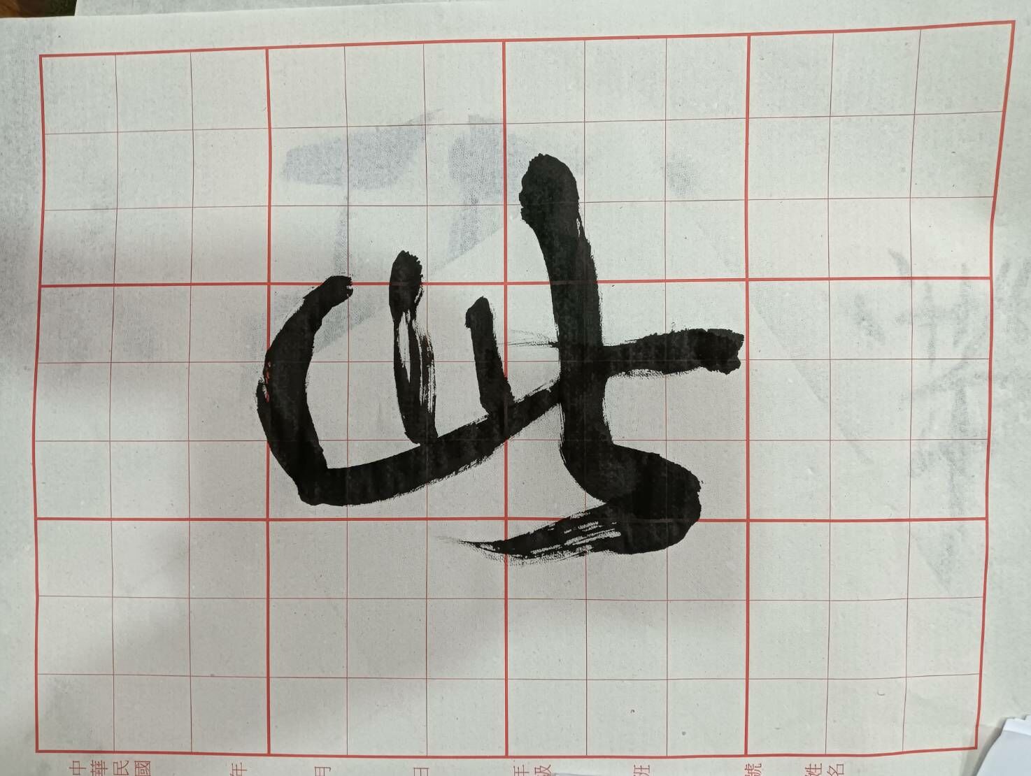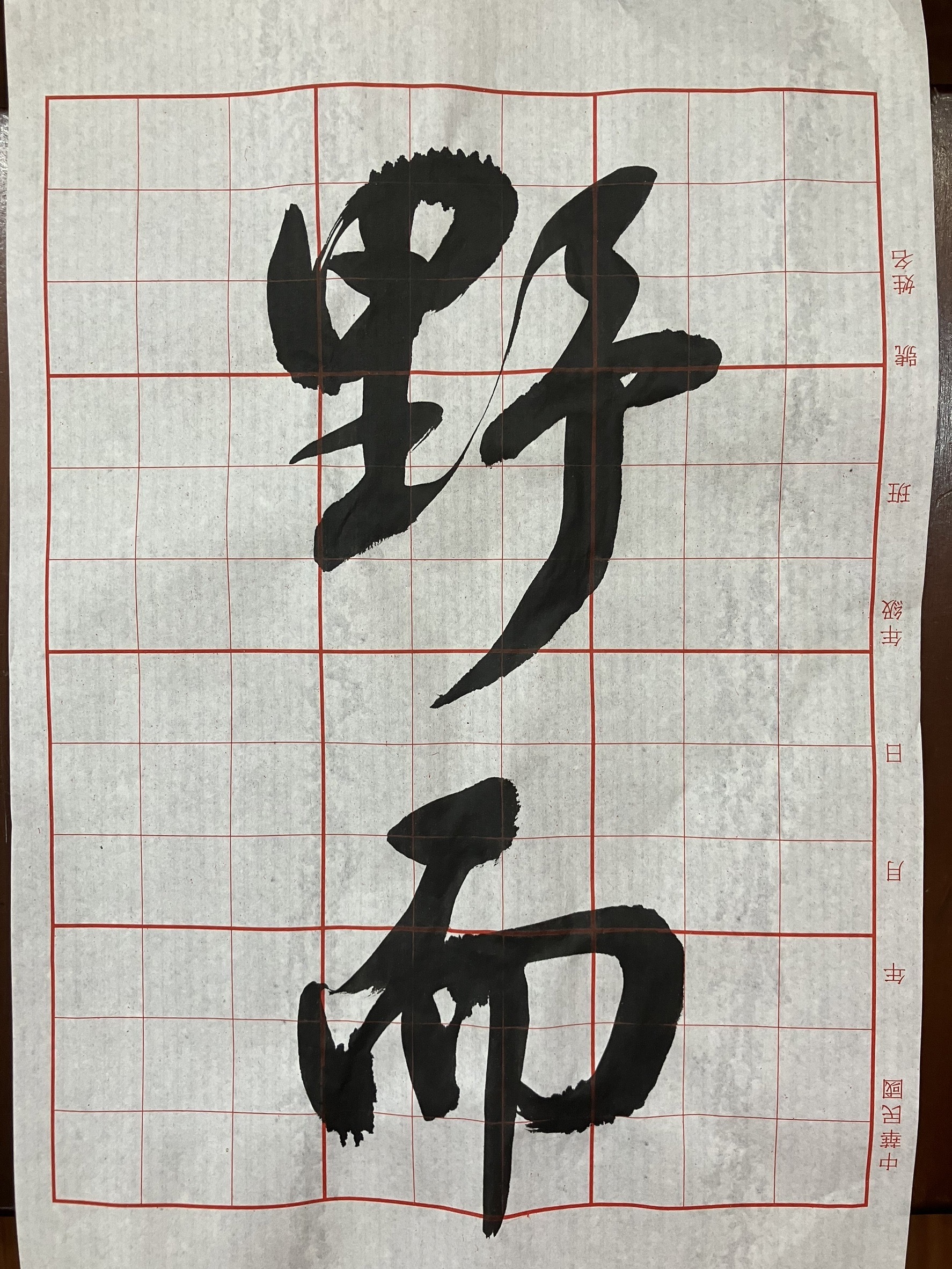 指導教授:江育民,作業:江育民老師的影印書帖,寫後半部的「王寵」,技法:運用執筆的骨氣,有理成章,一筆完成,有信心就可寫的很好喔!今天江老師的示範書法字用麋研齋中蘭竹及教育部用筆(心經狼毫)、中如意、麋研齋書畫宣等工具。