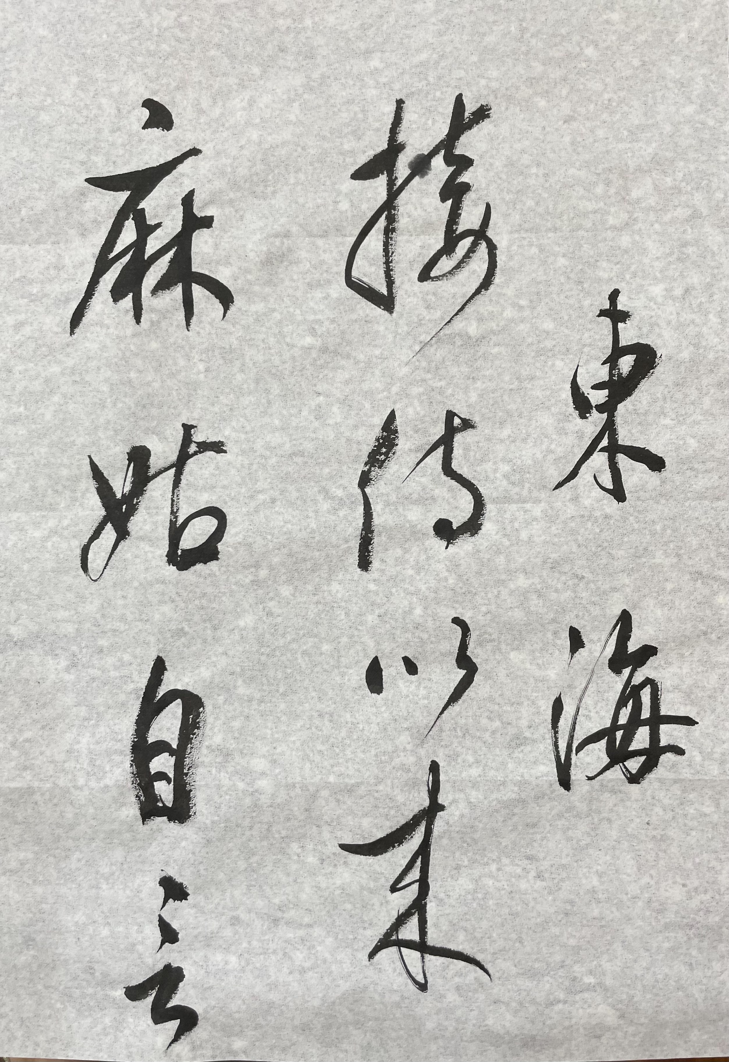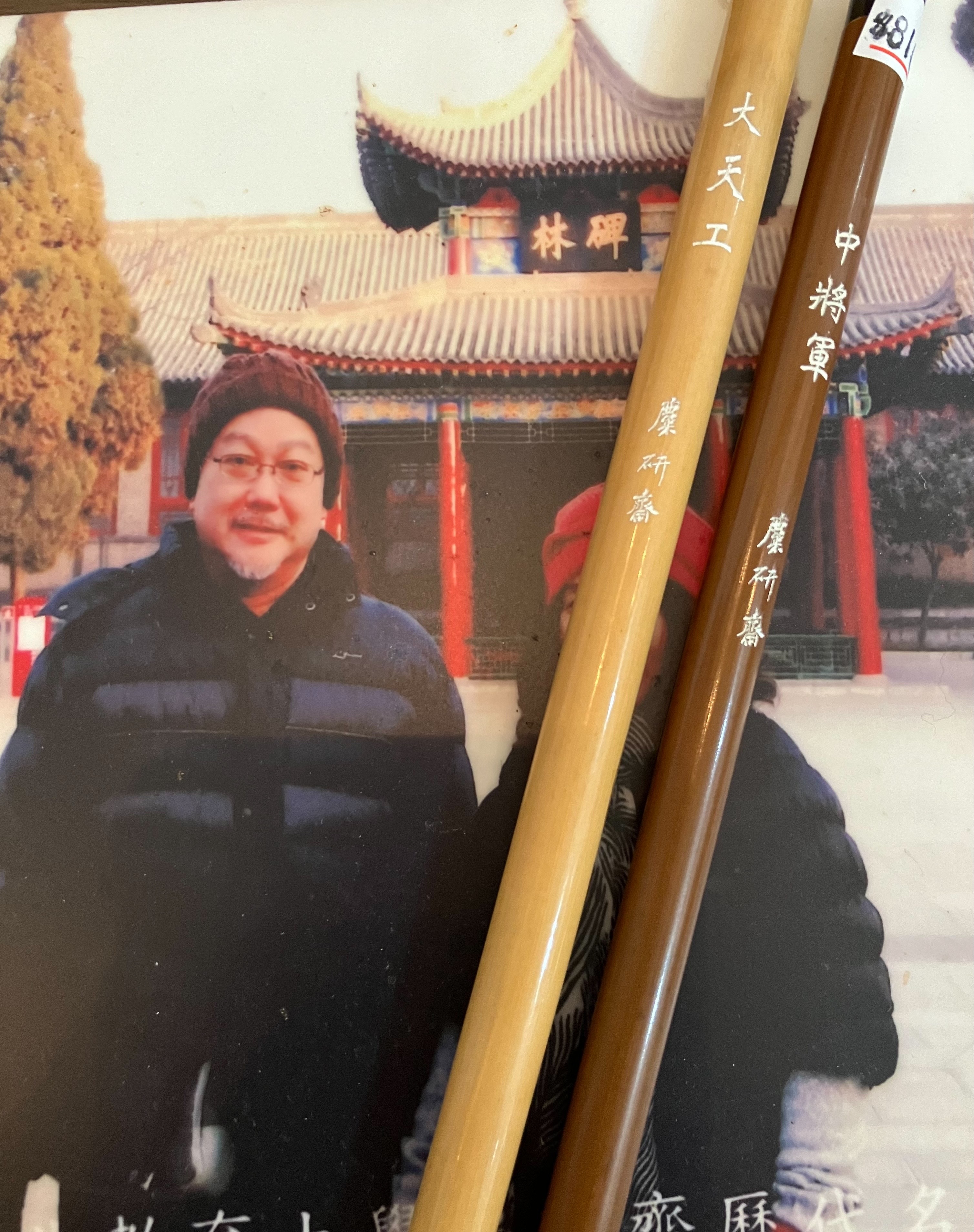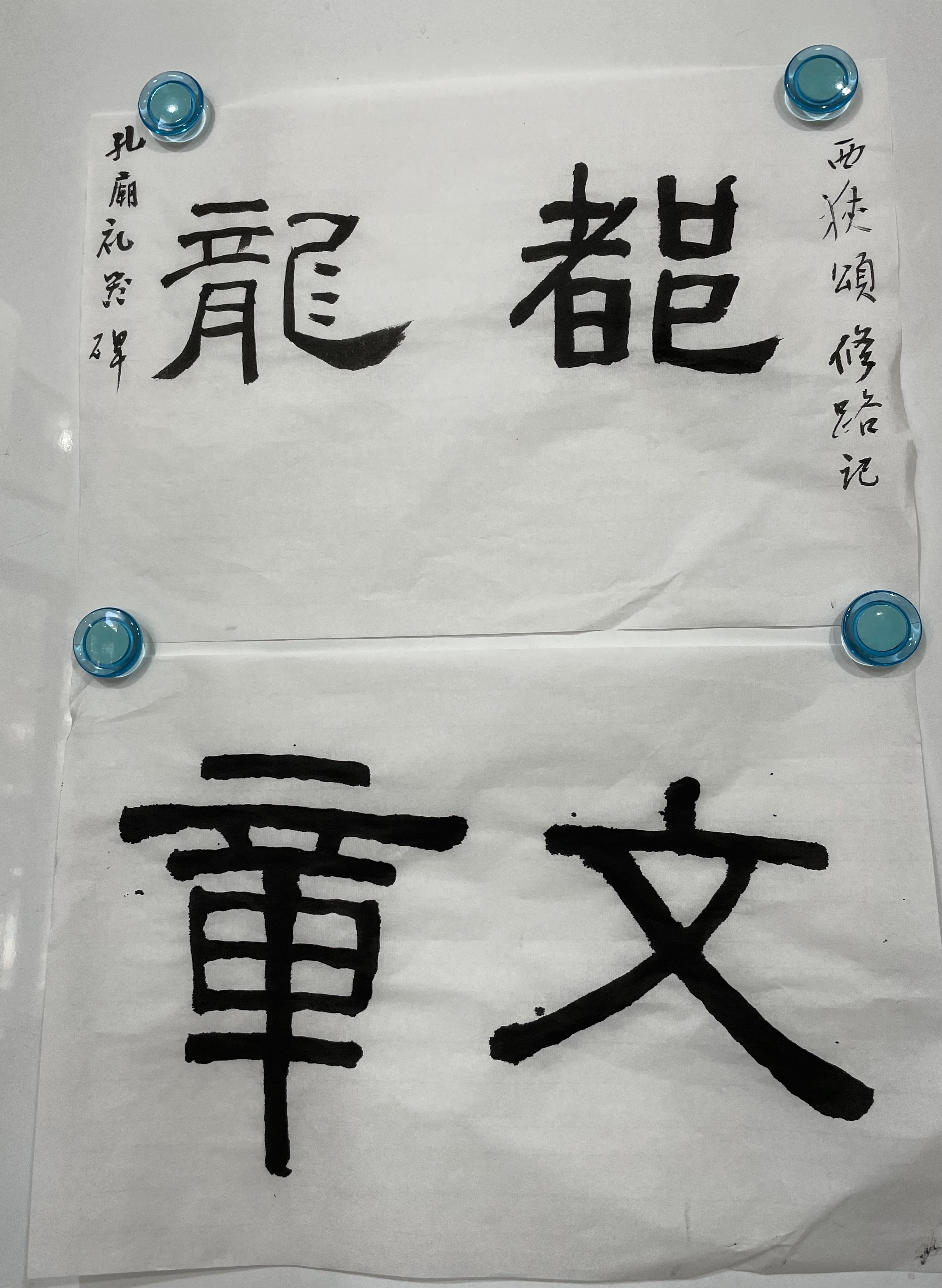 指導教授:江育民。文:楊淑凌。好開心大家心情愉快在今年的最後一週完成書法課,課堂上聽到師生歡笑不斷,這是麋研齋週六書法課的最大特色。今天江育老師指導上次舊帖上的鄭孝婿隸書字,第39頁(松寥閣記3-1。用半紙或毛邊紙寫,一張紙寫2個字,在下面的範字說得很清楚,除了練大眾帖:曹全碑、乙瑛碑外江老師提到(開通褒斜道刻石)也是今日學隸書的極佳示範。當然在三希堂御科法帖、石門頌、石門銘、山東孔廟石碑收藏、古棧道..漢中刻石博物館等其刻石的素樸都是學習隸書的重要石刻。當然本班的學員20多年前都跟隨江老師的腳步一一拜訪了他口中重要又遠方的石碑,沒去過的同學可參考麋研齋出版的歷代石刻之旅光碟,實況錄影精彩萬分。對了!老師今天使用:(中如意、小一霜重毛筆及半紙等。工具官網可下單: