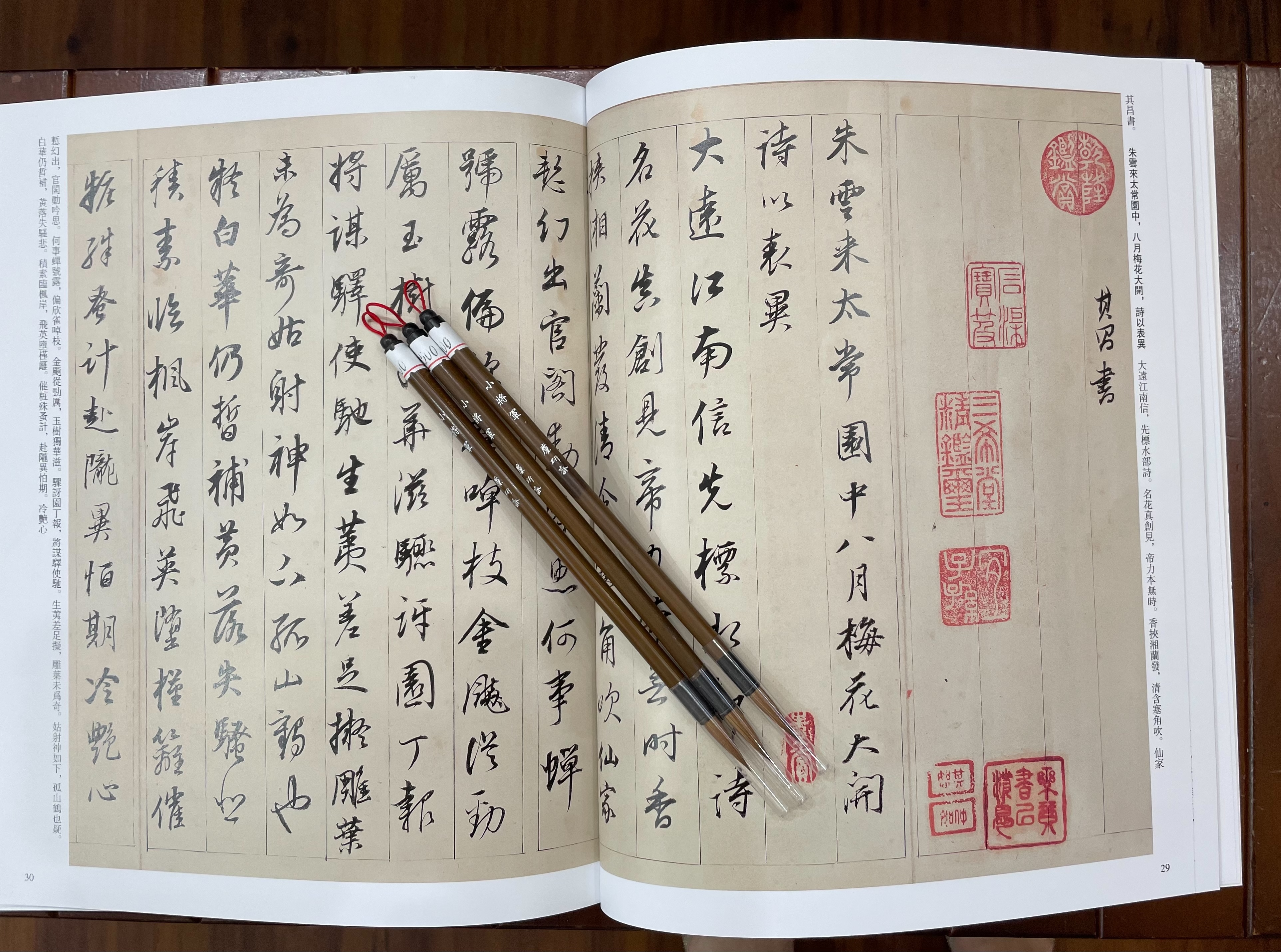 中如意毛筆、慈湖墨條、麋研齋書畫宣